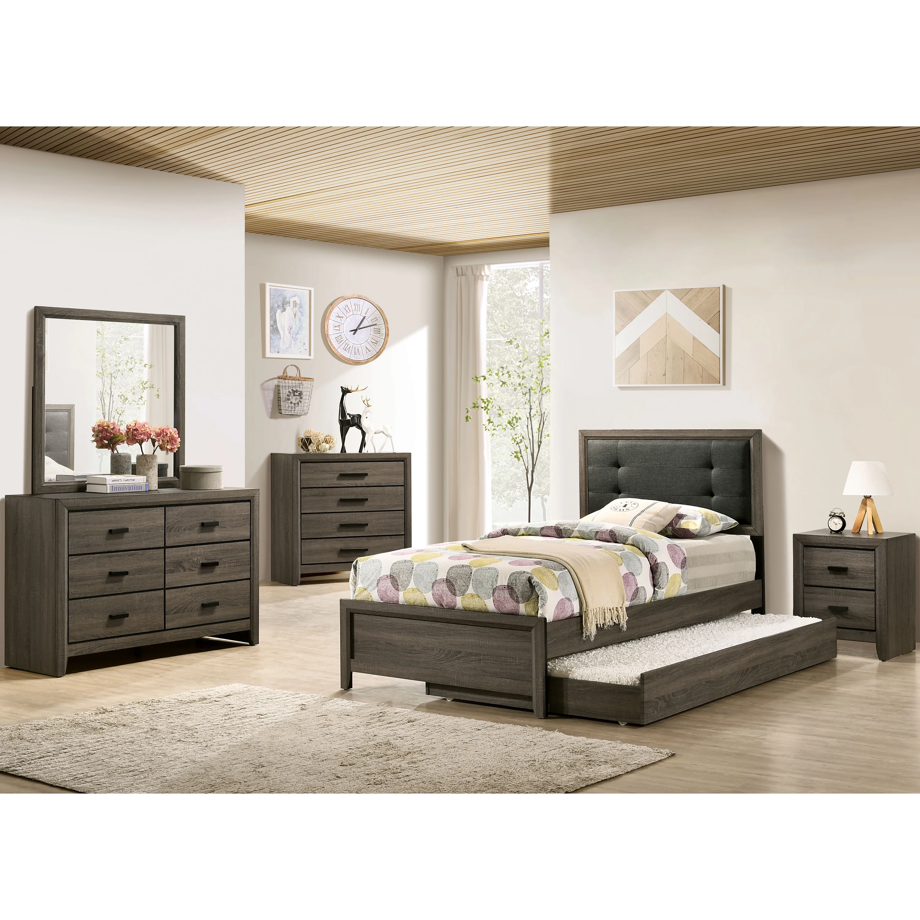 Contemporary Simple Style 1pc Twin Size Panel Bed Bedroom Furniture Wooden Gray Finish