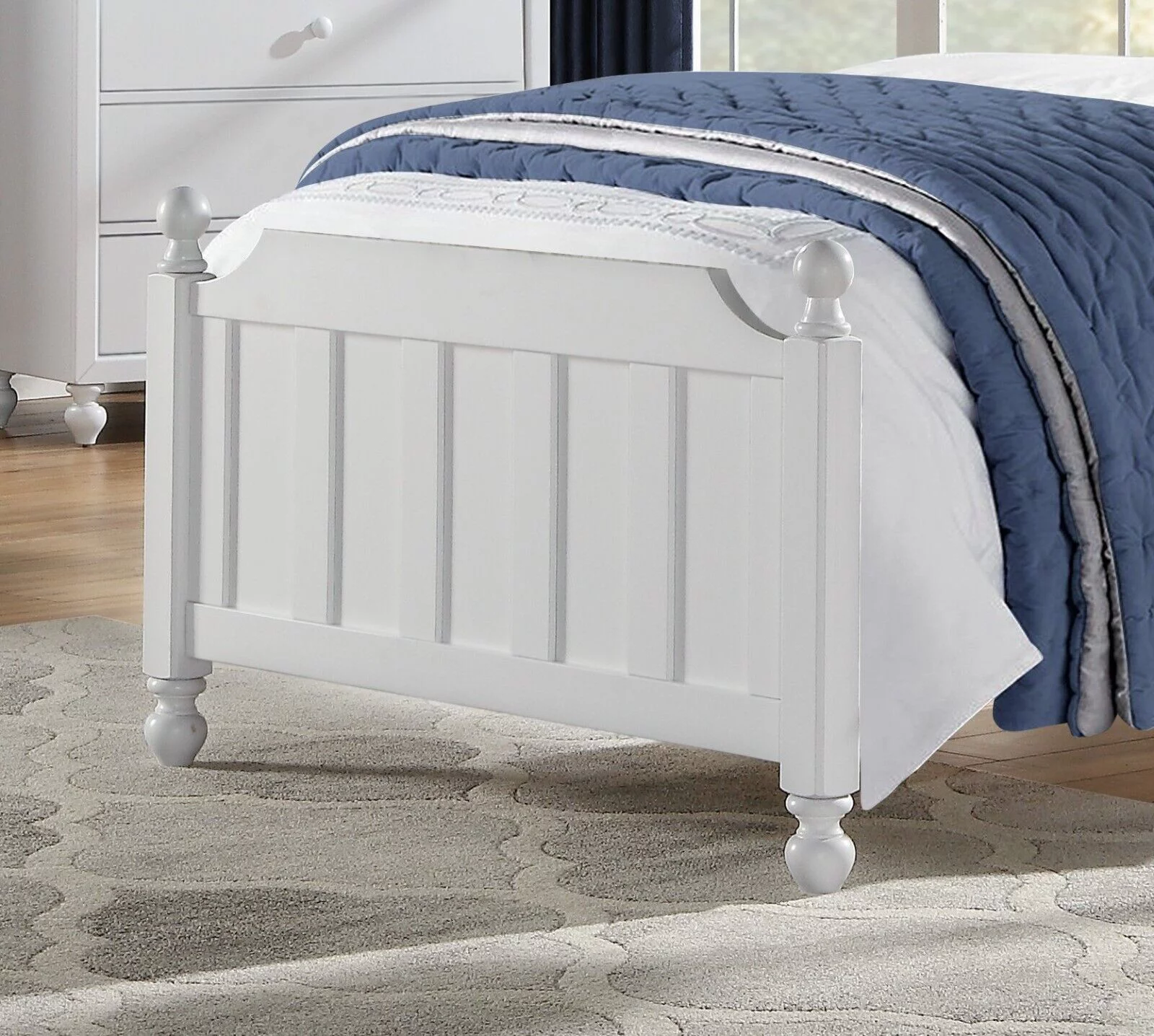 Fresh Modern Look Twin Size Bed 1pc White Finish Ball Finials Top Turned Feet Bedroom Furniture