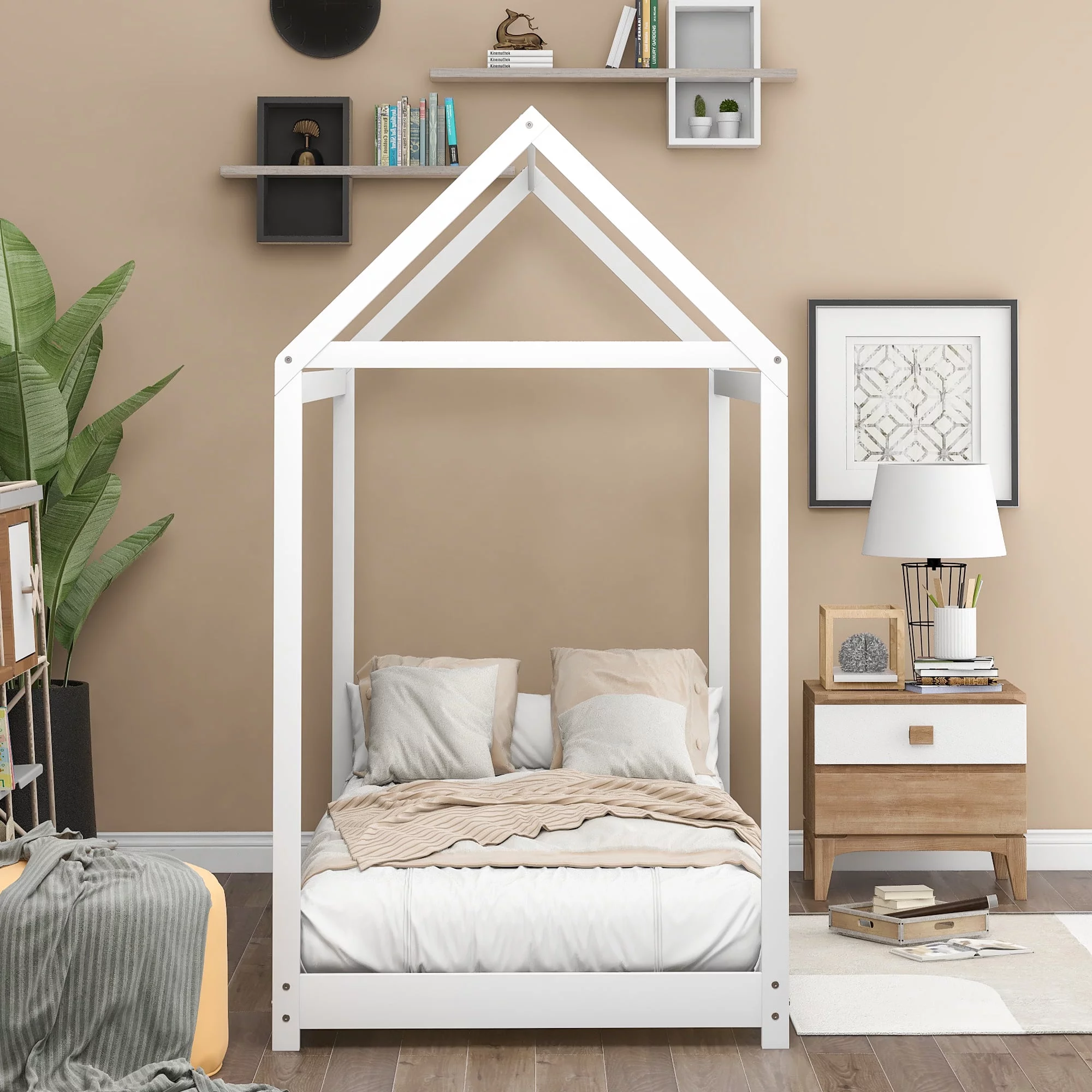 Bedroom Twin Size Furniture Children Toddler House Bed Frame Twin Size Tent Bed Floor Bed for Kids, Teens, Girls, Boys
