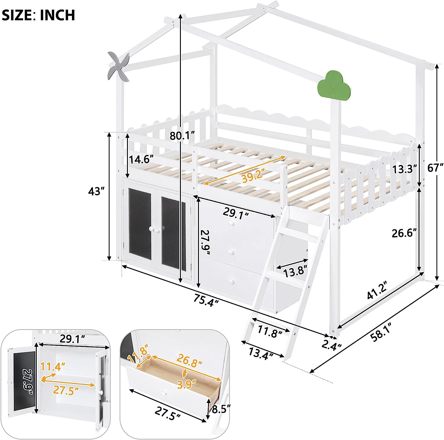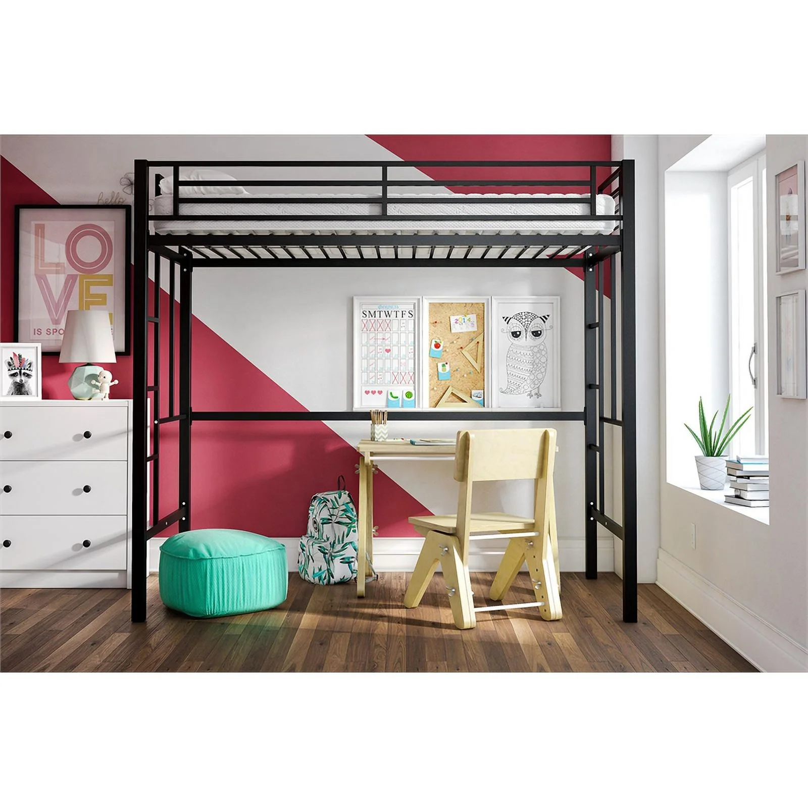 Home Roots 318774 Loft Bed - Laminated Veneer Lumber, White & Teal