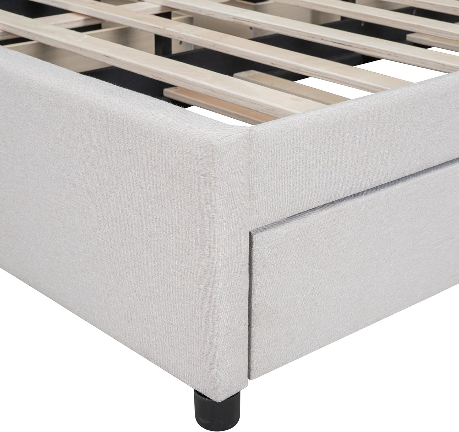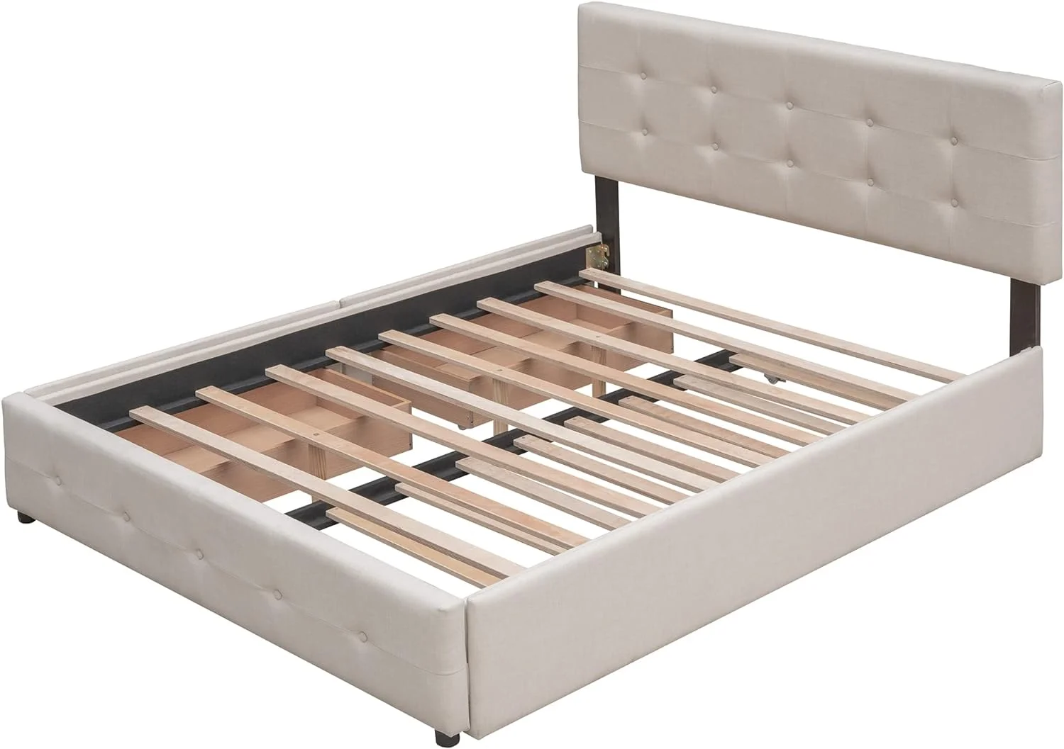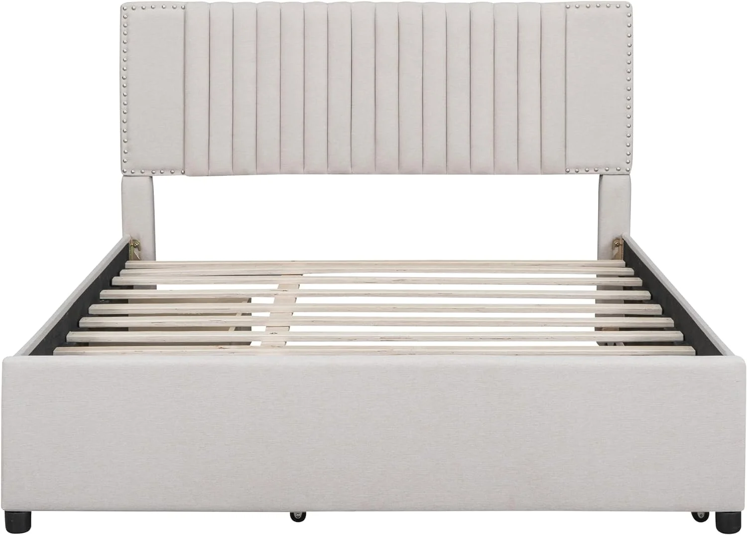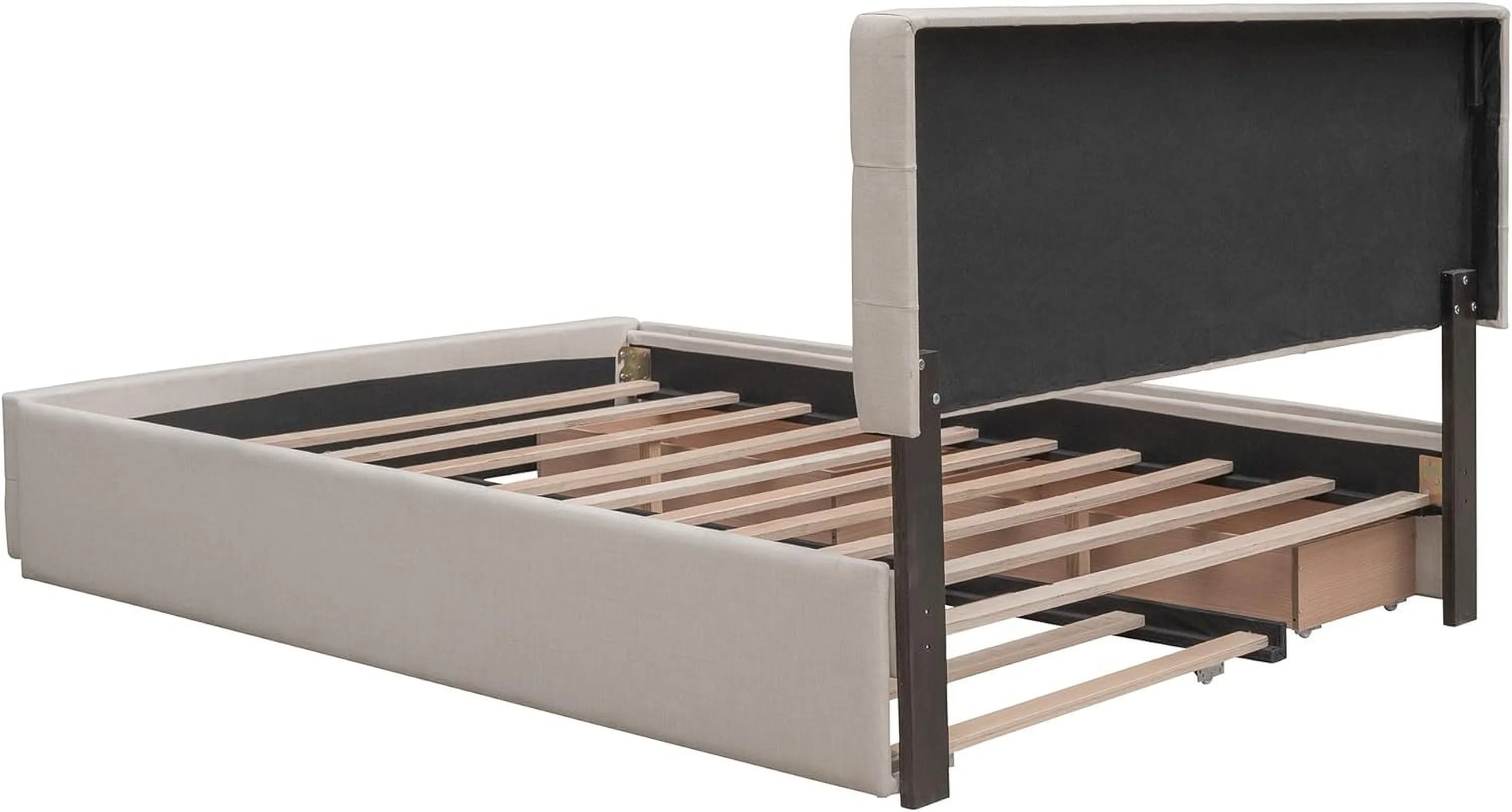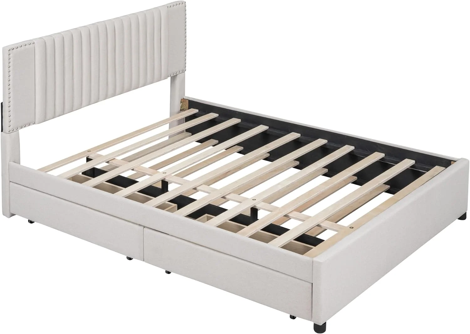 Quee Size Lie Upholsered Plaform Bed Wih 2 Drawers Ad XL rudle,Quee Size Plaform Bed Frame Wih Headboard,Beige