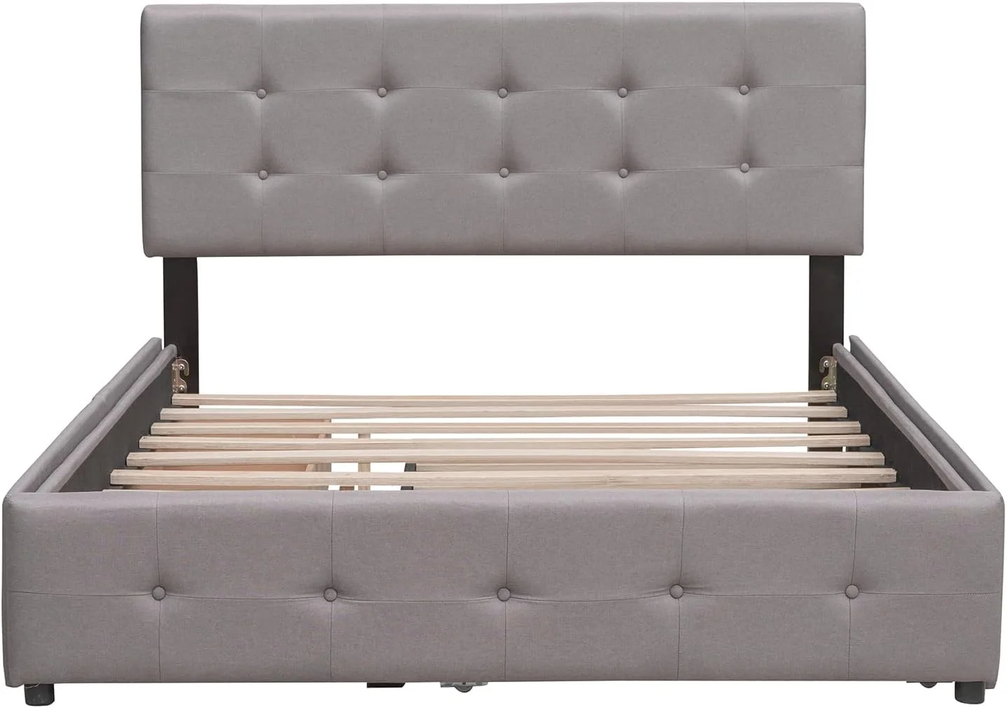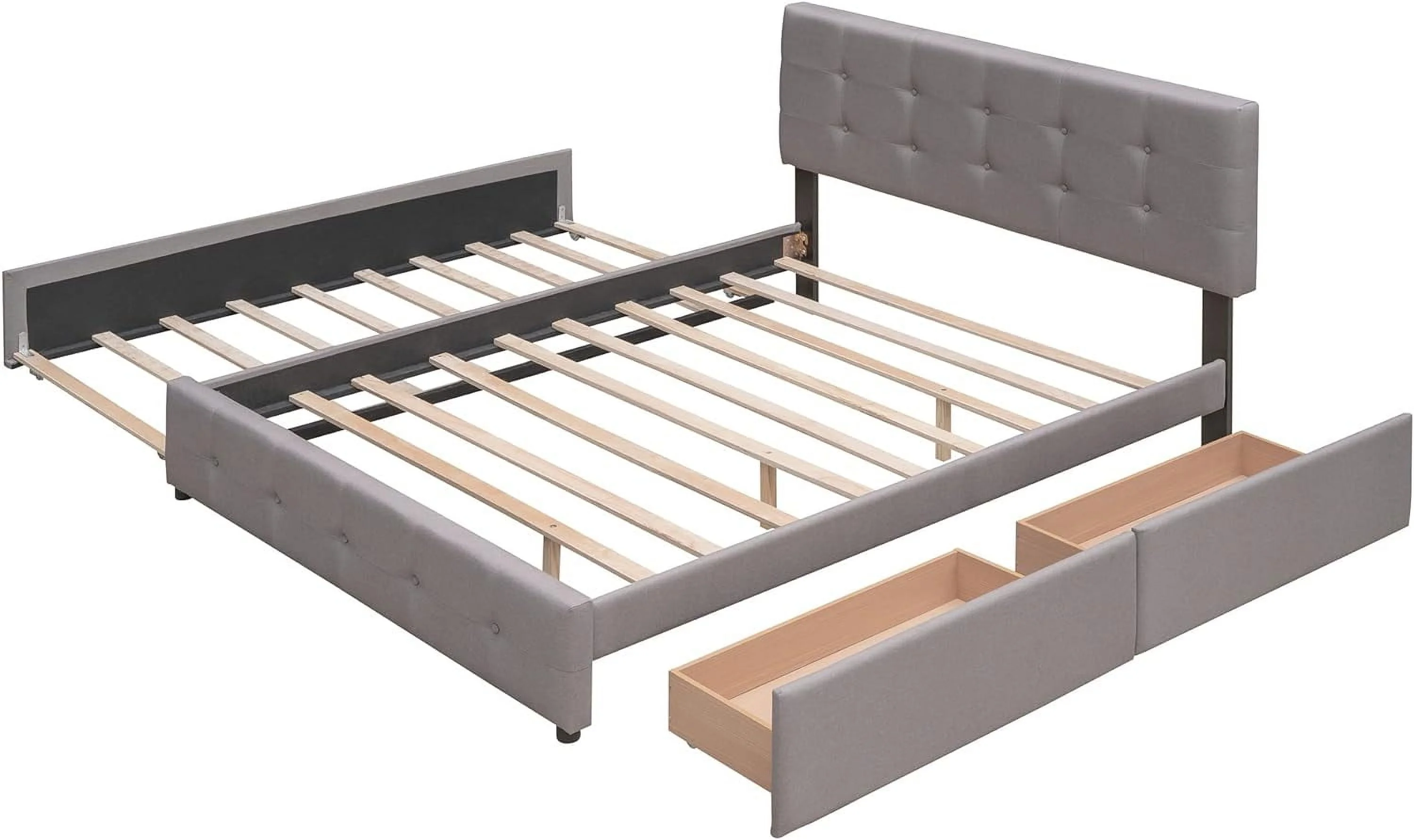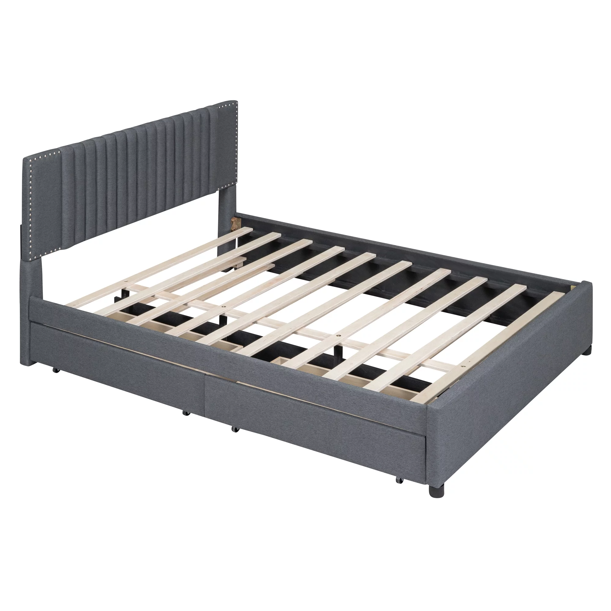 Quee Size Lie Upholsered Plaform Bed Wih 2 Drawers Ad XL rudle,Quee Size Plaform Bed Frame Wih Headboard,Gray