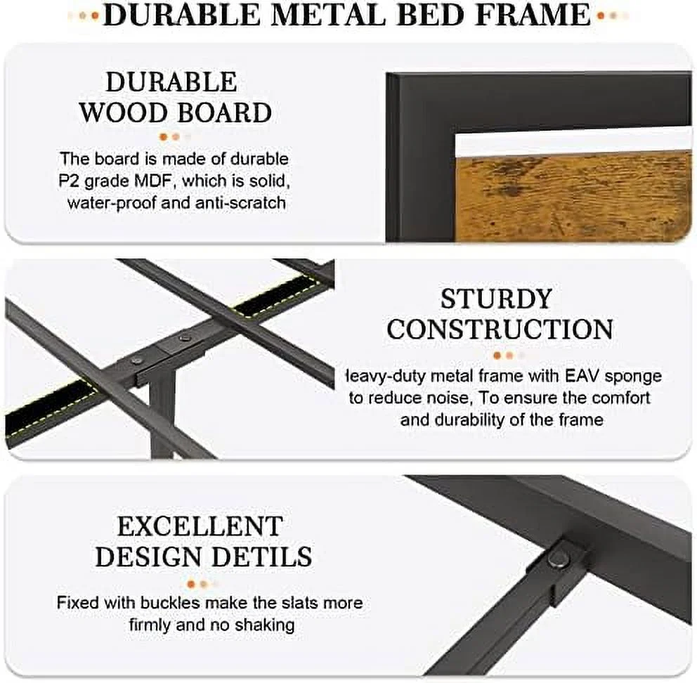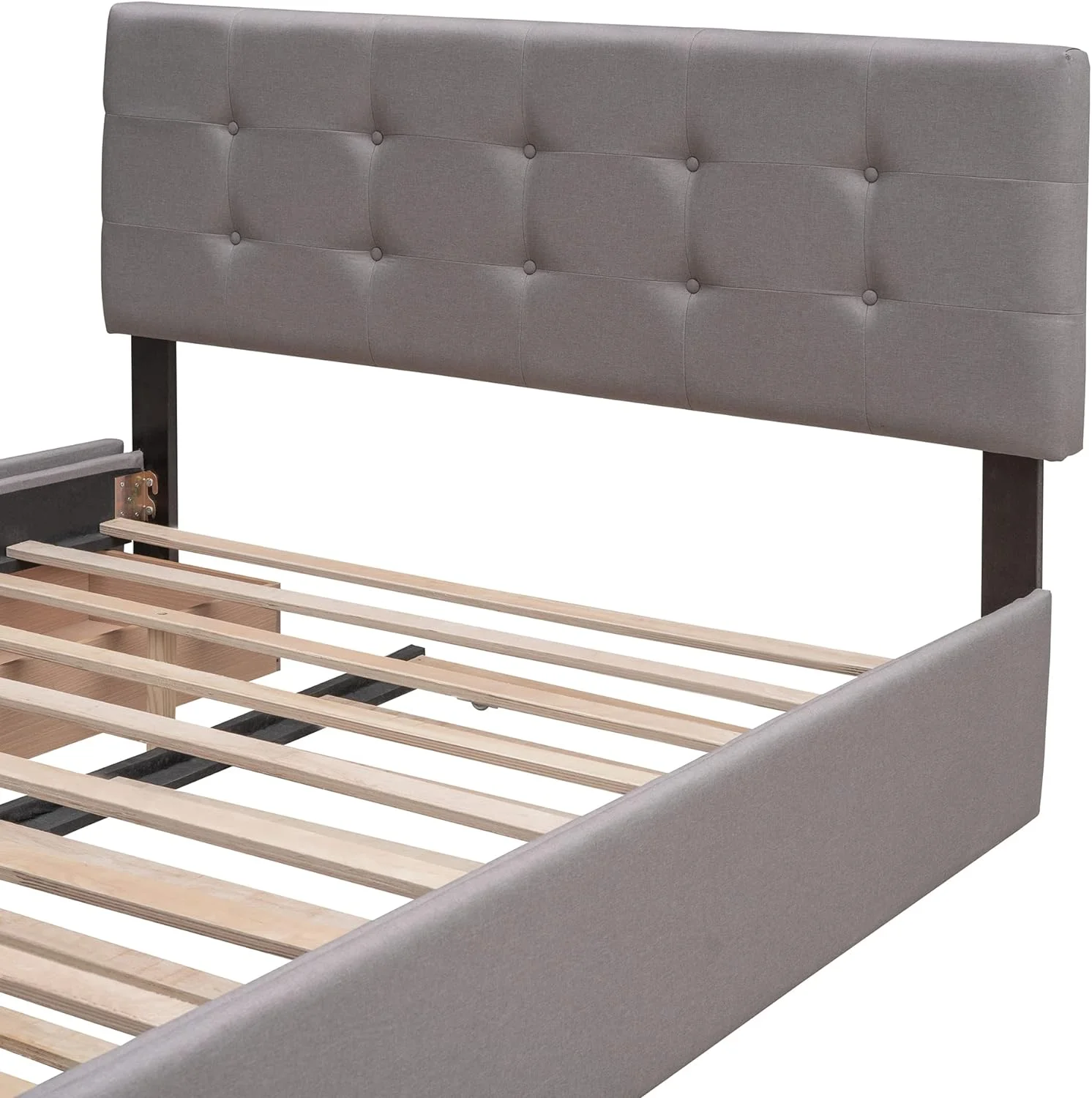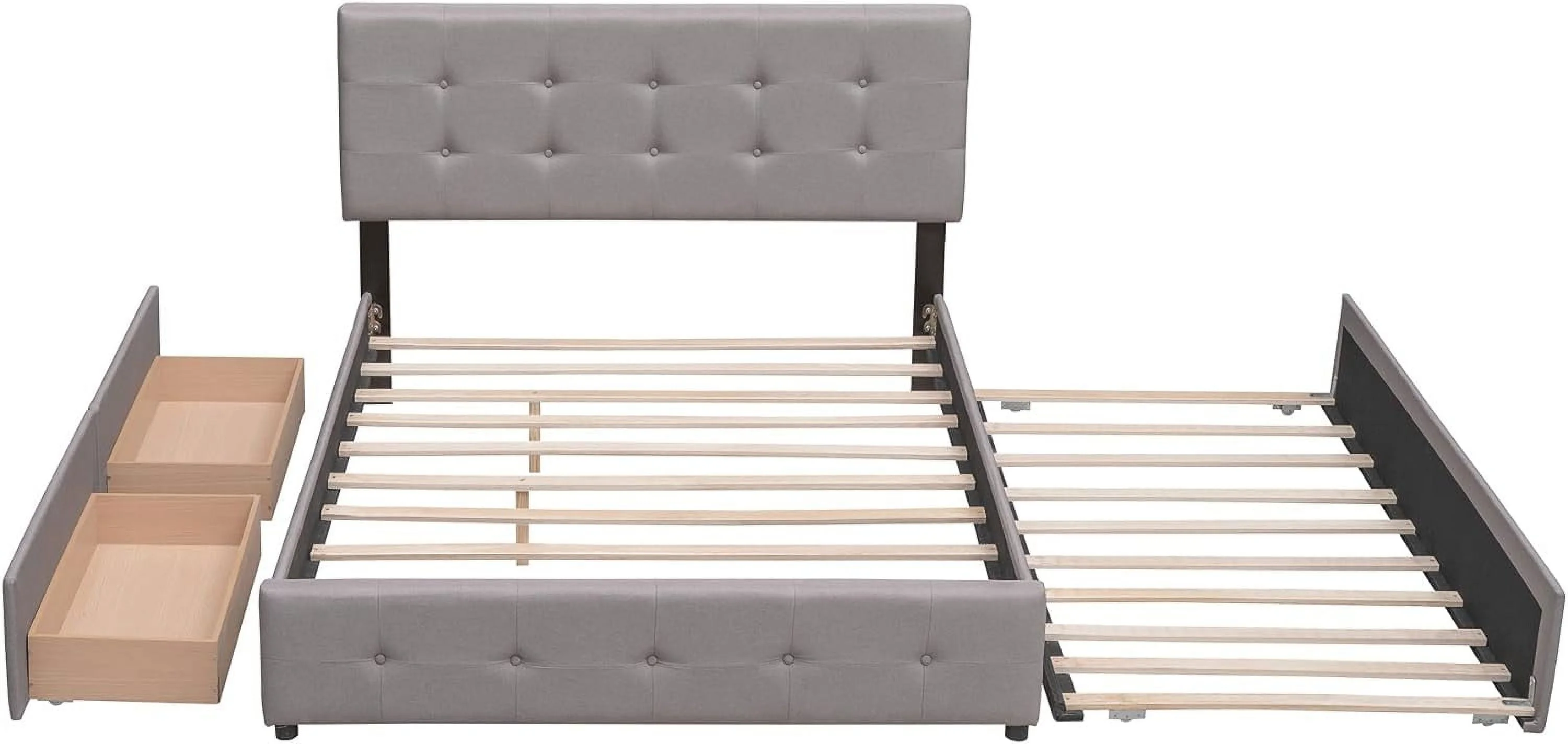 Quee Size Lie Upholsered Plaform Bed Wih 2 Drawers Ad XL rudle,Quee Size Plaform Bed Frame Wih Headboard,Gray