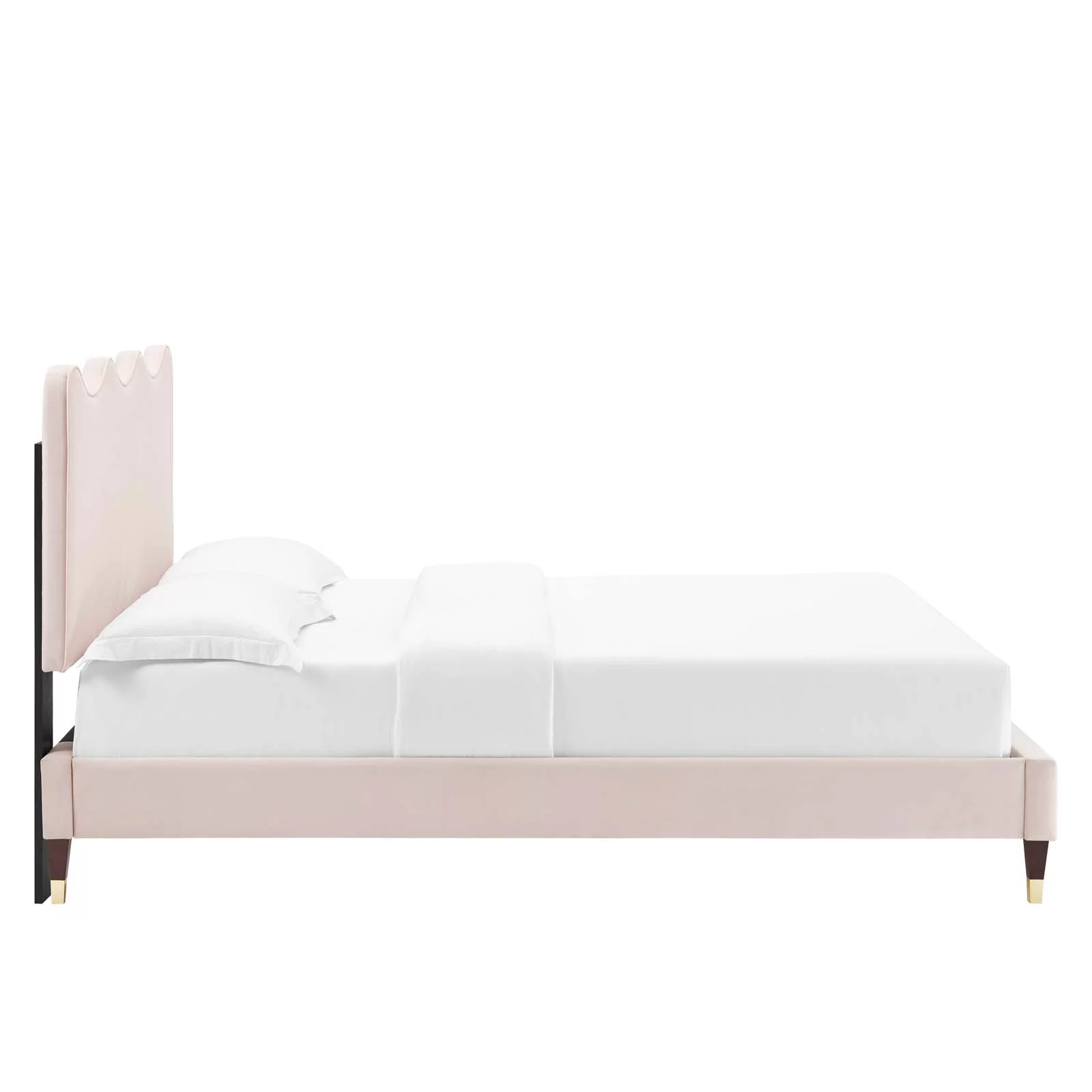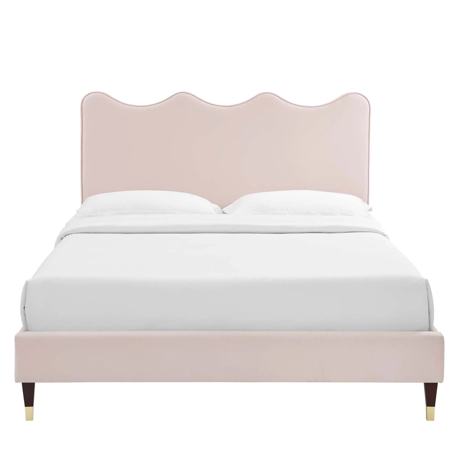 Churanty Full Size Upholstered Platform Bed with Cloud Shaped bed board, Dark Pink