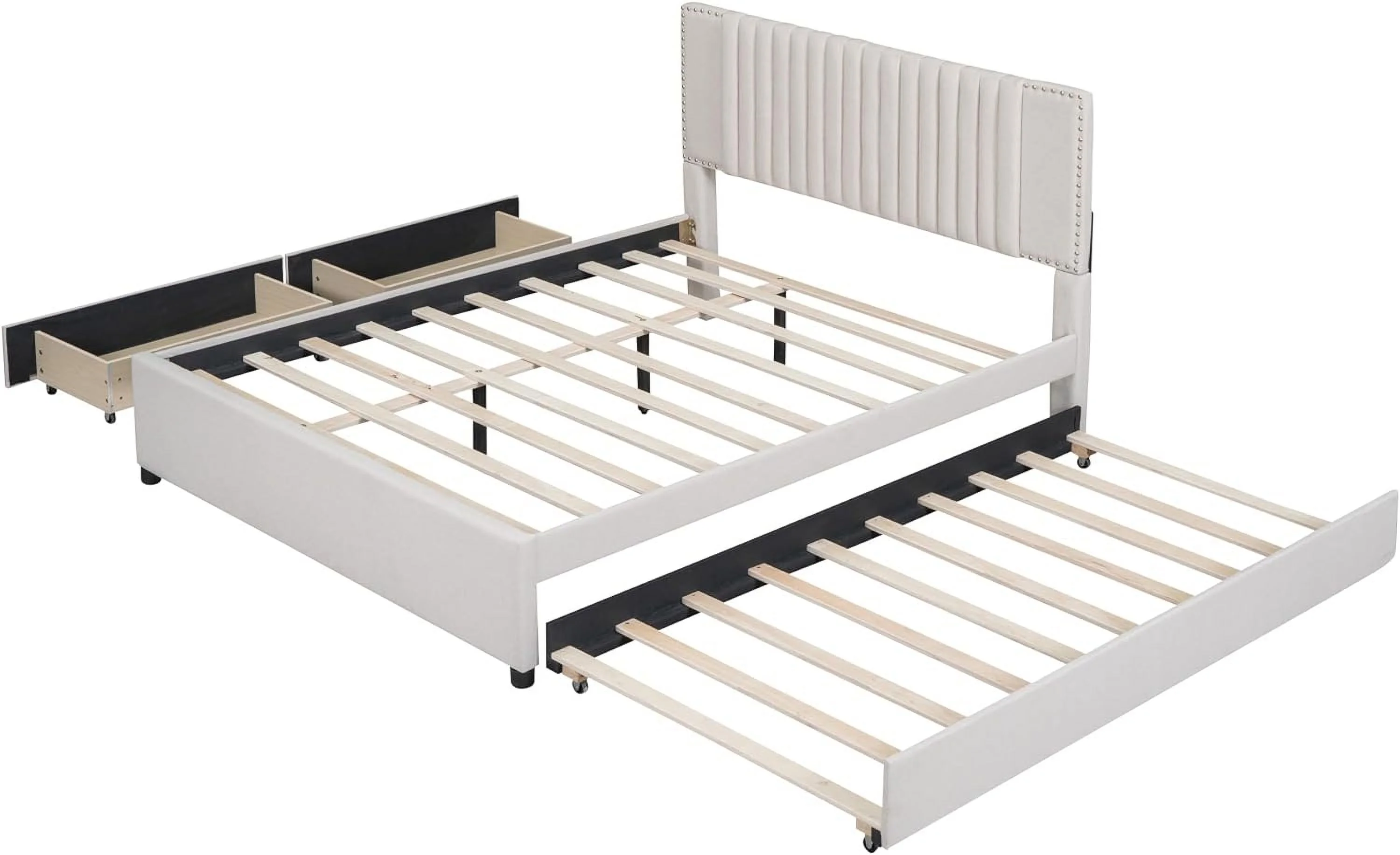 CoSoTower Queen Size Upholstered Platform Bed with 2 Drawers and 1 Twin XL Trundle, Classic Headboard Design, Beige