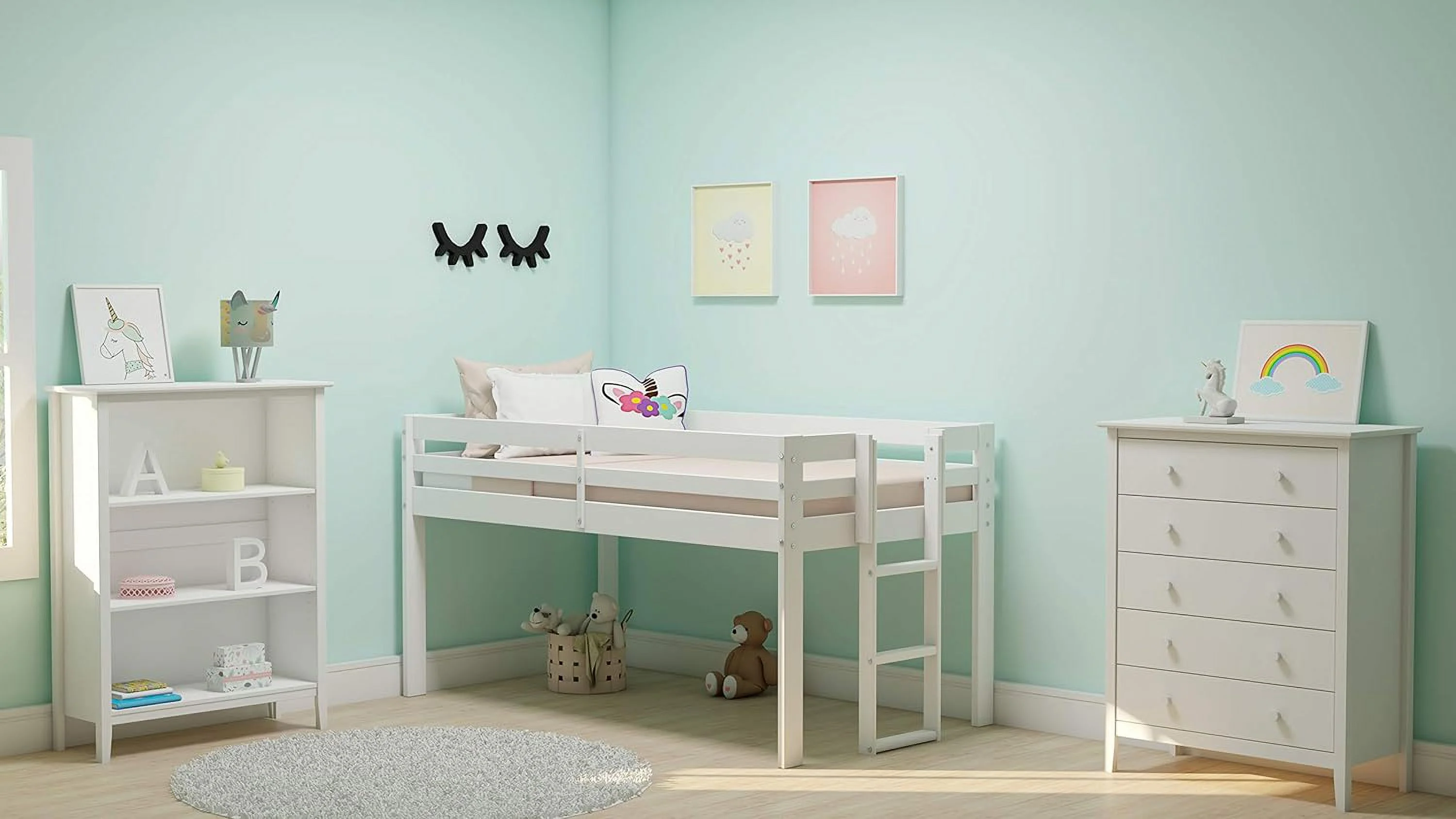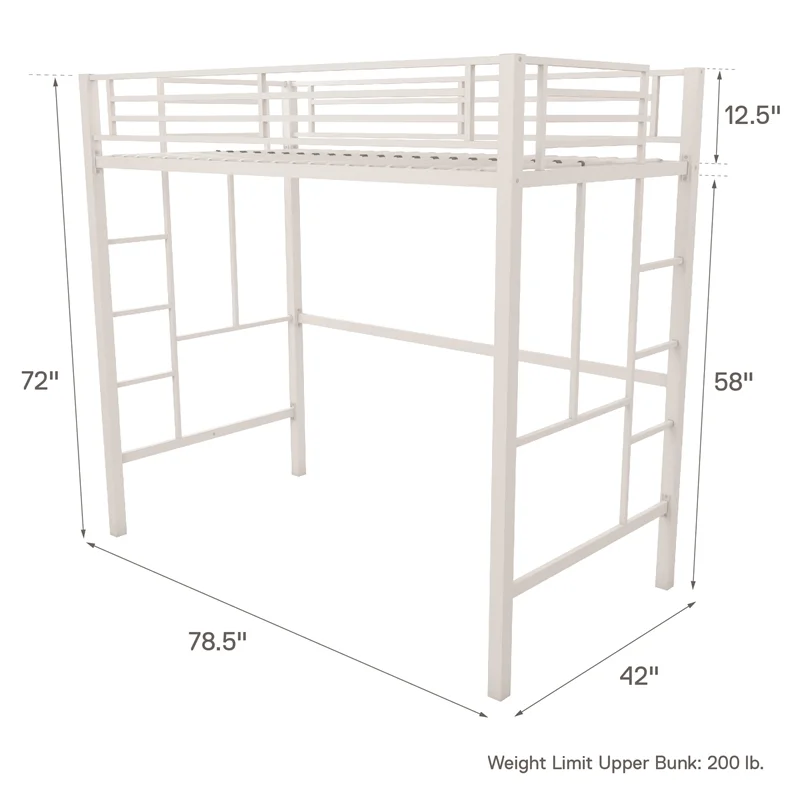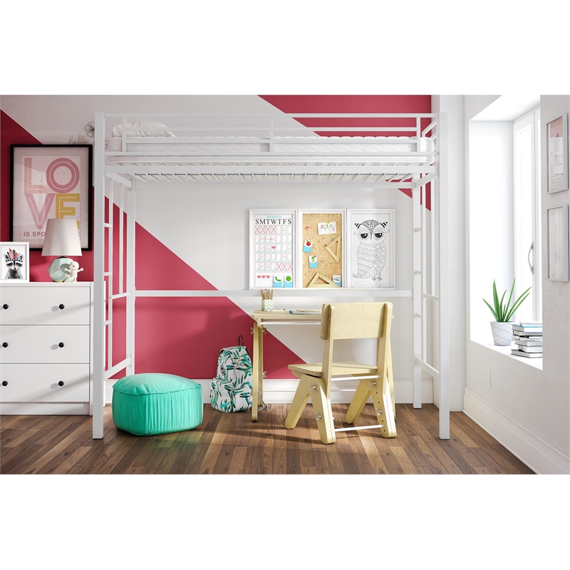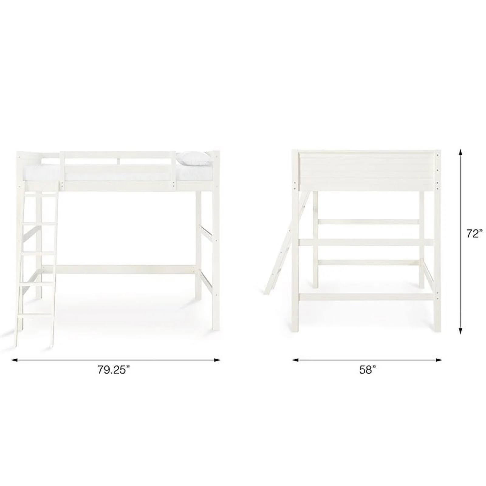 Pemberly Row Modern / Contemporary Wood Full Loft Bed in White Finish