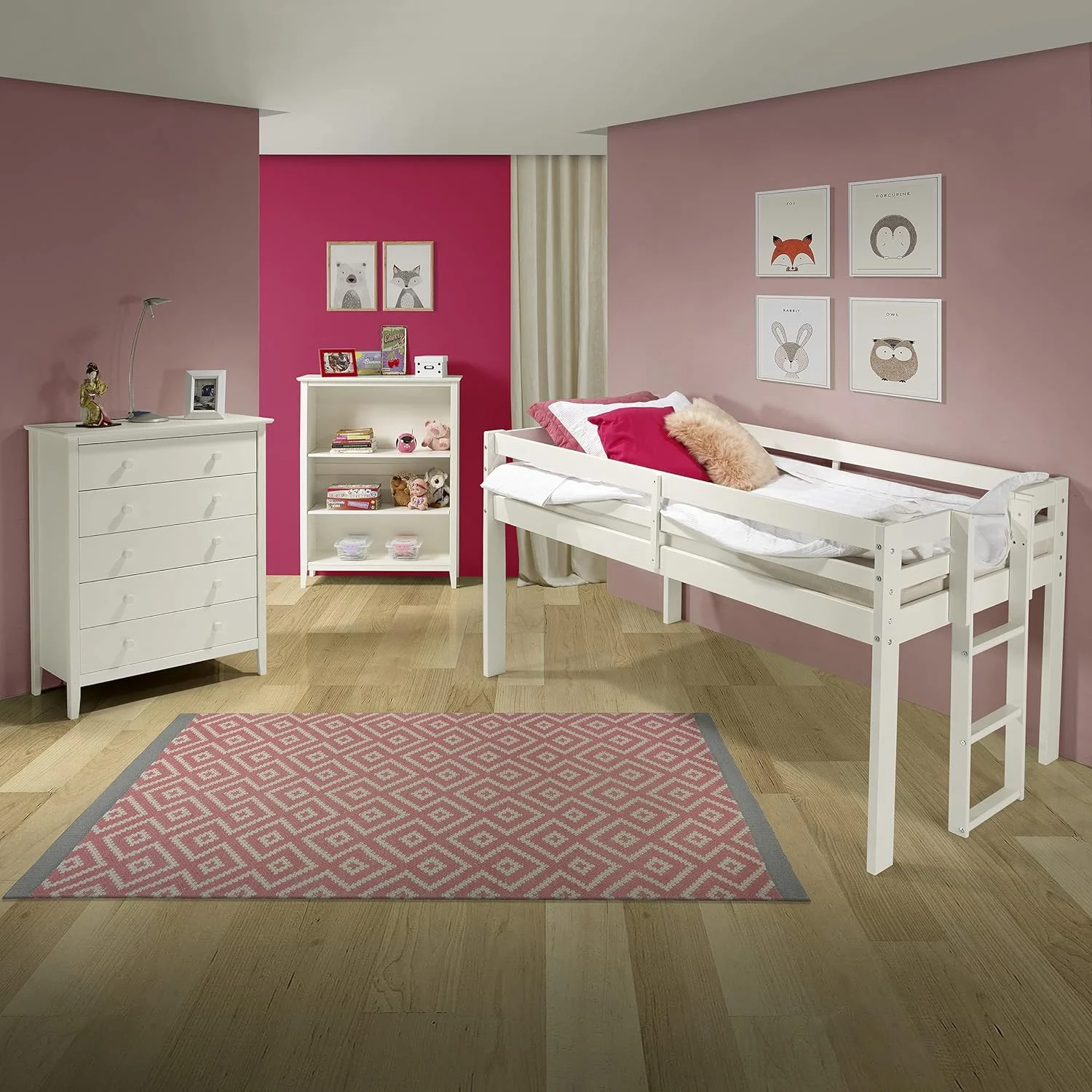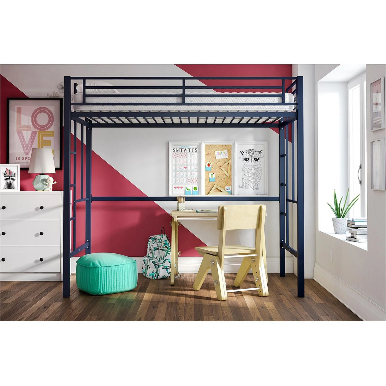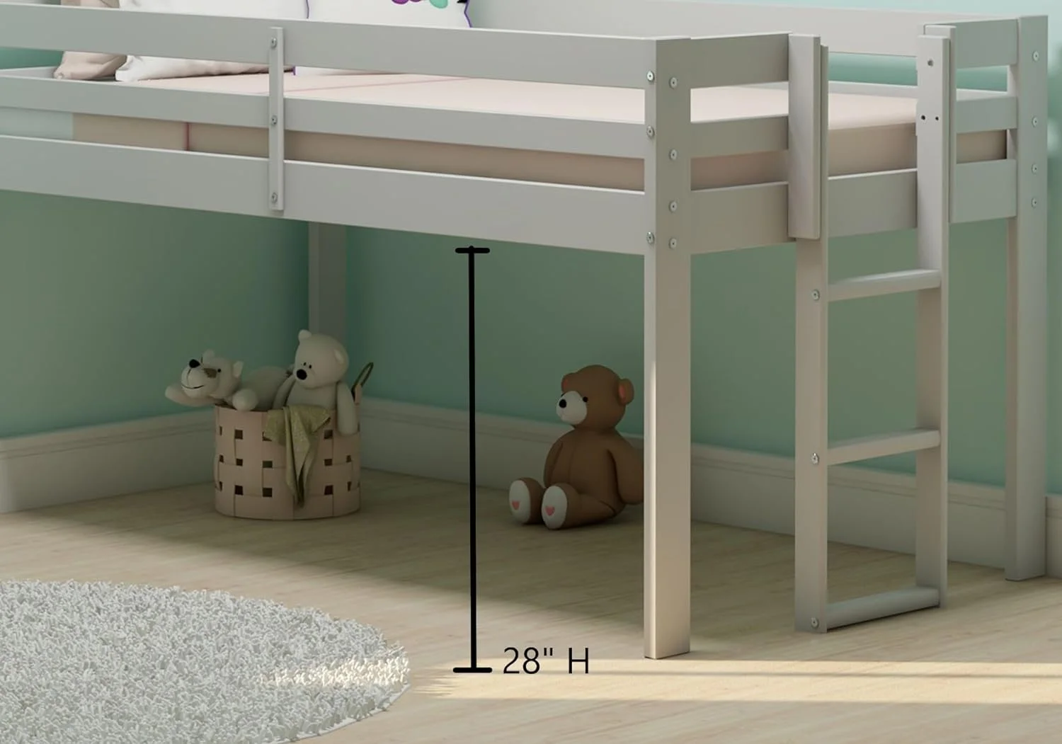 Pemberly Row Modern / Contemporary Wood Full Loft Bed in White Finish