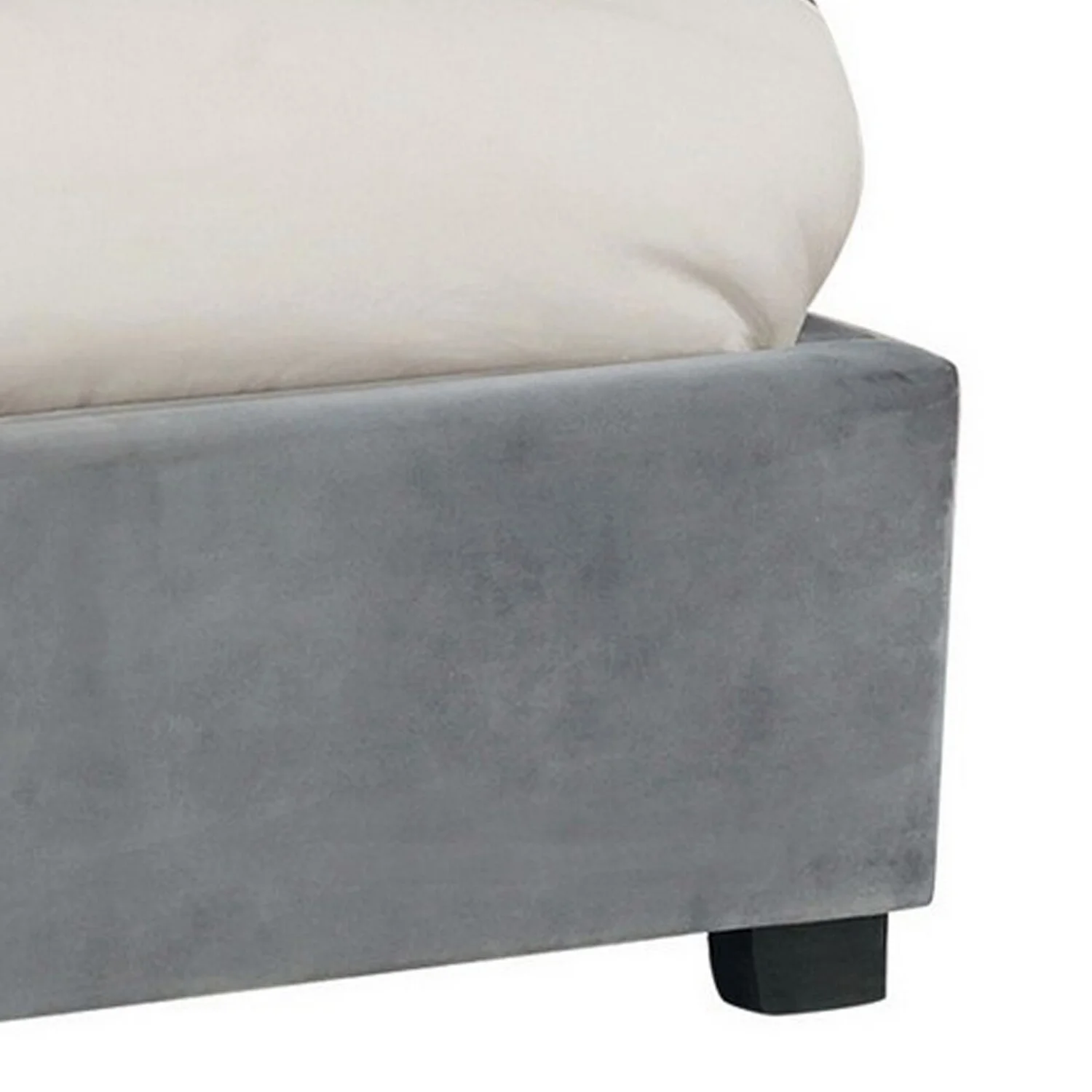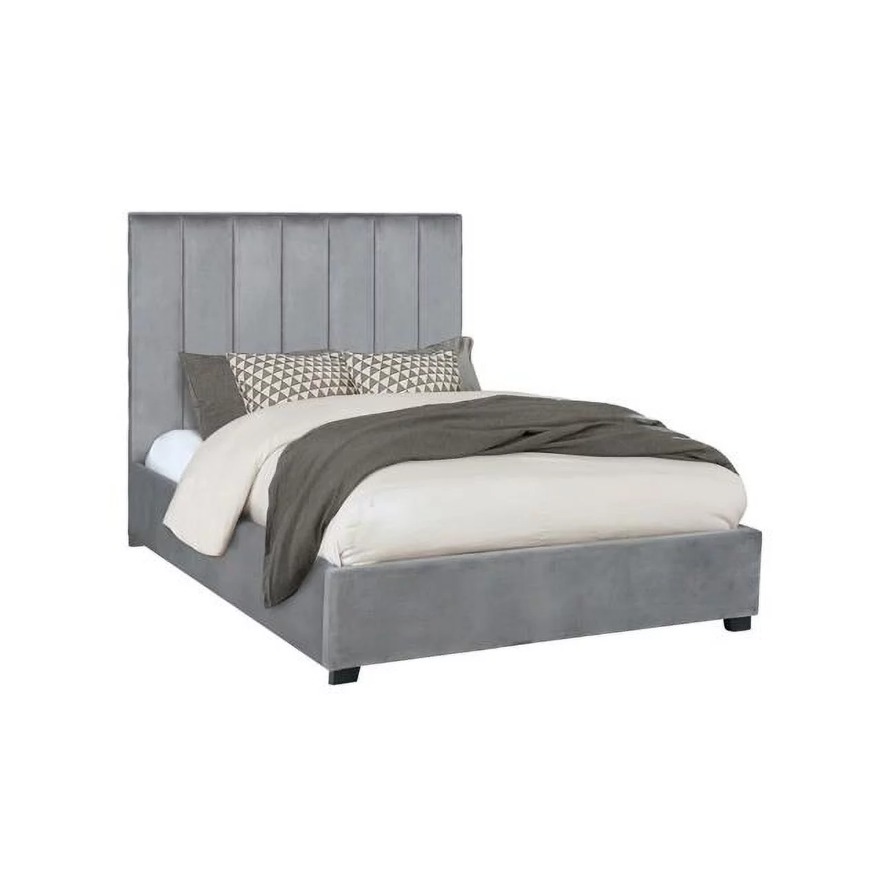 Benjara Velvet Upholstery Vertical Channeled Headboard Esa Queen Size Panel Bed, Gray & Black
