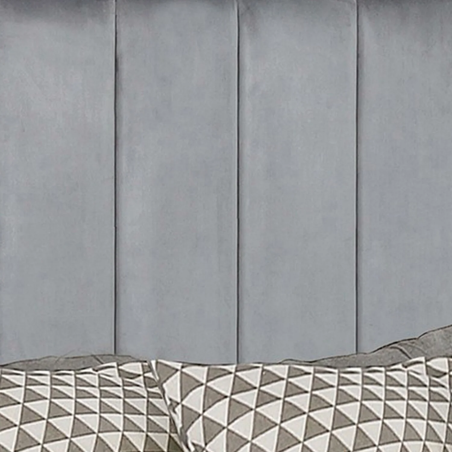 Channeled Metallic Gray Upholstery Glitter Headboard Dini Queen Size Panel Bed