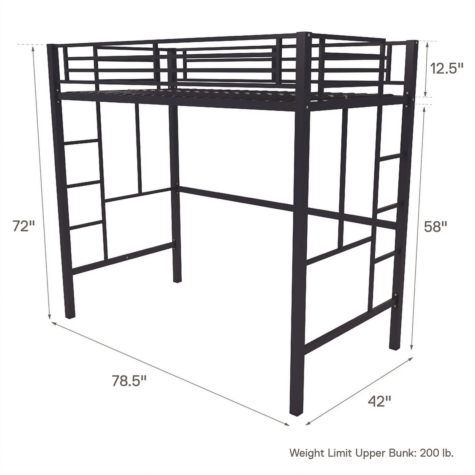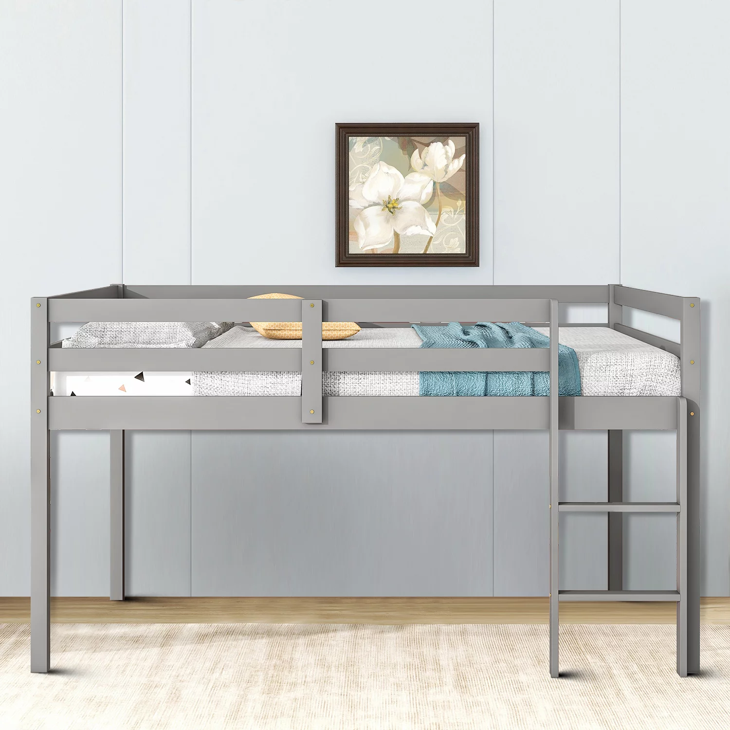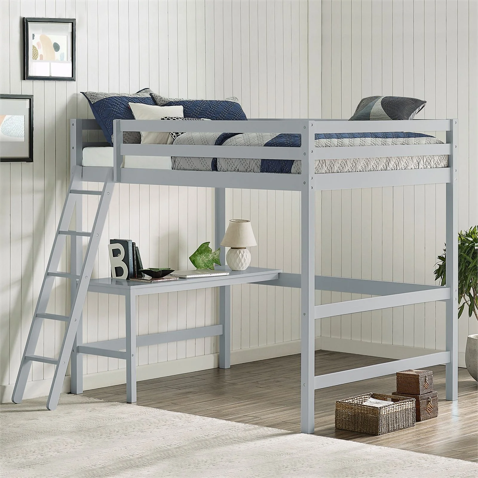 Rosebery Kids Modern / Contemporary Caspian Wood Full Loft in Gray Finish