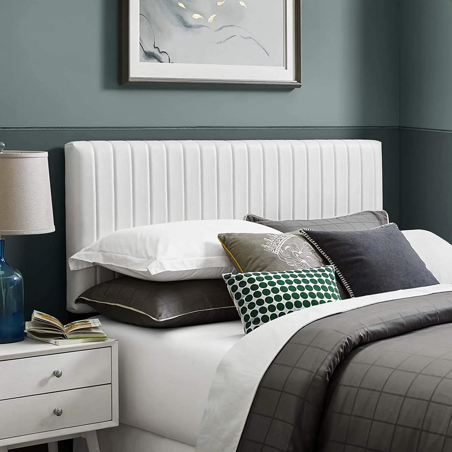 RUNFAYBIU Keira Channel Tufted Faux Leather Upholstered Full / Queen Headboard in White