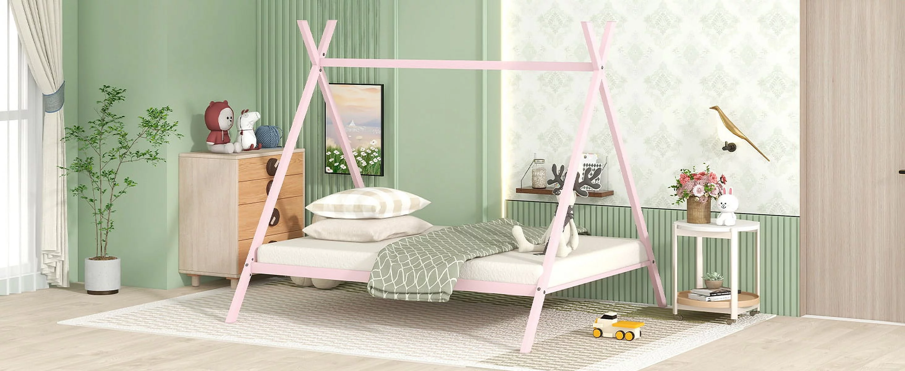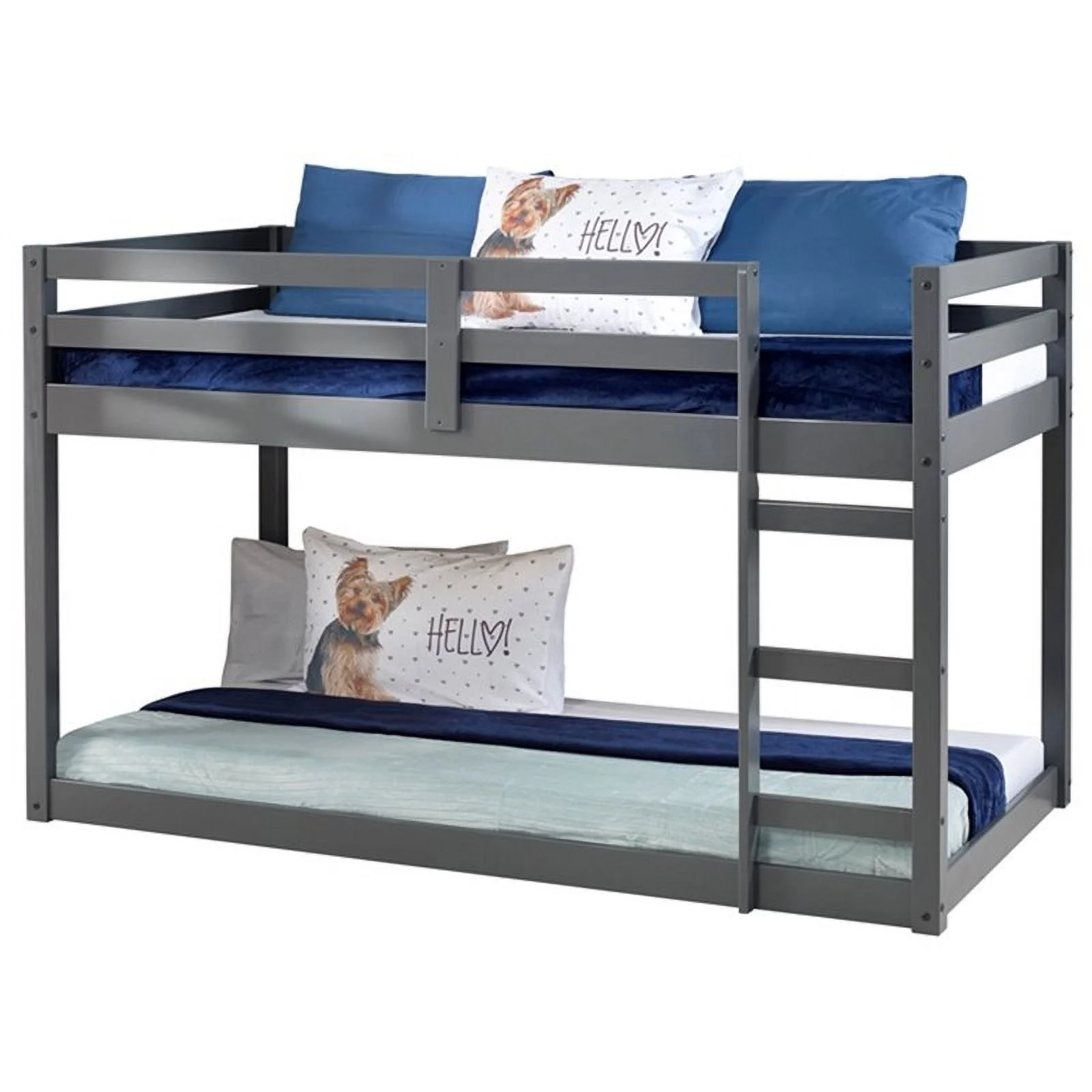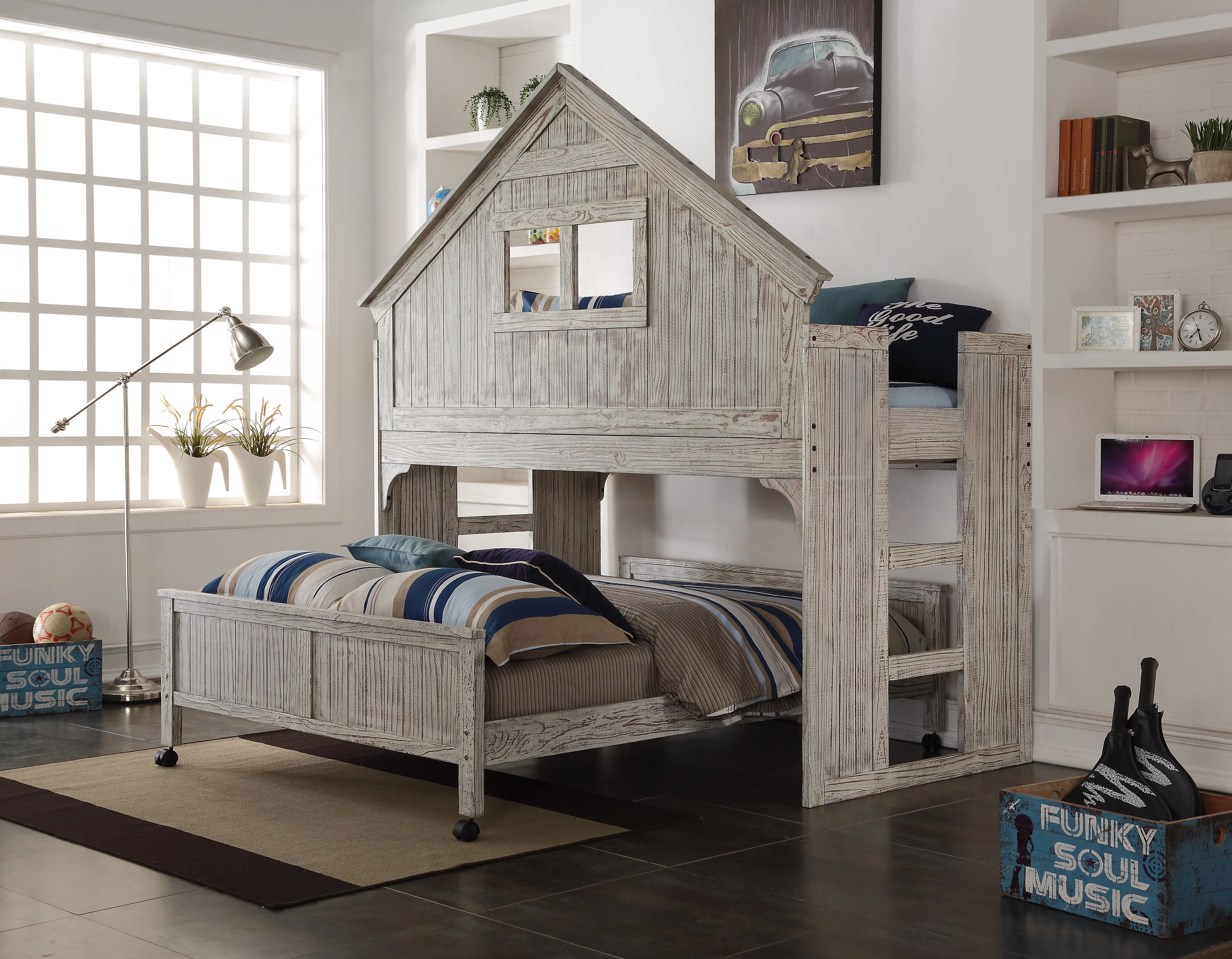 CLUB HOUSE LOW LOFT TWIN BED WITH FULL CASTER BED IN BRUSHED DRIFTWOOD FINISH