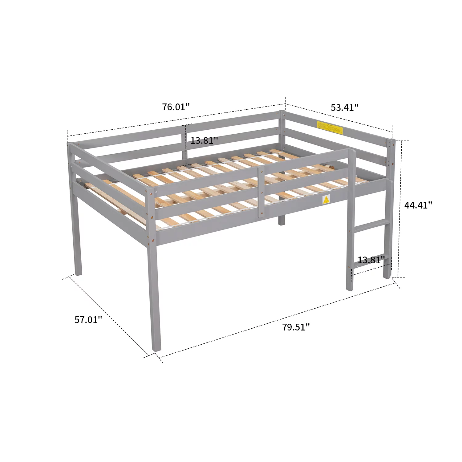 Modern and Minimalist Style Full Size Wooden Loft Bed with Ladder and Guardrail, Gray
