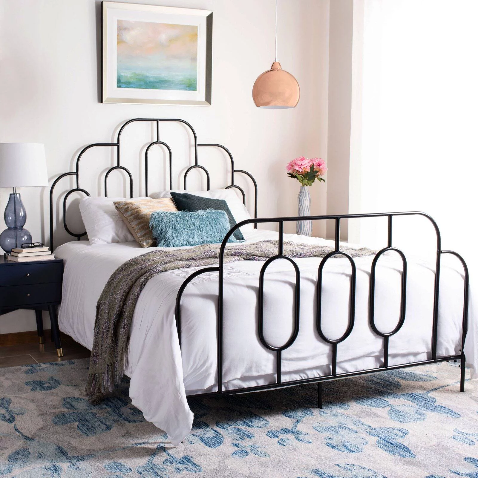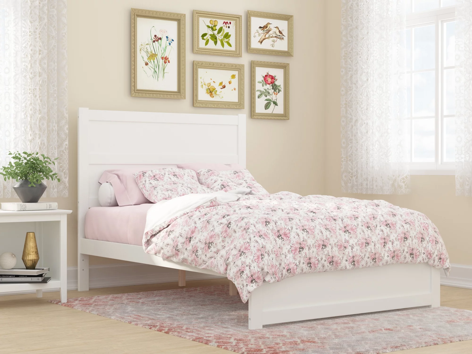 AFI NoHo 14" Full Wood Platform Bed with Modern Panel Headboard and Footboard, White
