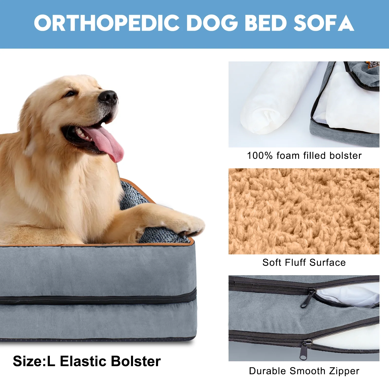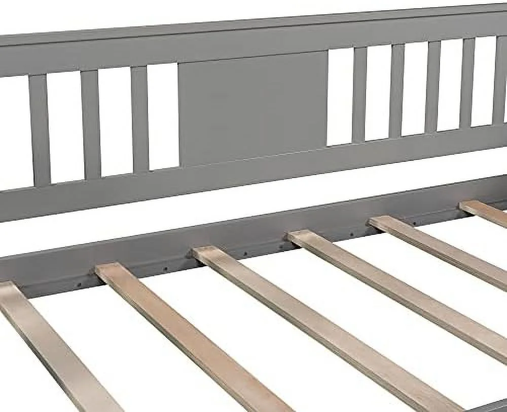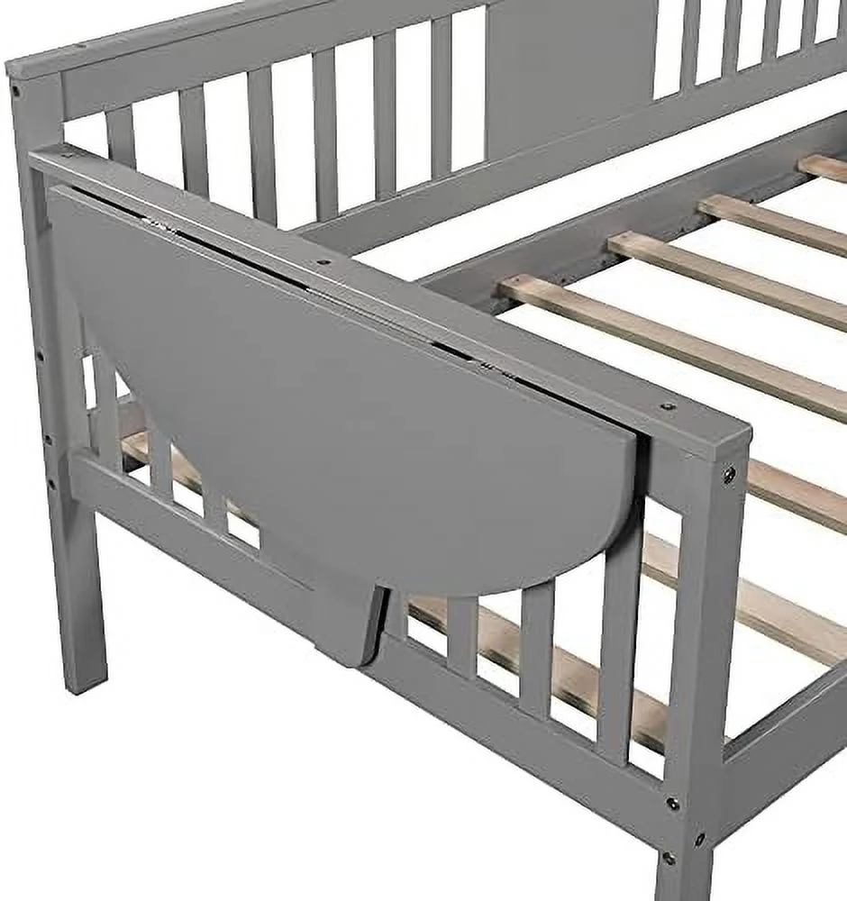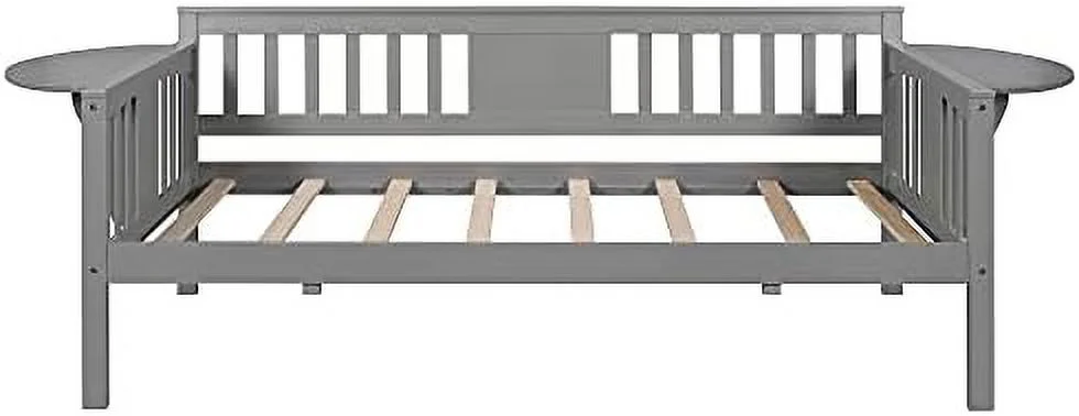 Dual-use Full Sofabed Daybed with 1 Twin Trundle, Rails and 2 Extra Connected Small Coffee Table Shelf, Grey
