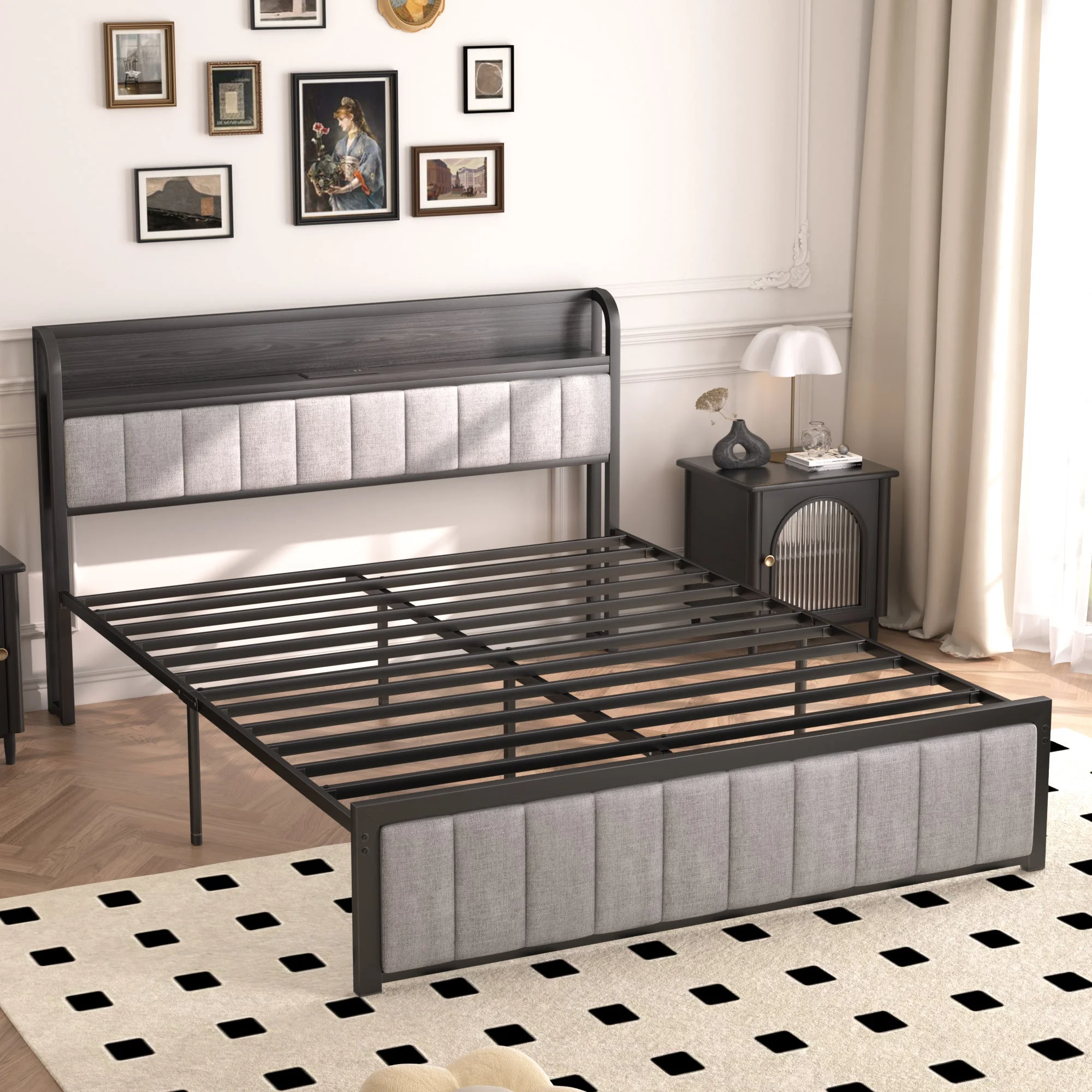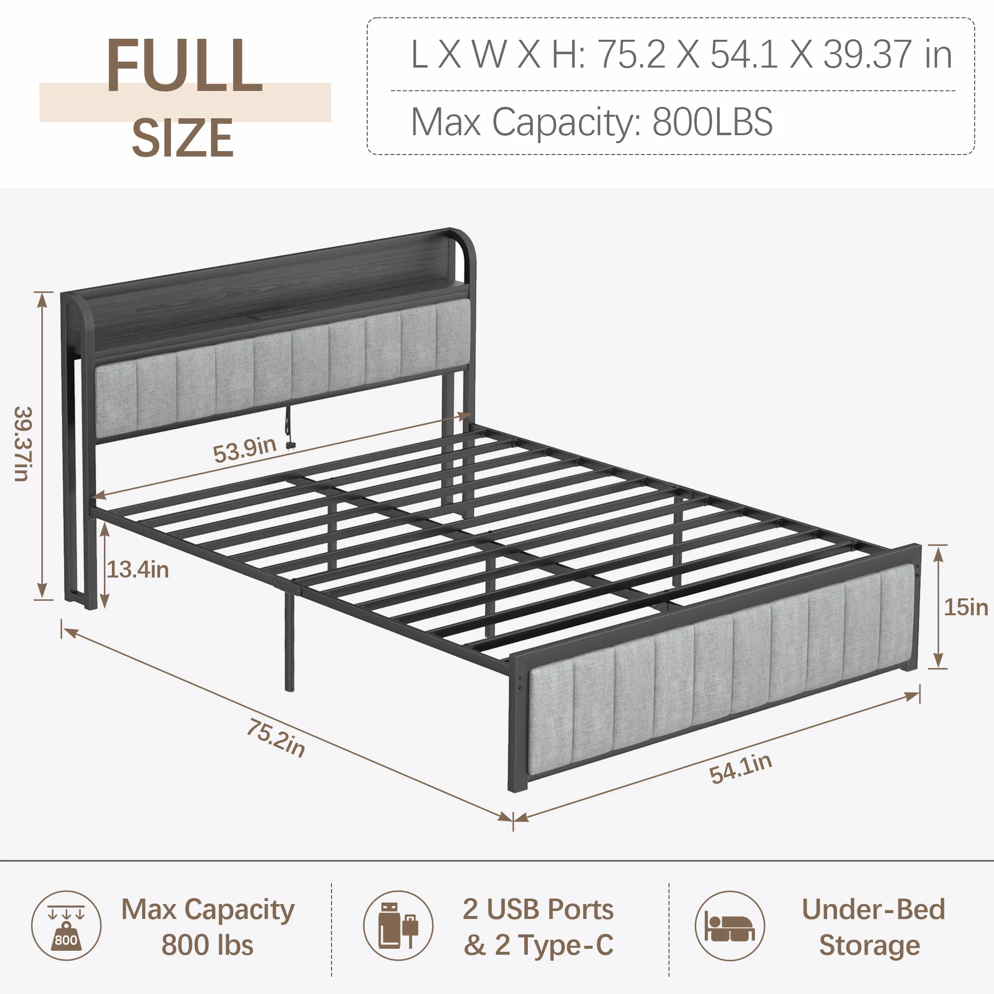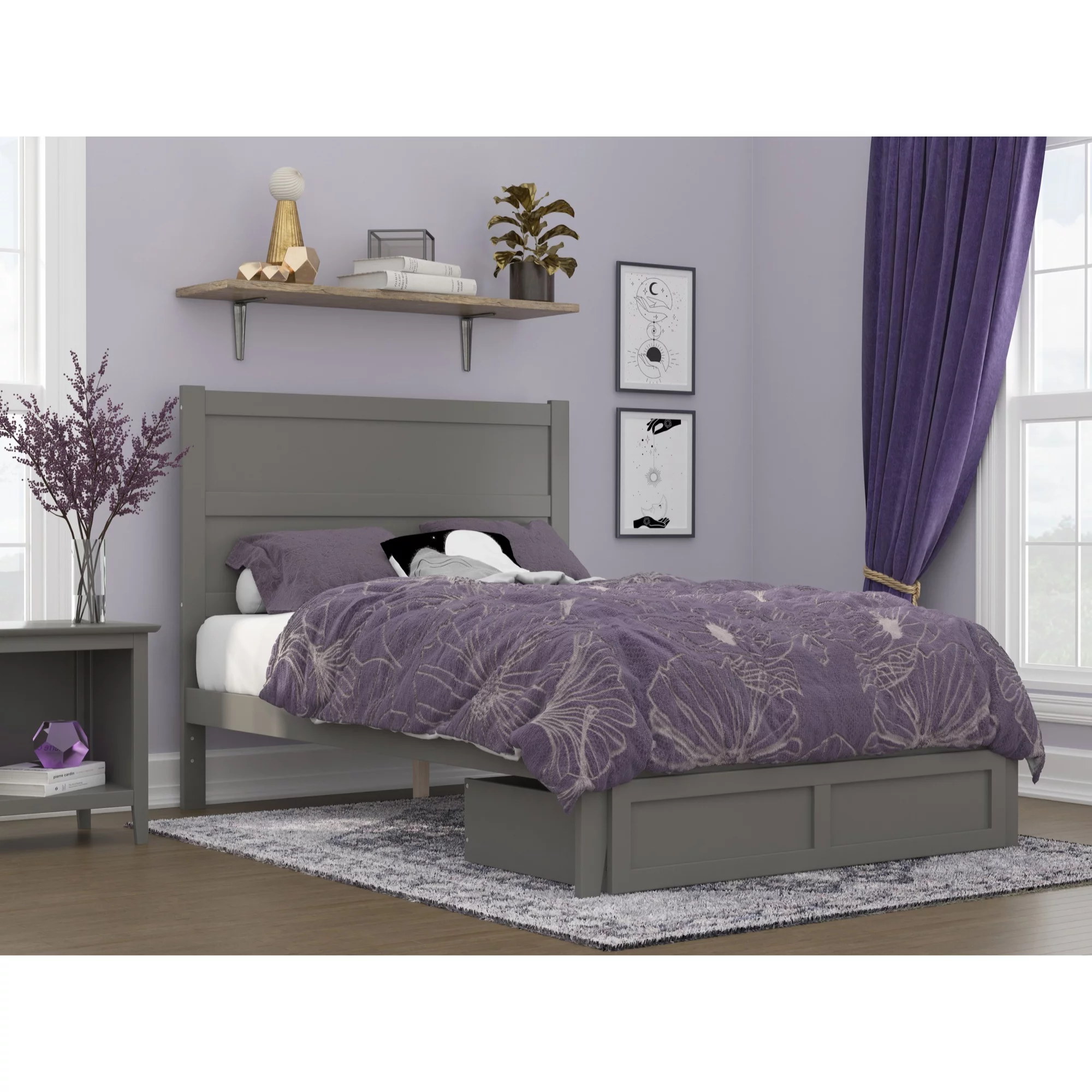 HomeStock Boldly Bohemian Full Bed W/Storage, Gray Oak (1Set/4Ctn)