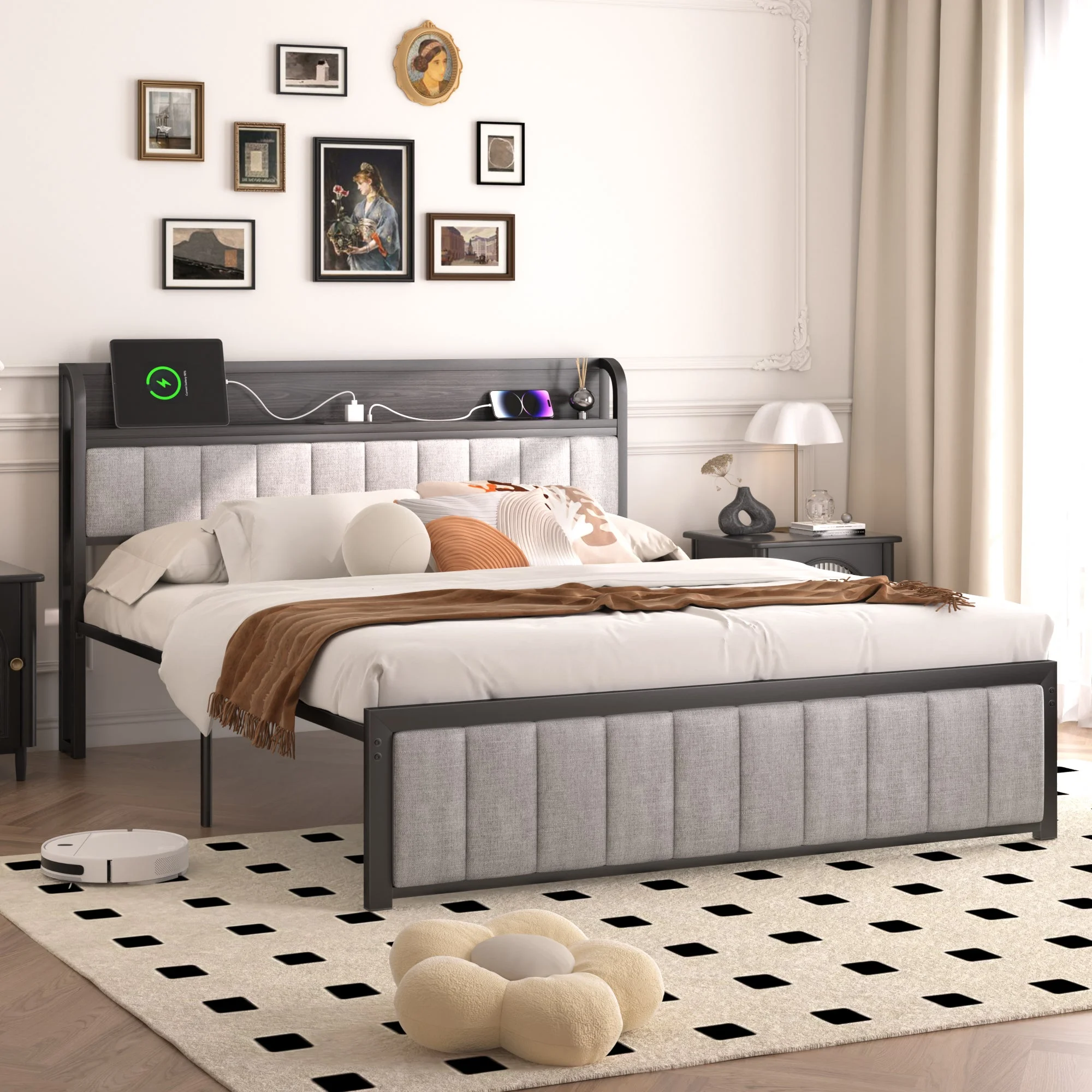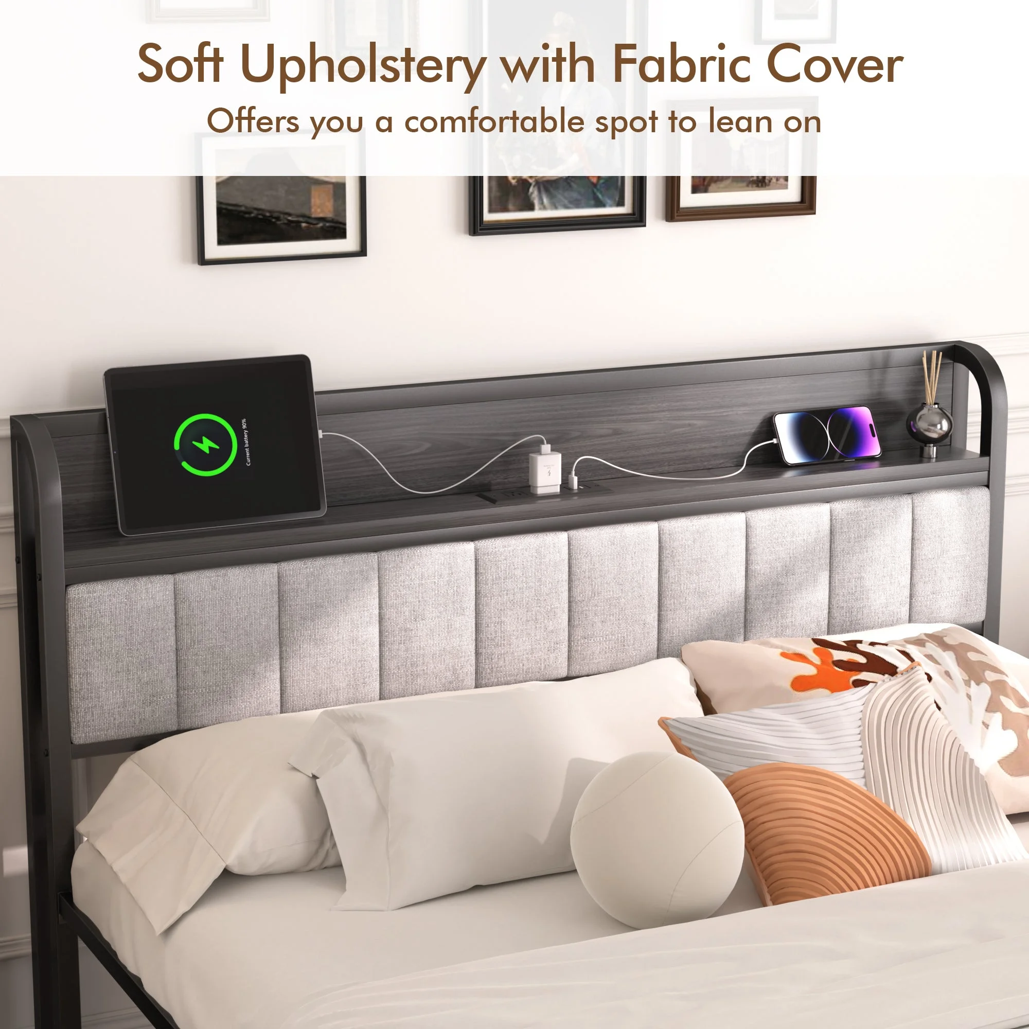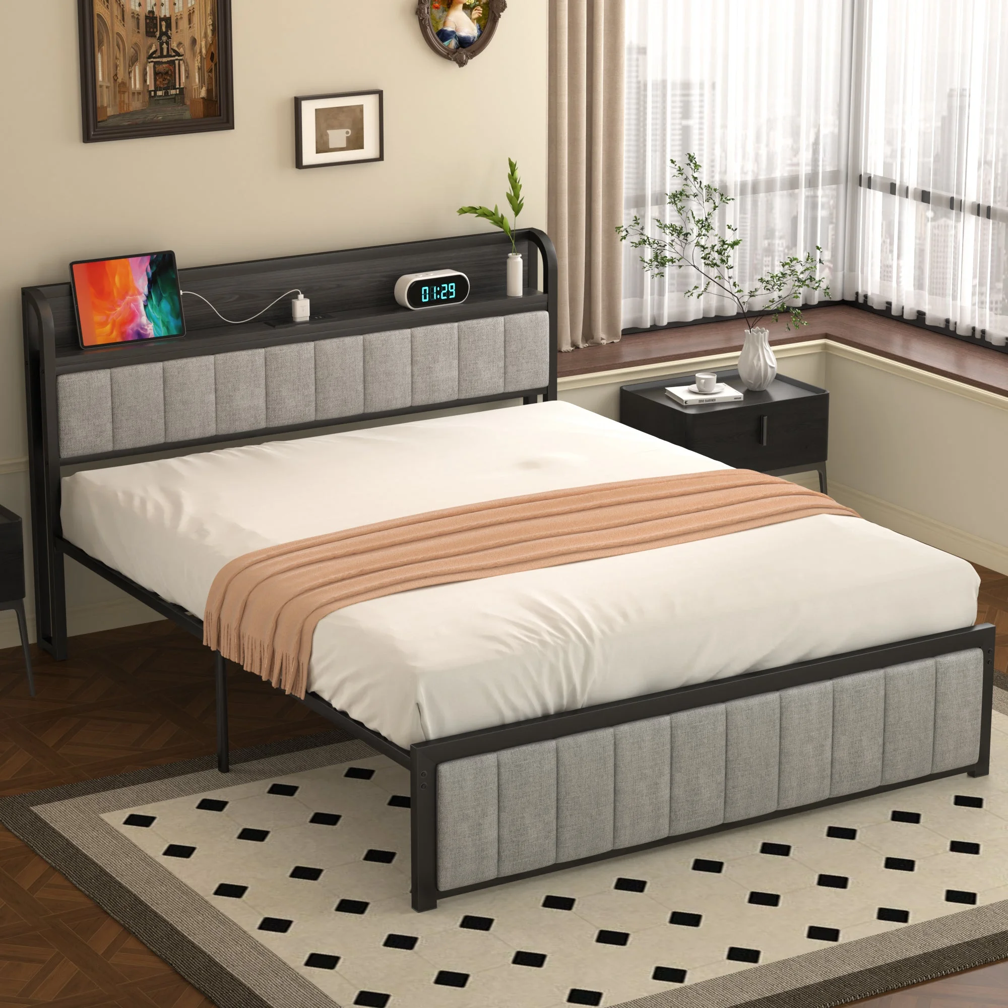 HomeStock Boldly Bohemian Full Bed W/Storage, Gray Oak (1Set/4Ctn)