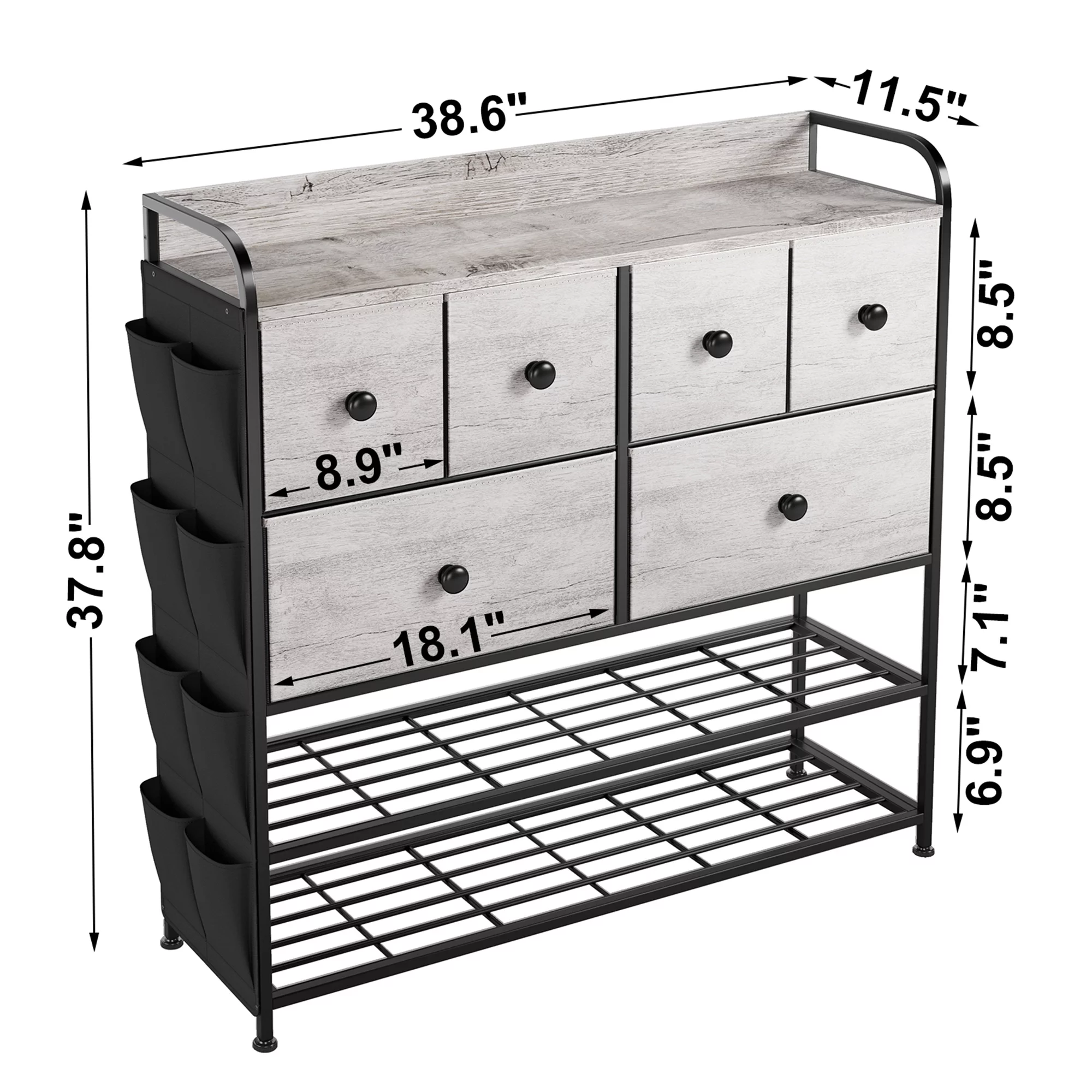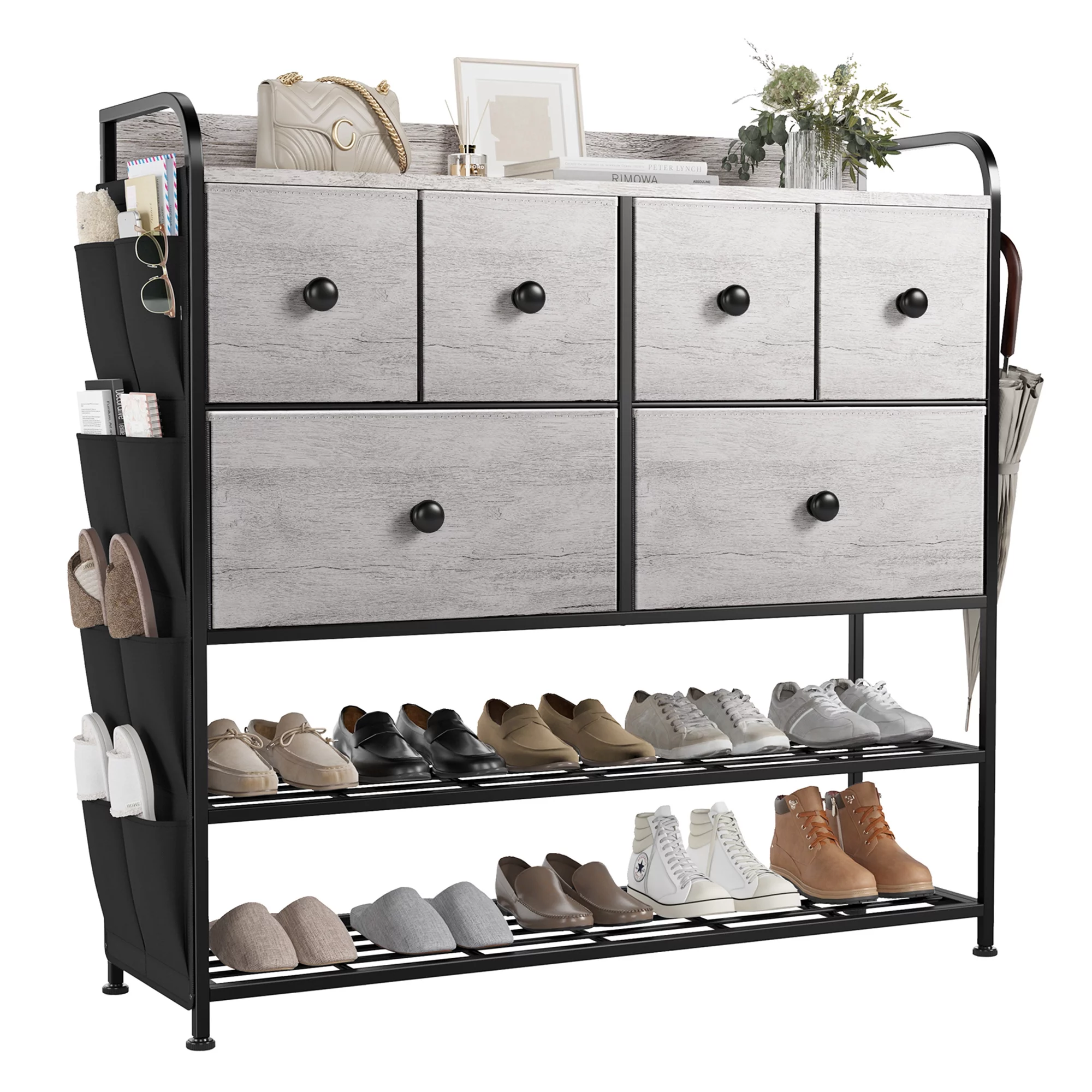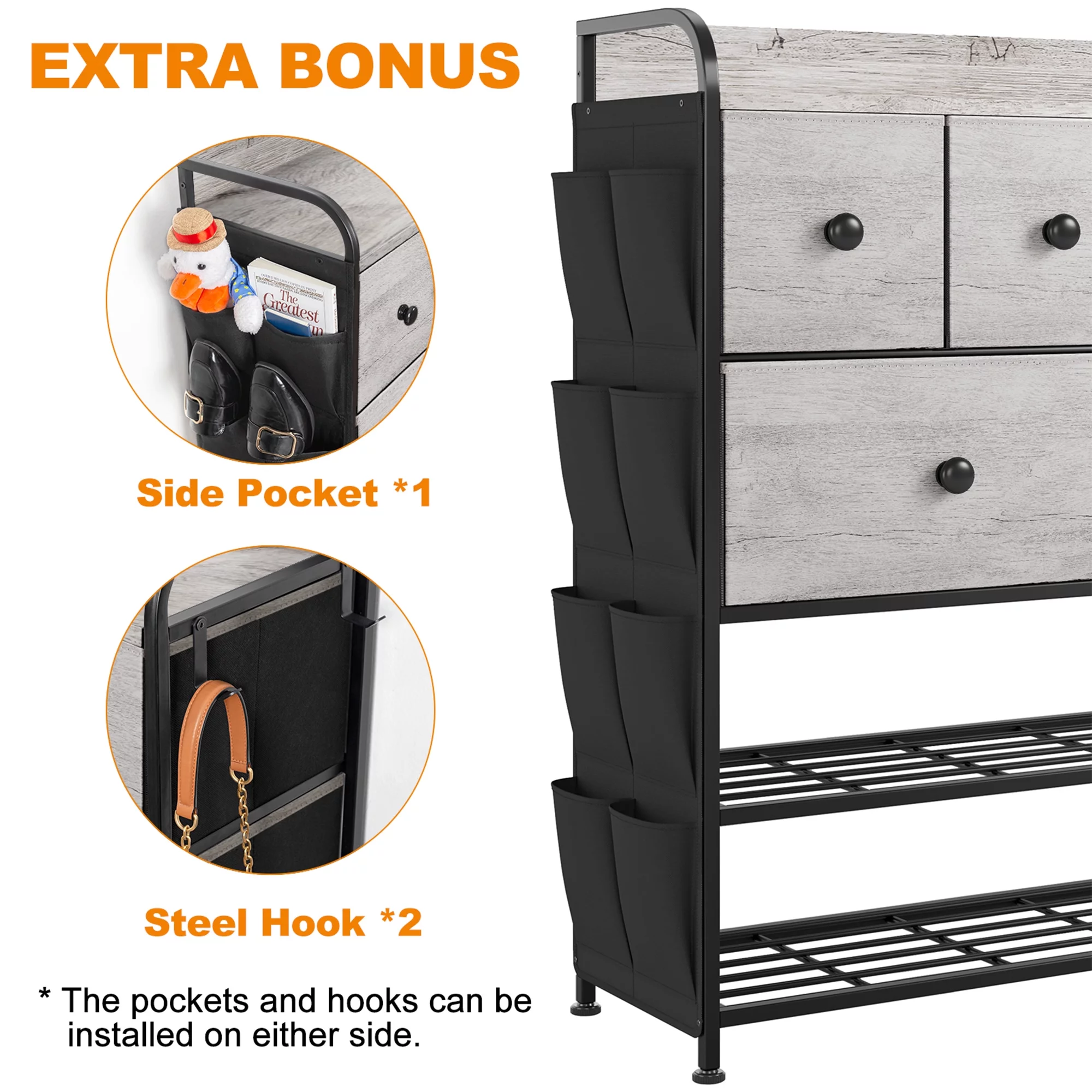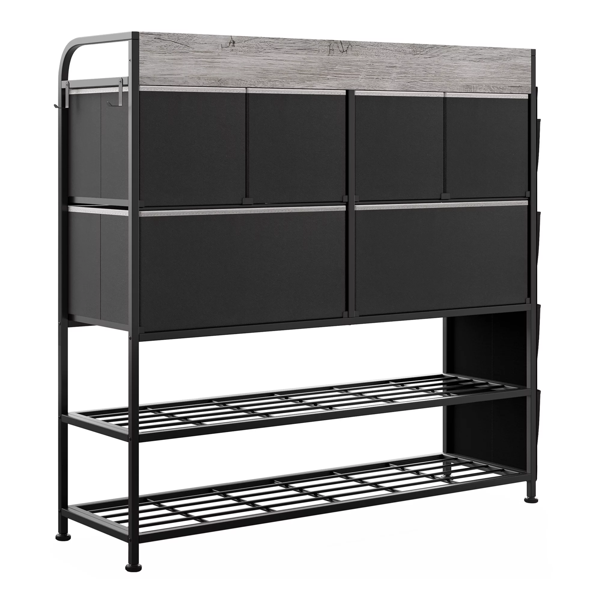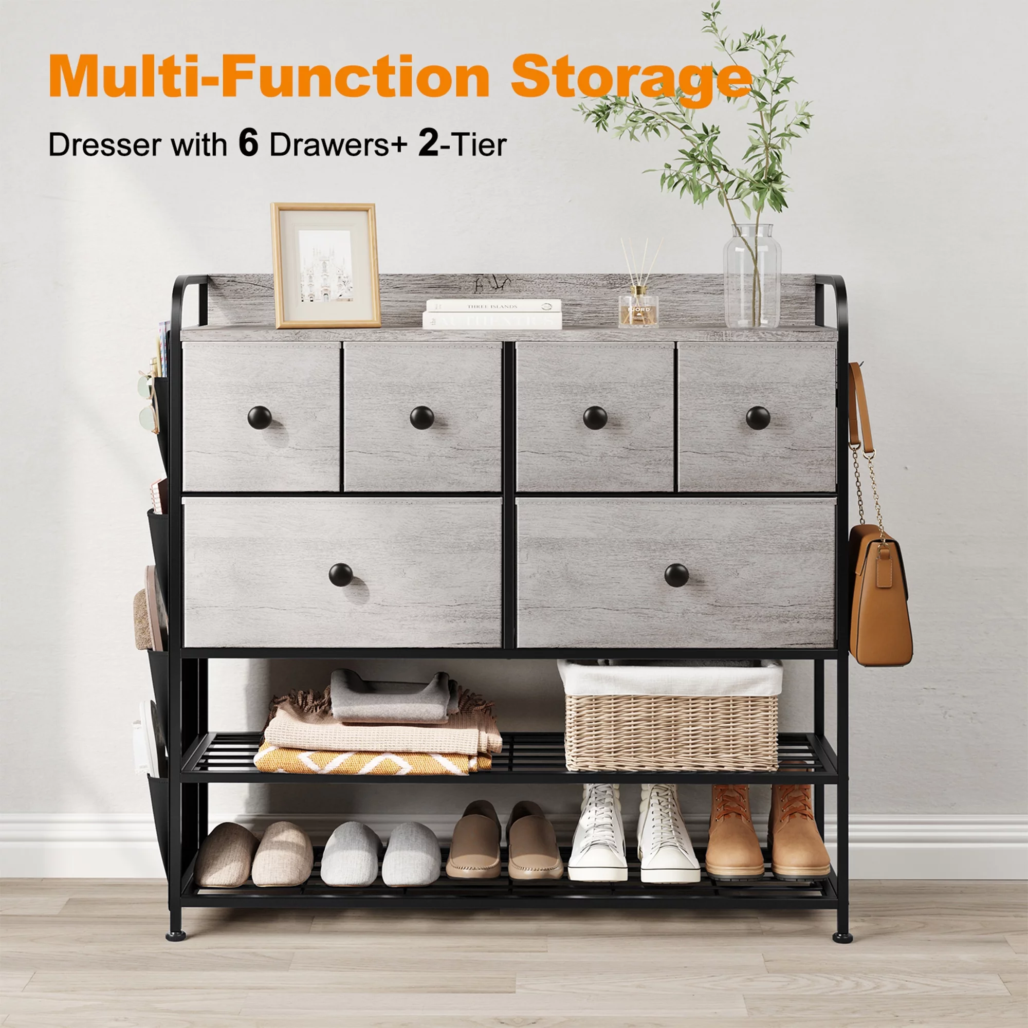 REAHOME 6 Fabric Drawer Dresser w/2 Tier Storage Shelf & Pockets,Dark Taupe