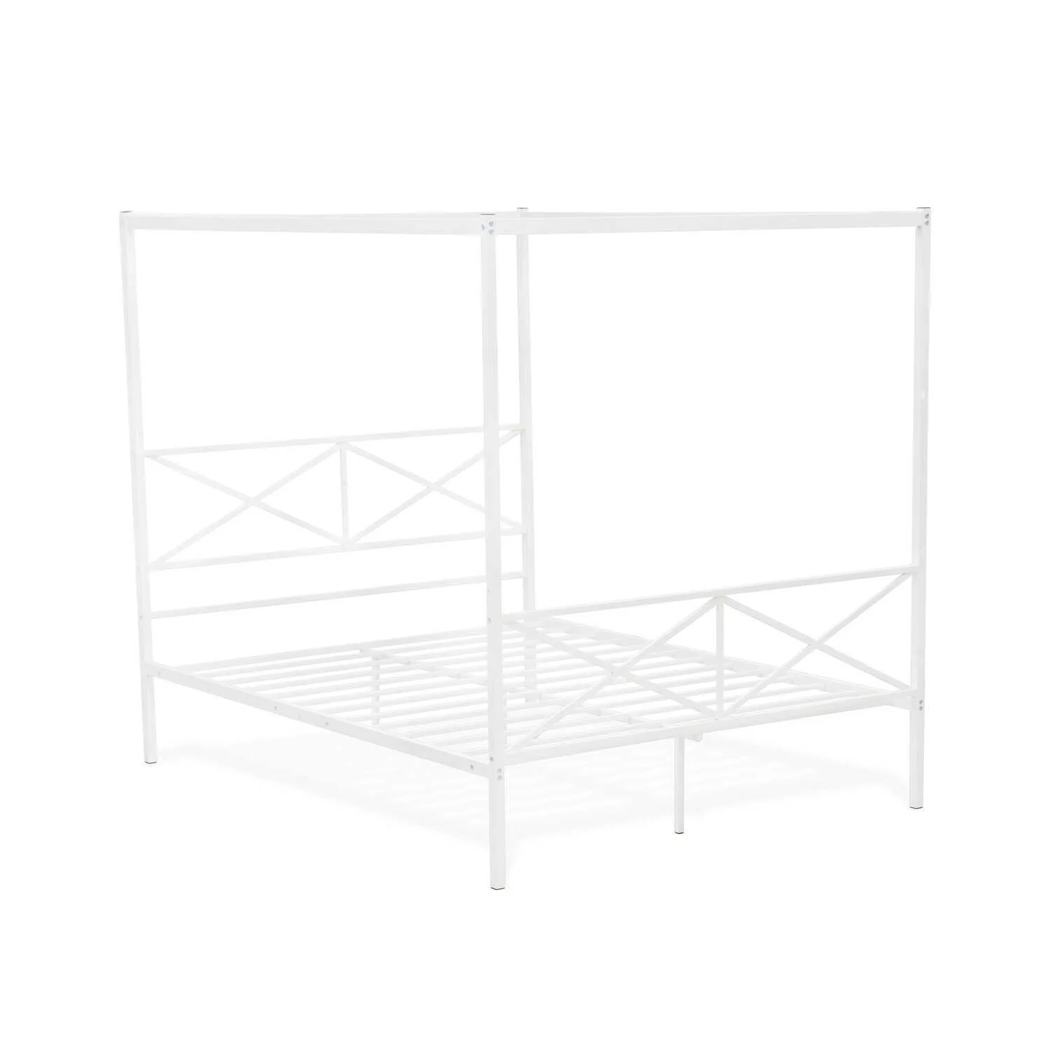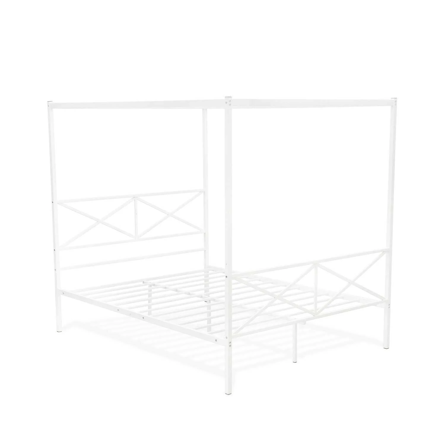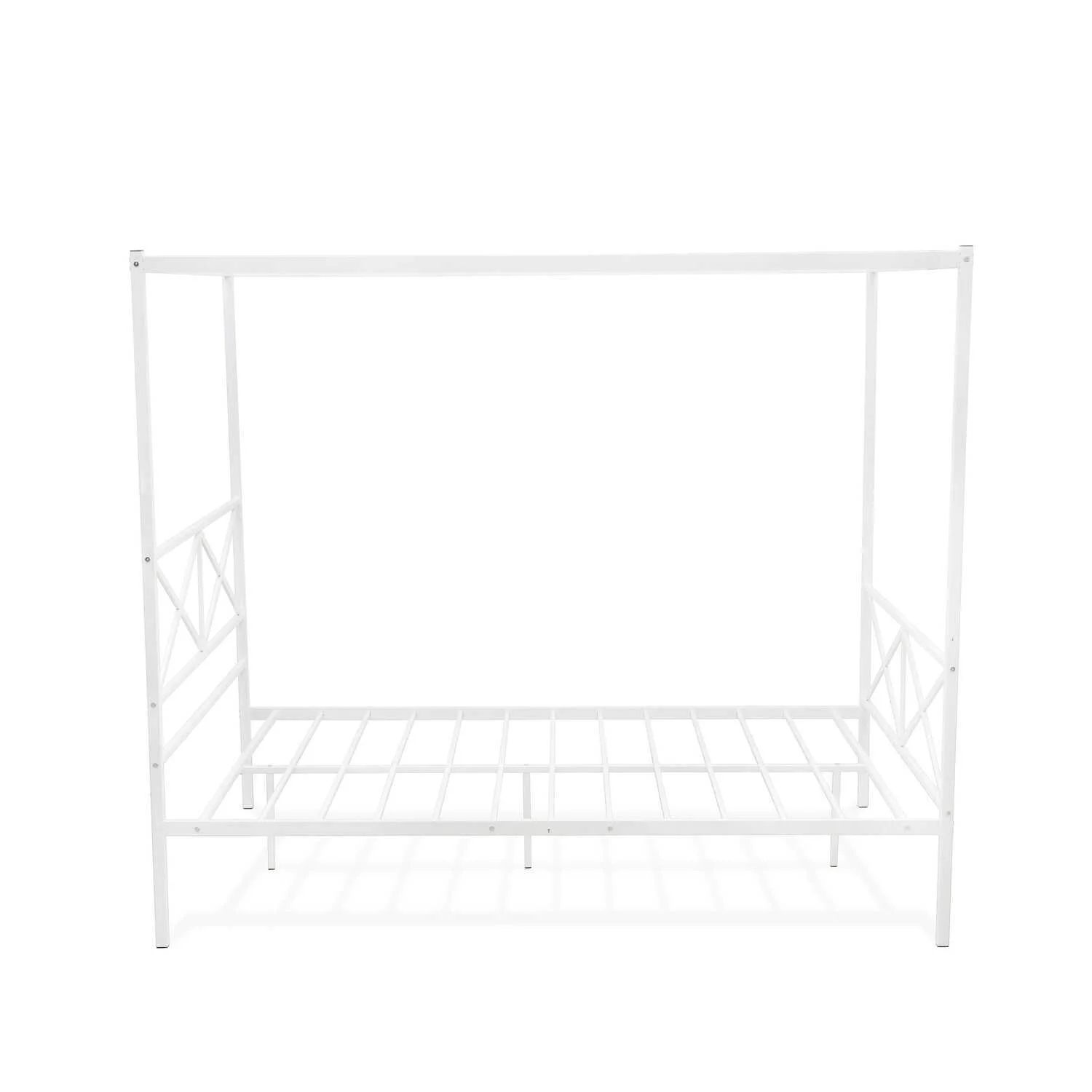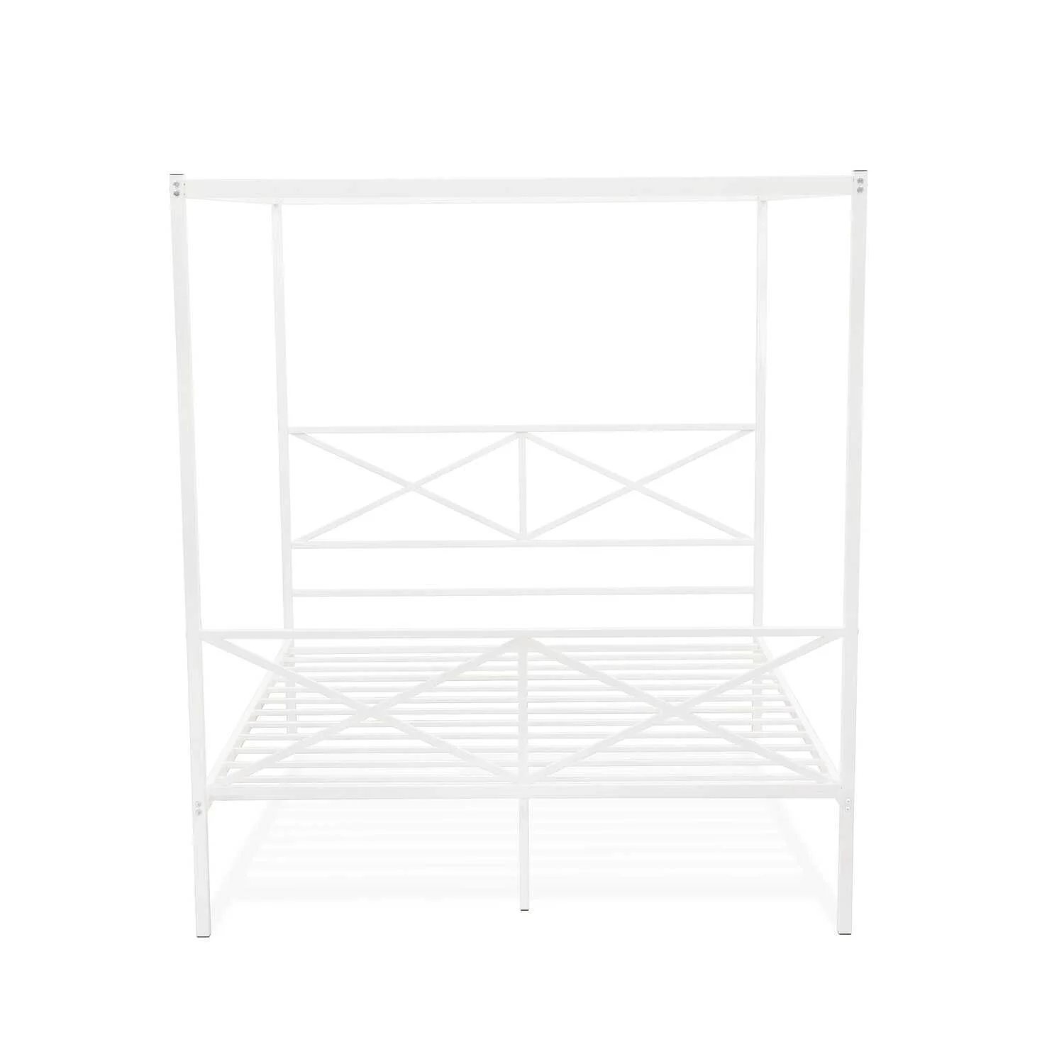 Queen Size Canopy Platform Bed with Headboard, Wood 4-Post Canopy BedFrame