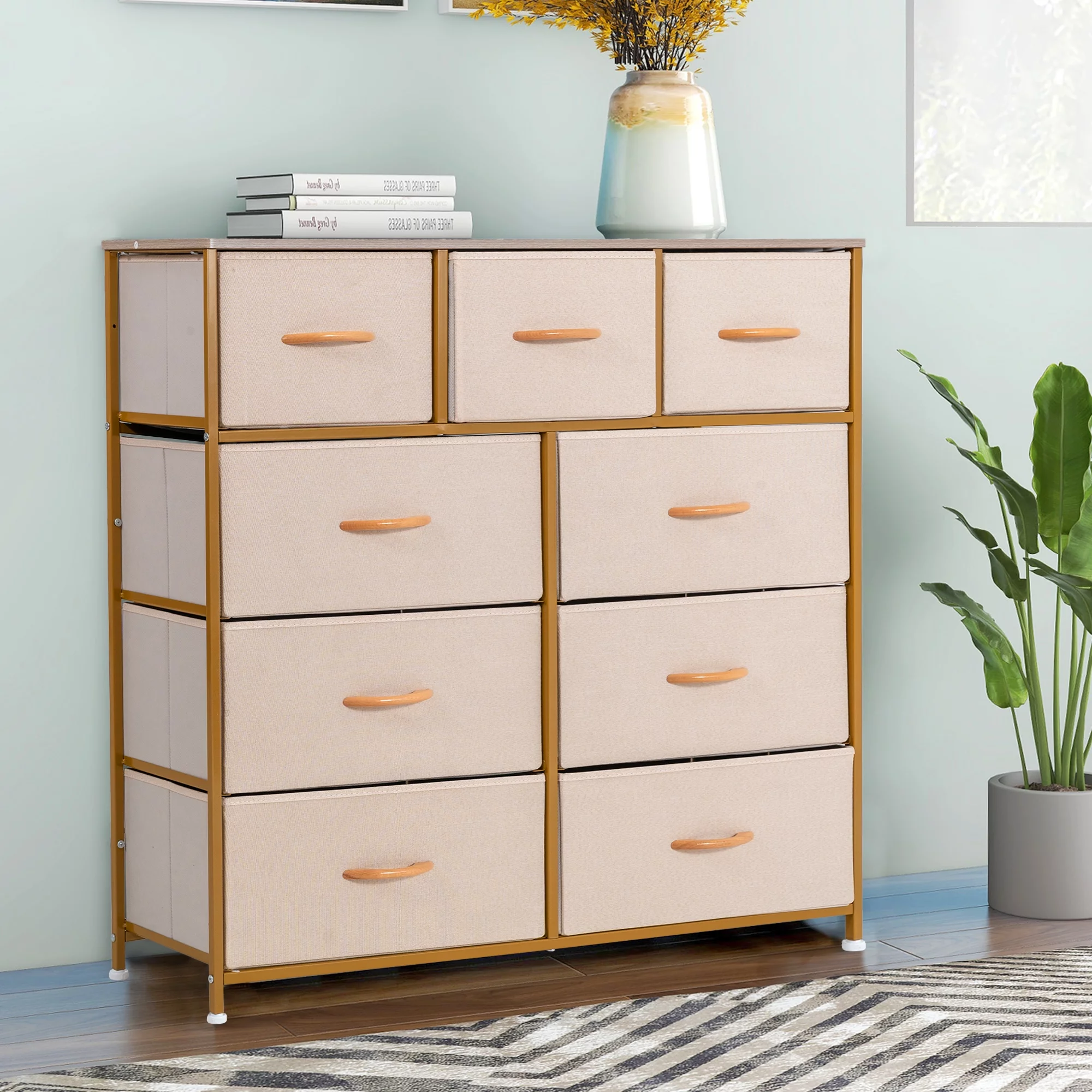 Prime Garden 9 Drawers Dresser for Kids Room High Storage Tower Furniture, Gold