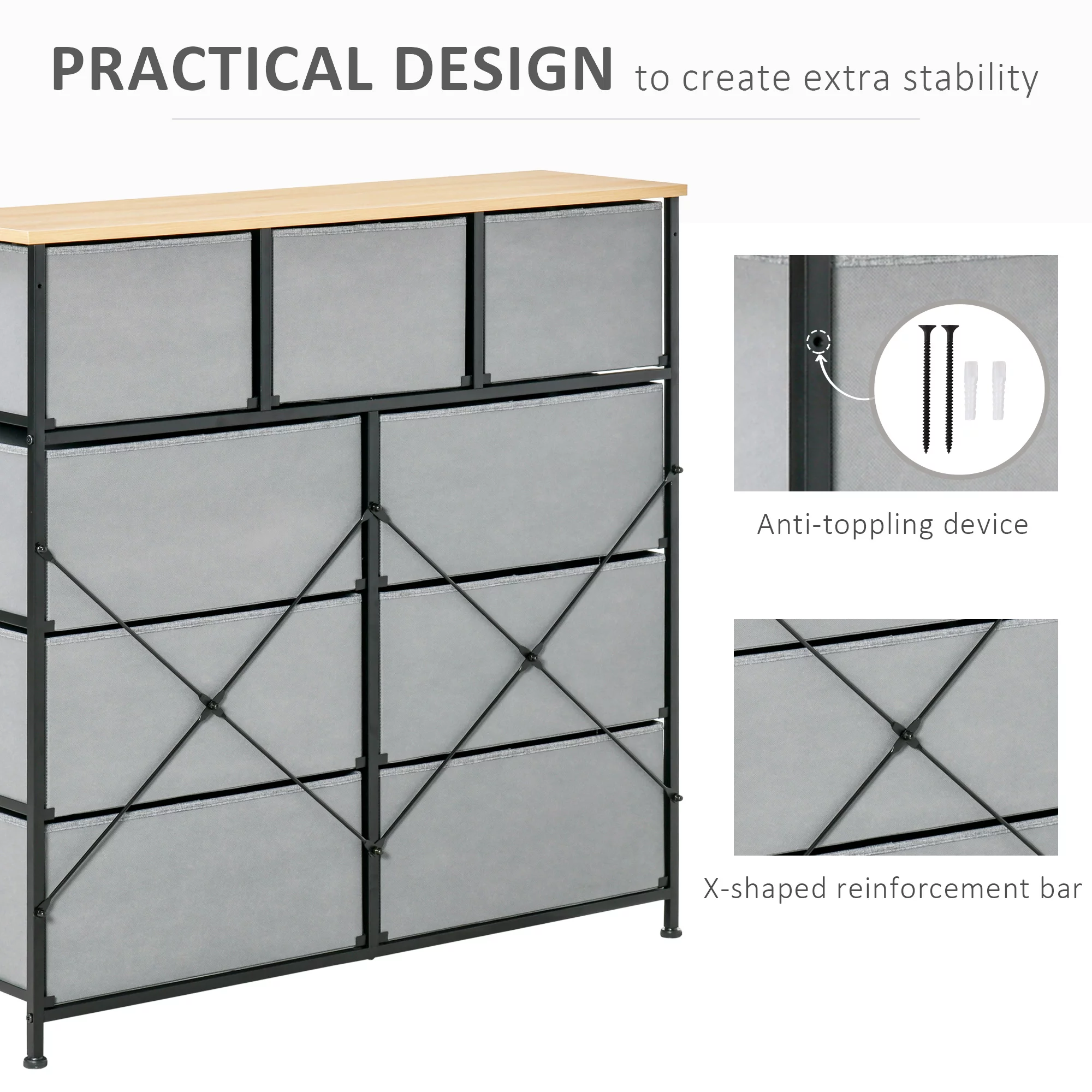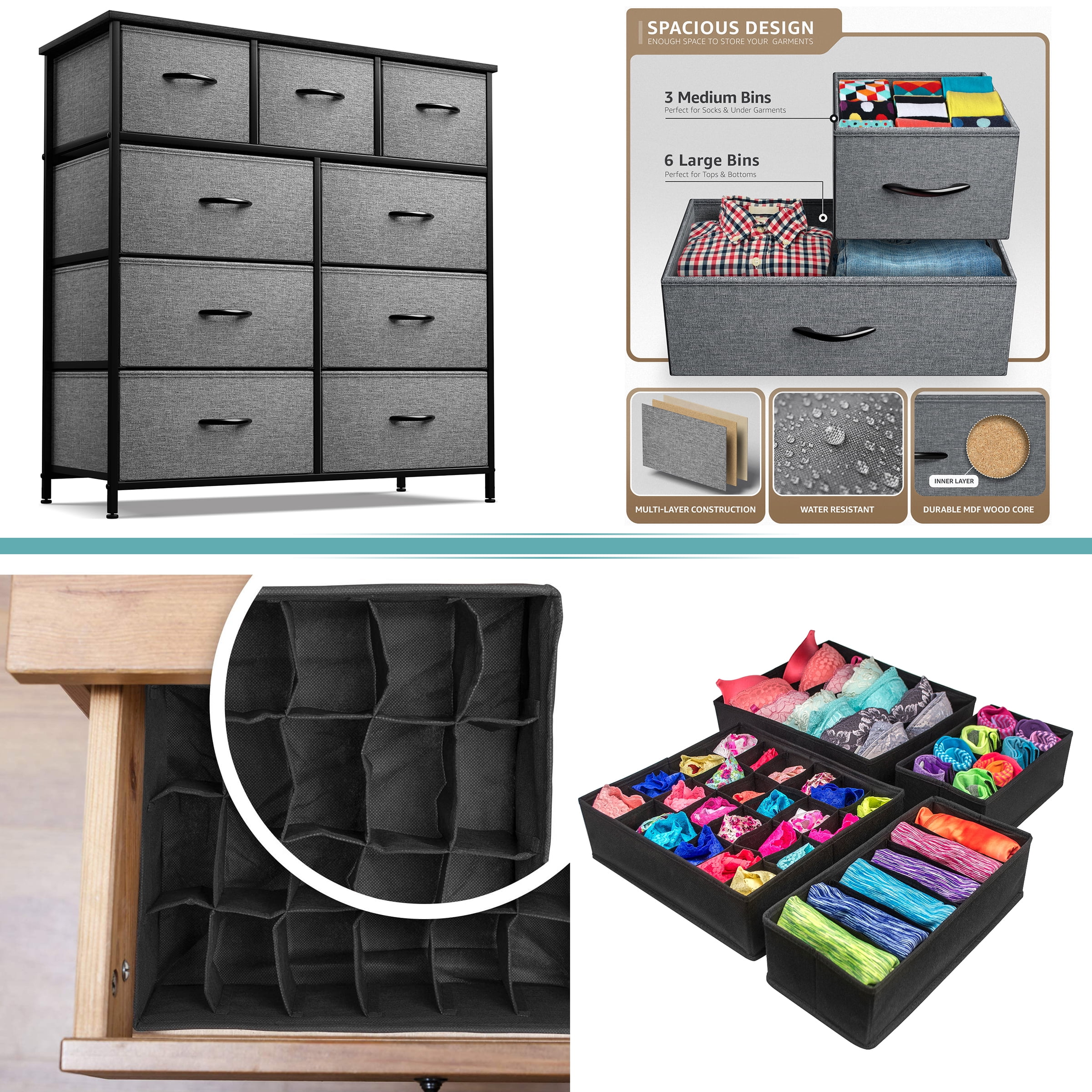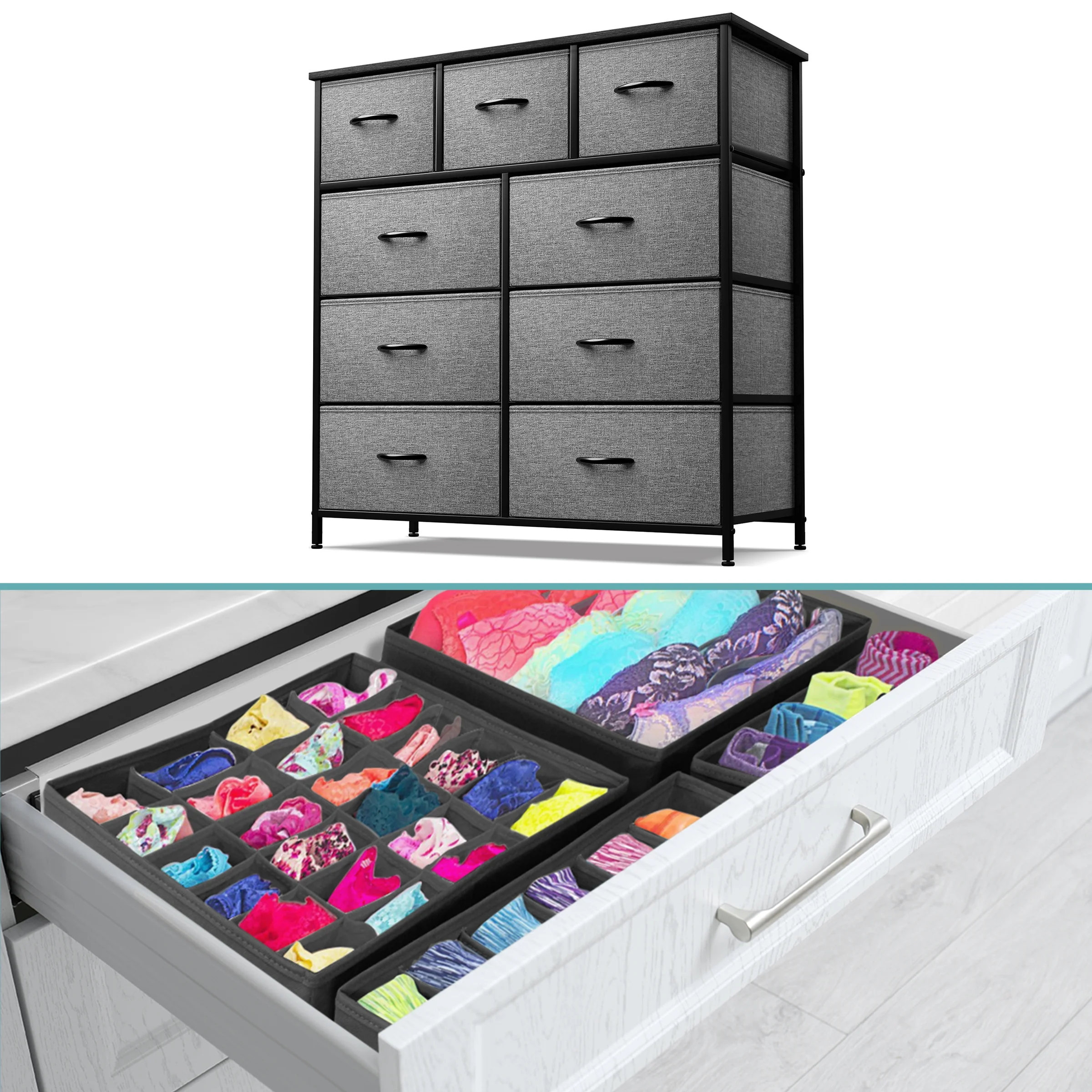 Sorbus 9-Drawer Dresser with Foldable Fabric Drawer Dividers: Ideal for Adult Bedrooms, Offices