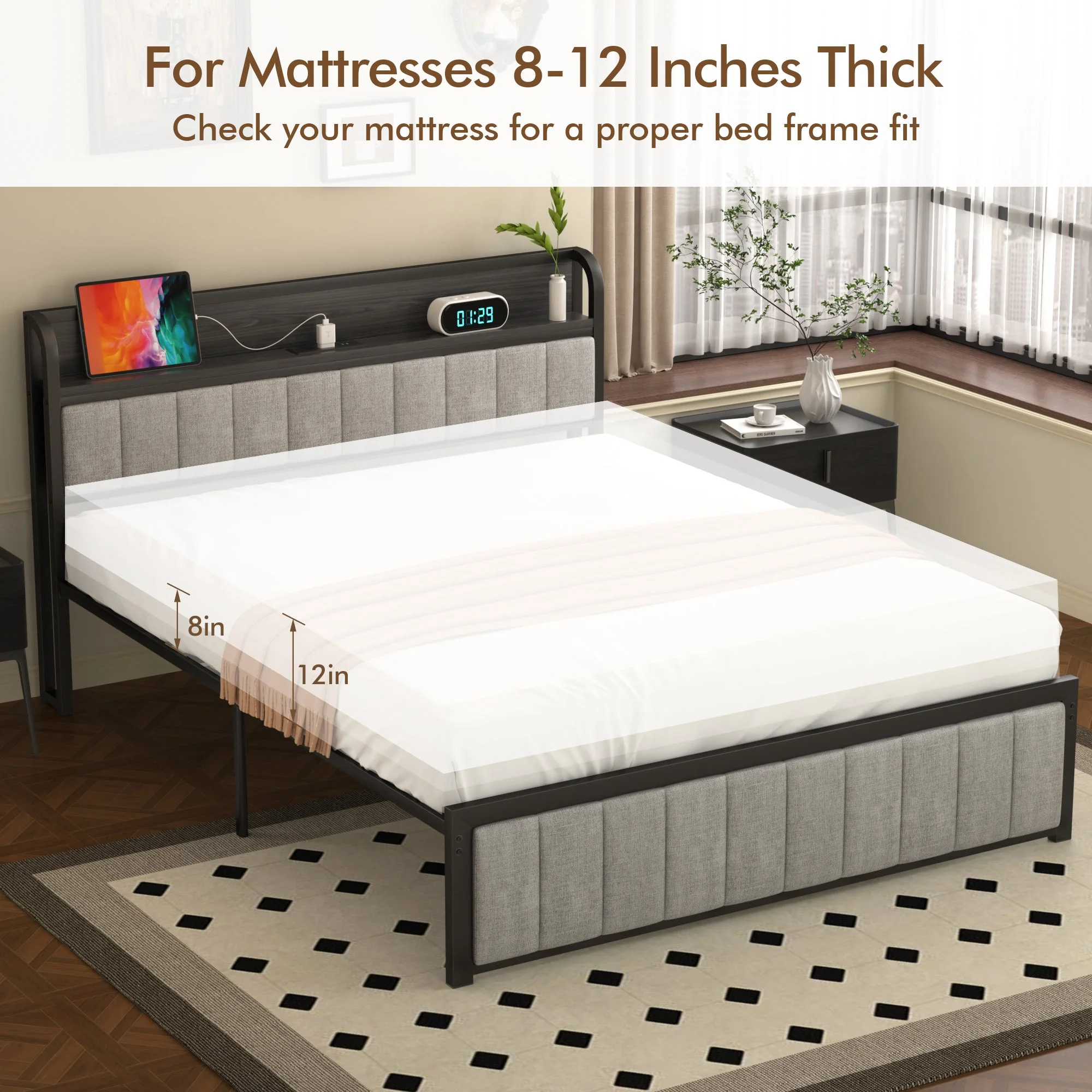 GrandRest 12-inch Perfect Relaxing Classic Wood Platform Bed with Headboard, King