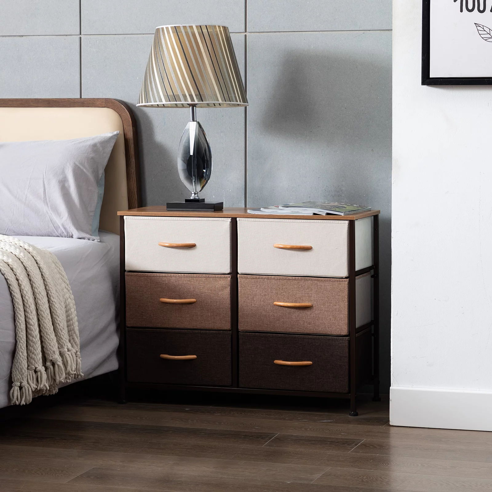 Duhome Elegant Lifestyle 6 Drawer Dresser, Fabric Dresser Storage Organizer for Bedroom, Chest of Drawers, Mix Color