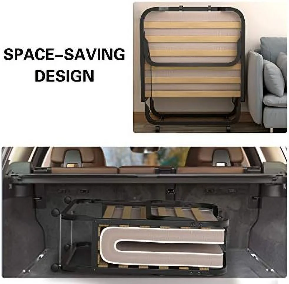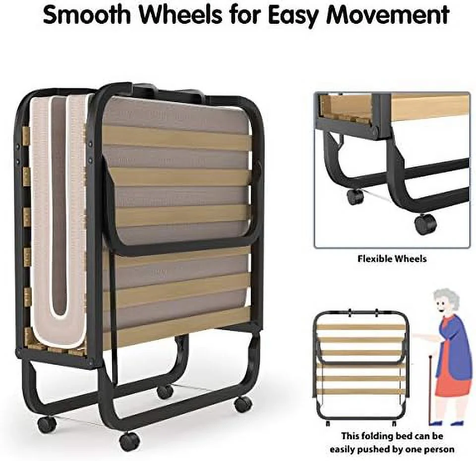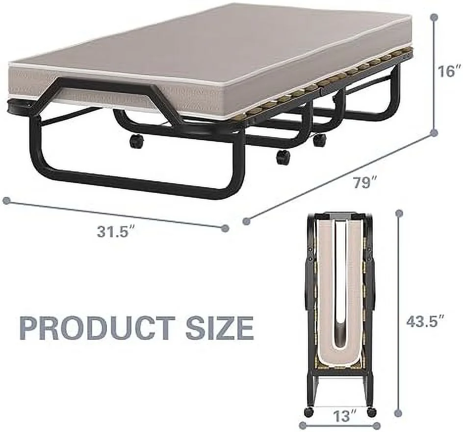 Folding Rest Bed Cot Sleeper Roll Away Guest Camping Office Bed w/ Mattress
