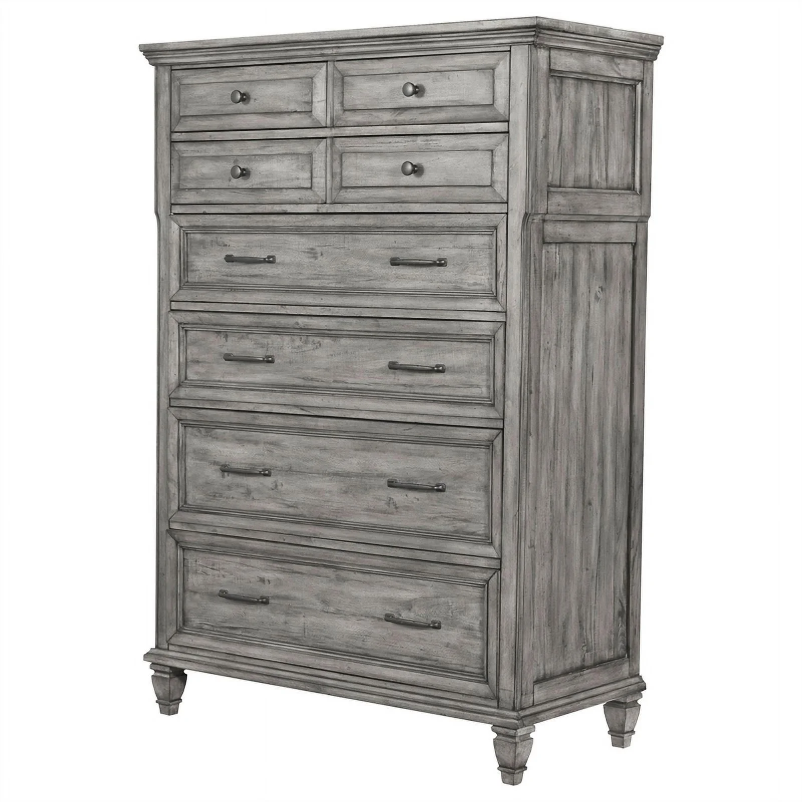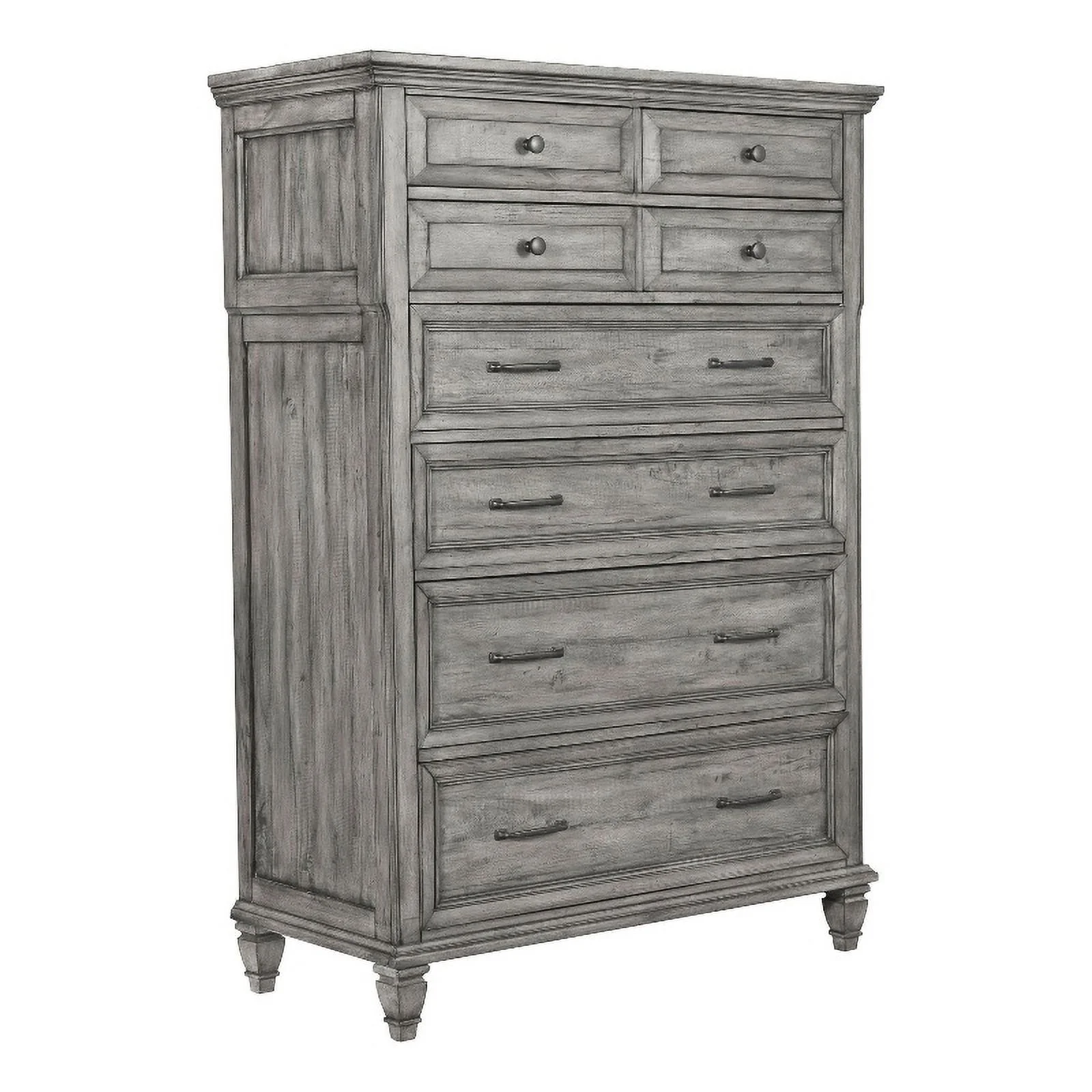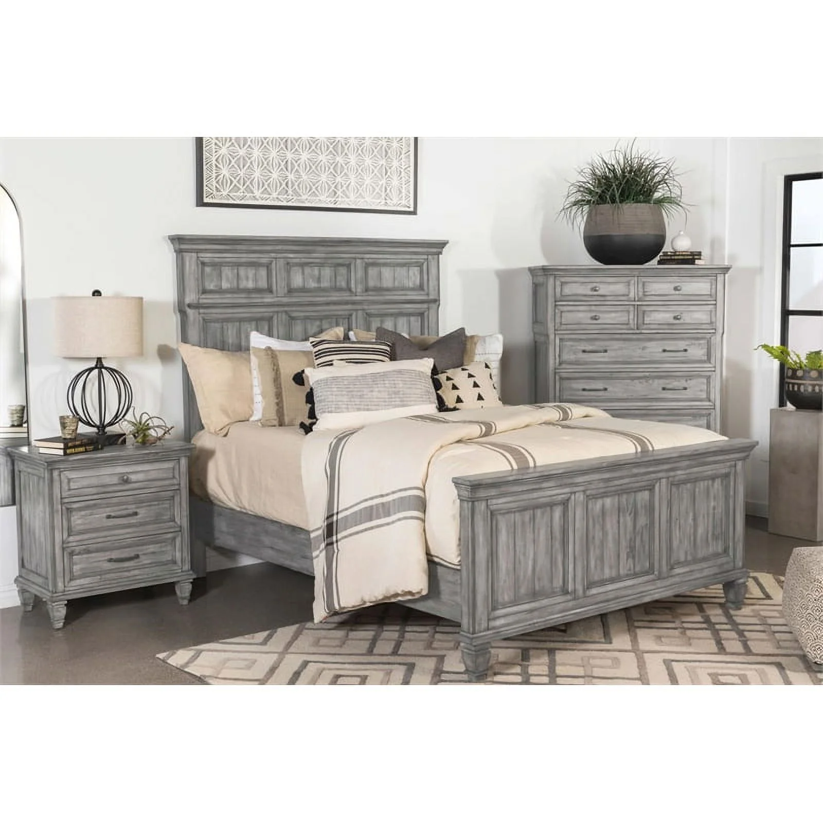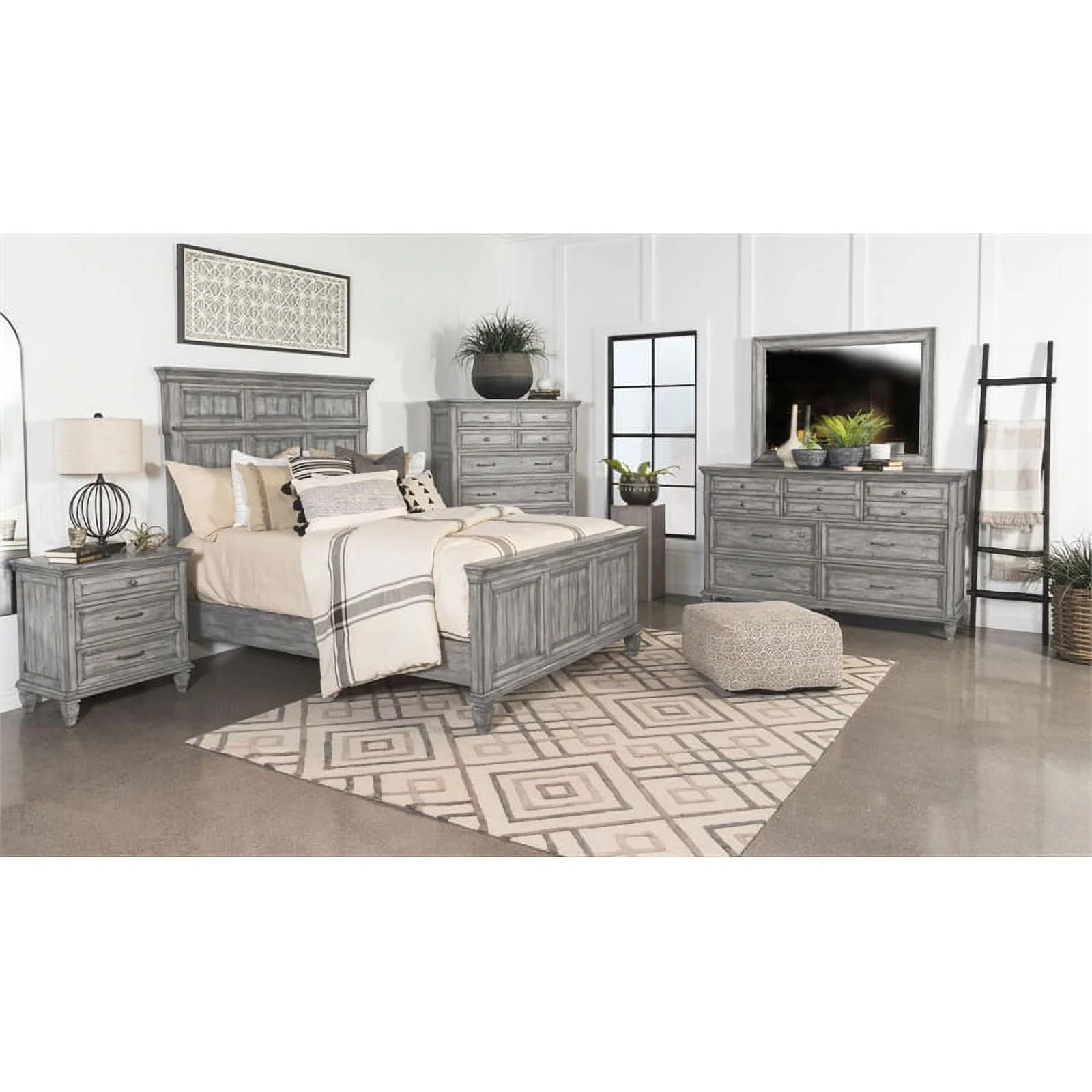 Transitional Gray Solid Wood Full Bedroom Set 6pcs FOA CM7966GY Louis Philippe