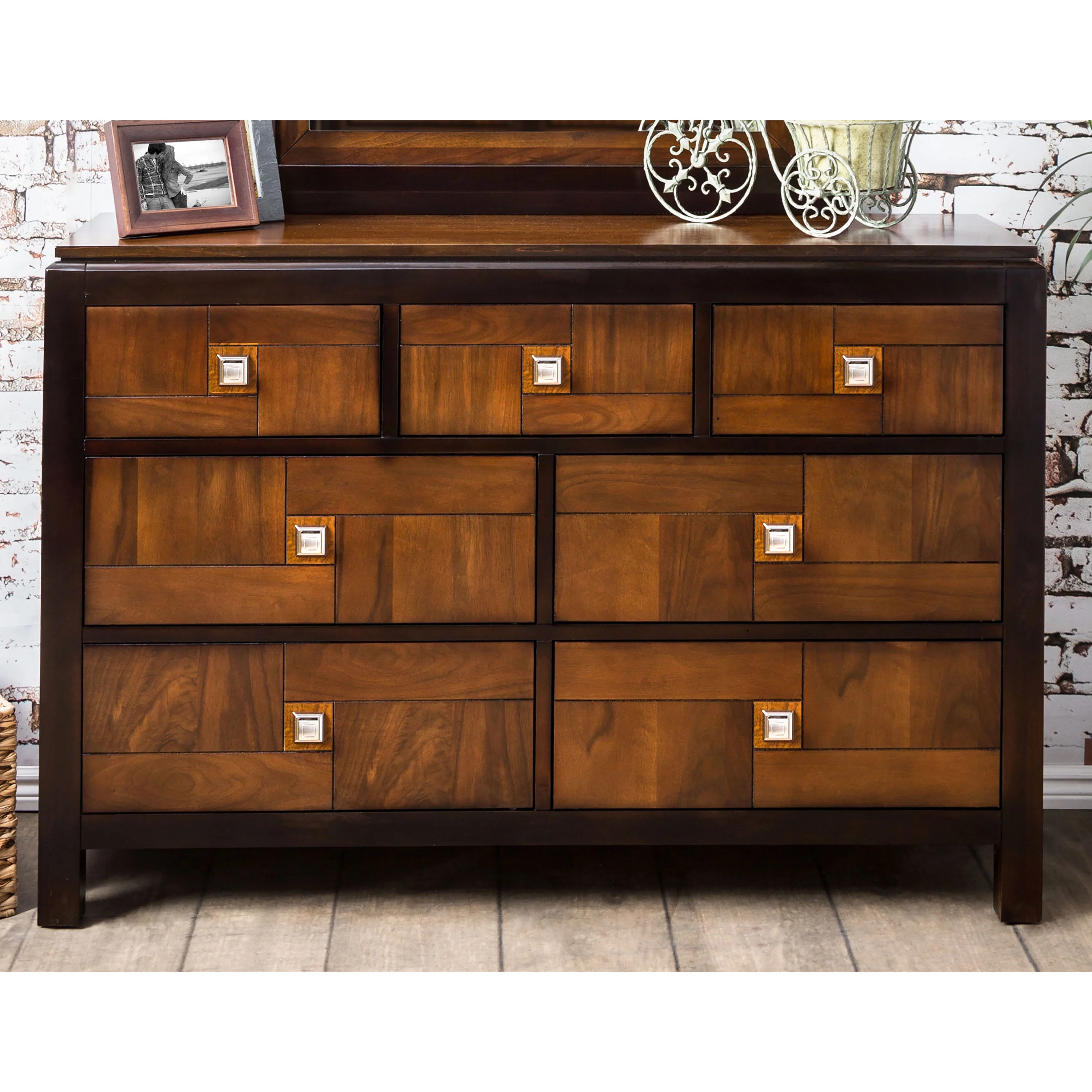 Furniture of America Delia Transitional 7-Drawer Wood Dresser in Walnut Finish