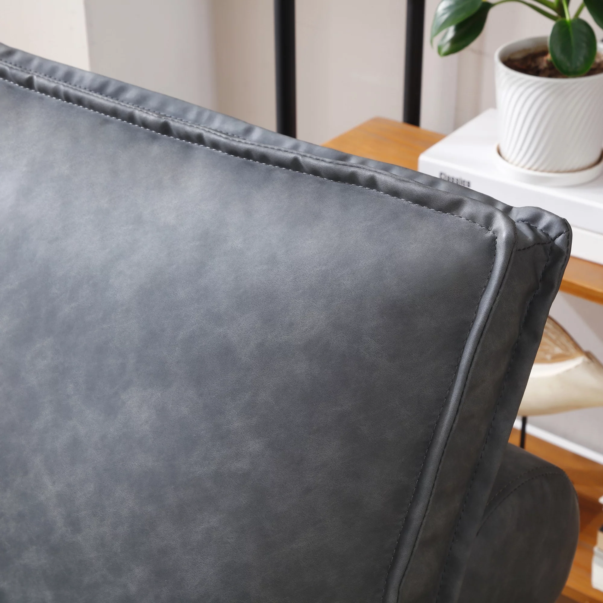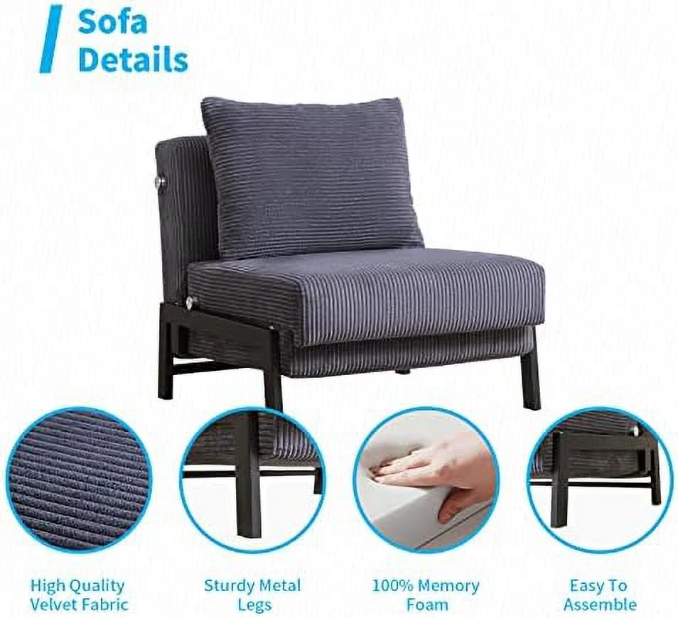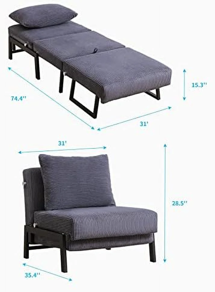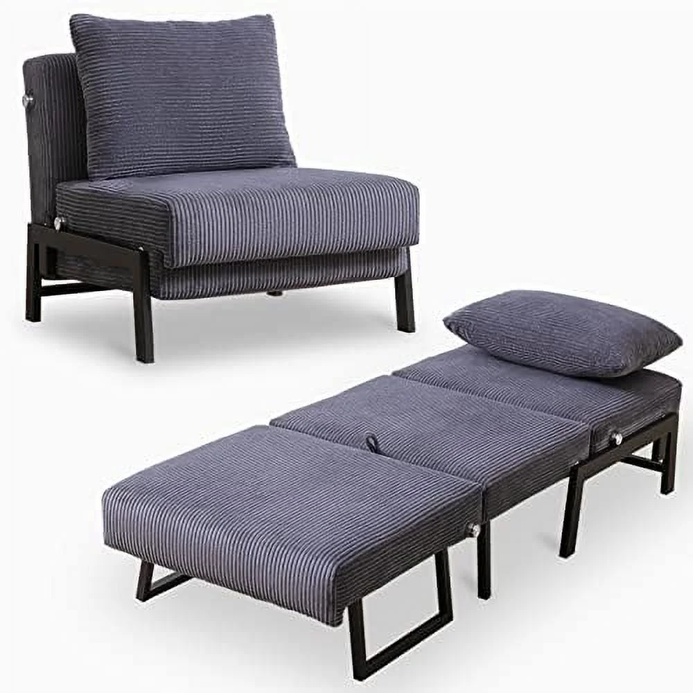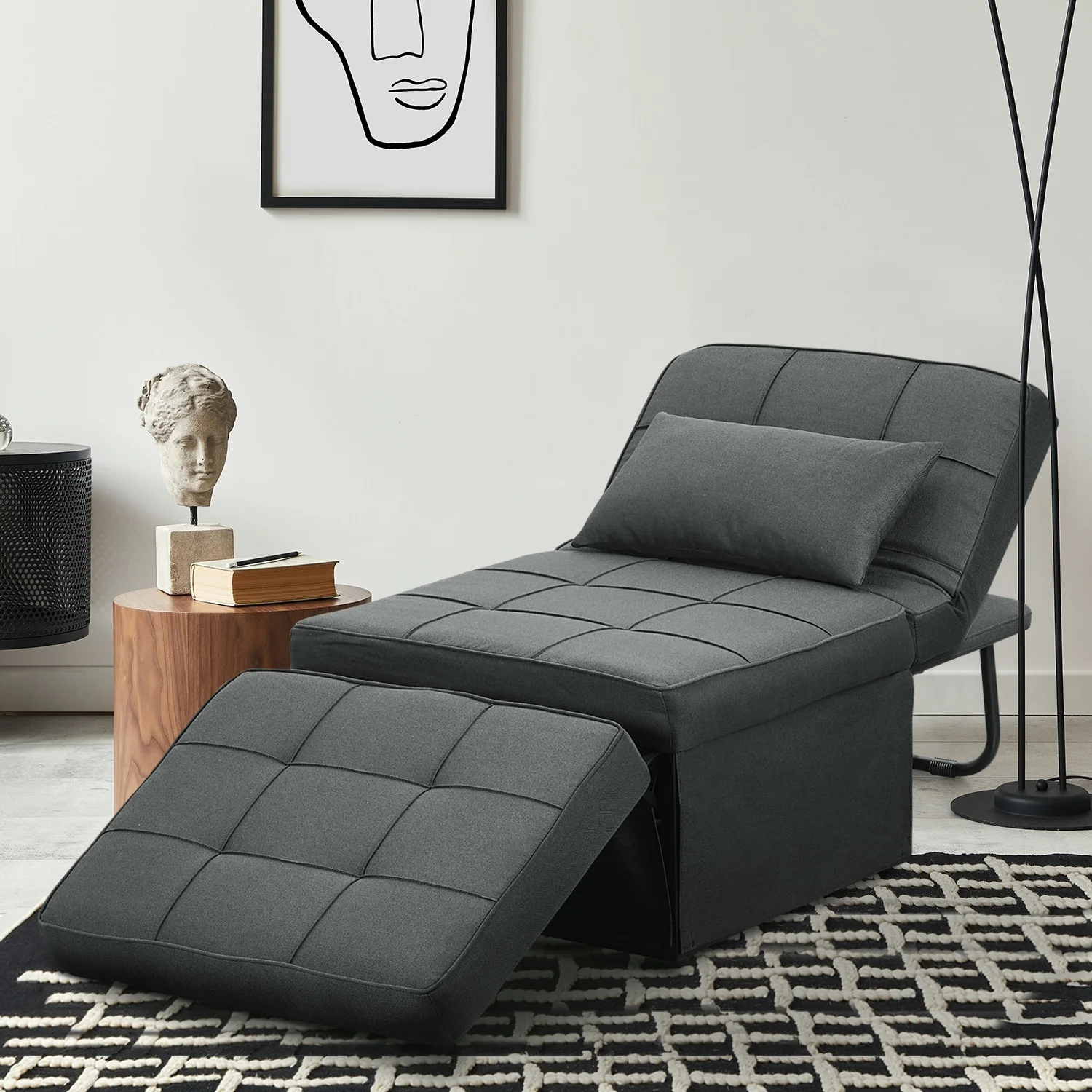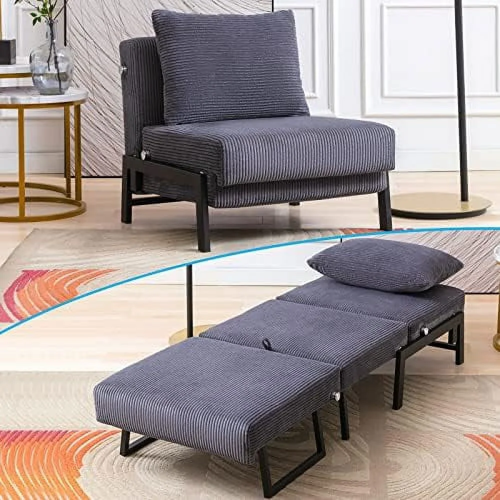 Multipurpose Faux Leather Ottoman Lazy Chair Pulling Out Sofa Bed (Dark Grey)
