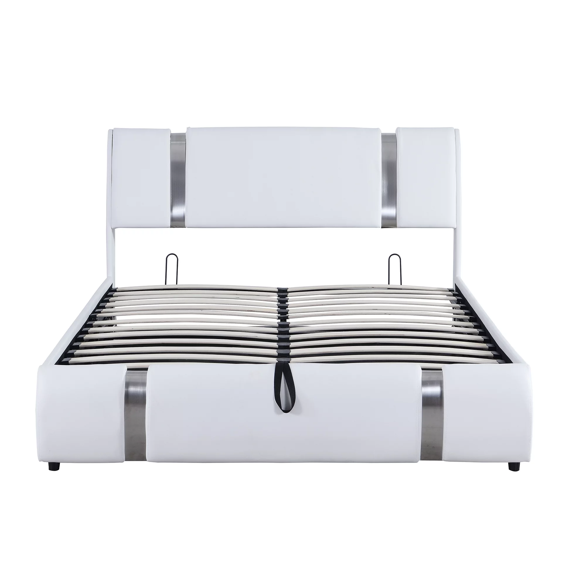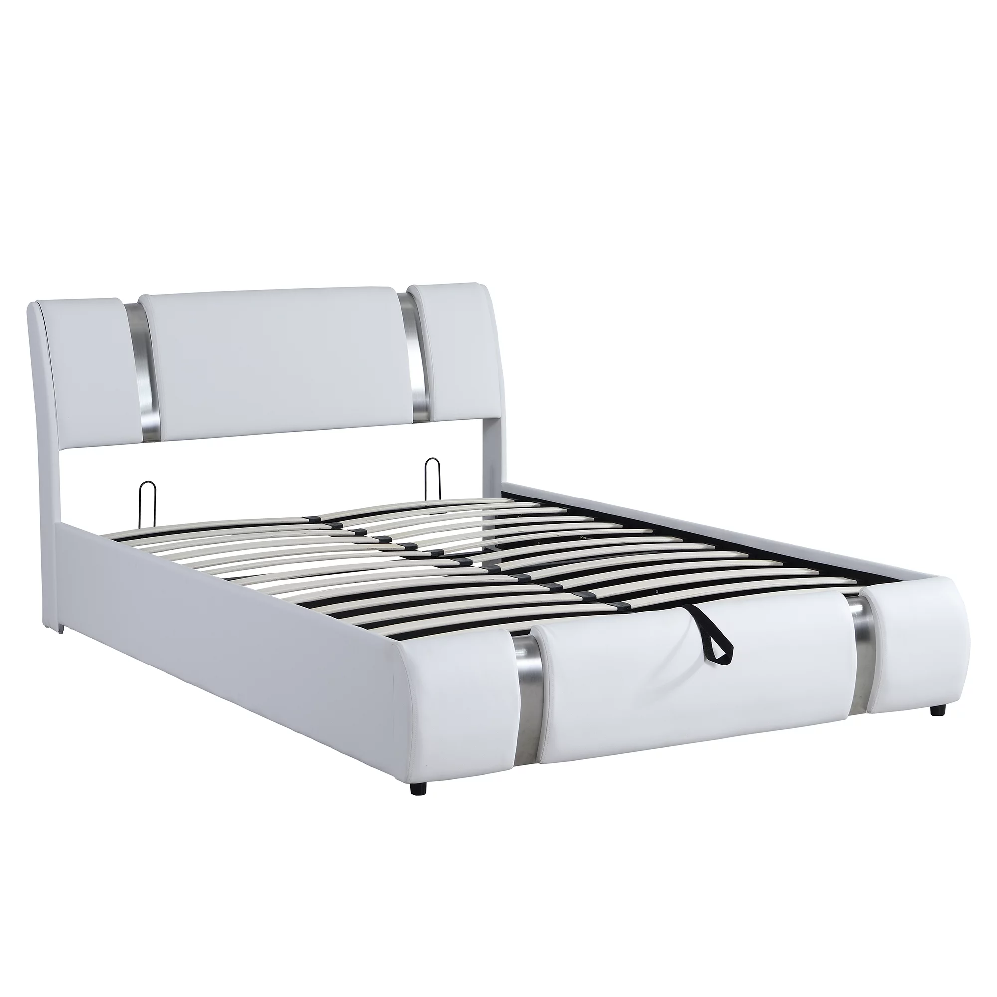 CoSoTower Queen Size Upholstered Faux Leather Platform Bed with A Hydraulic Storage System, White