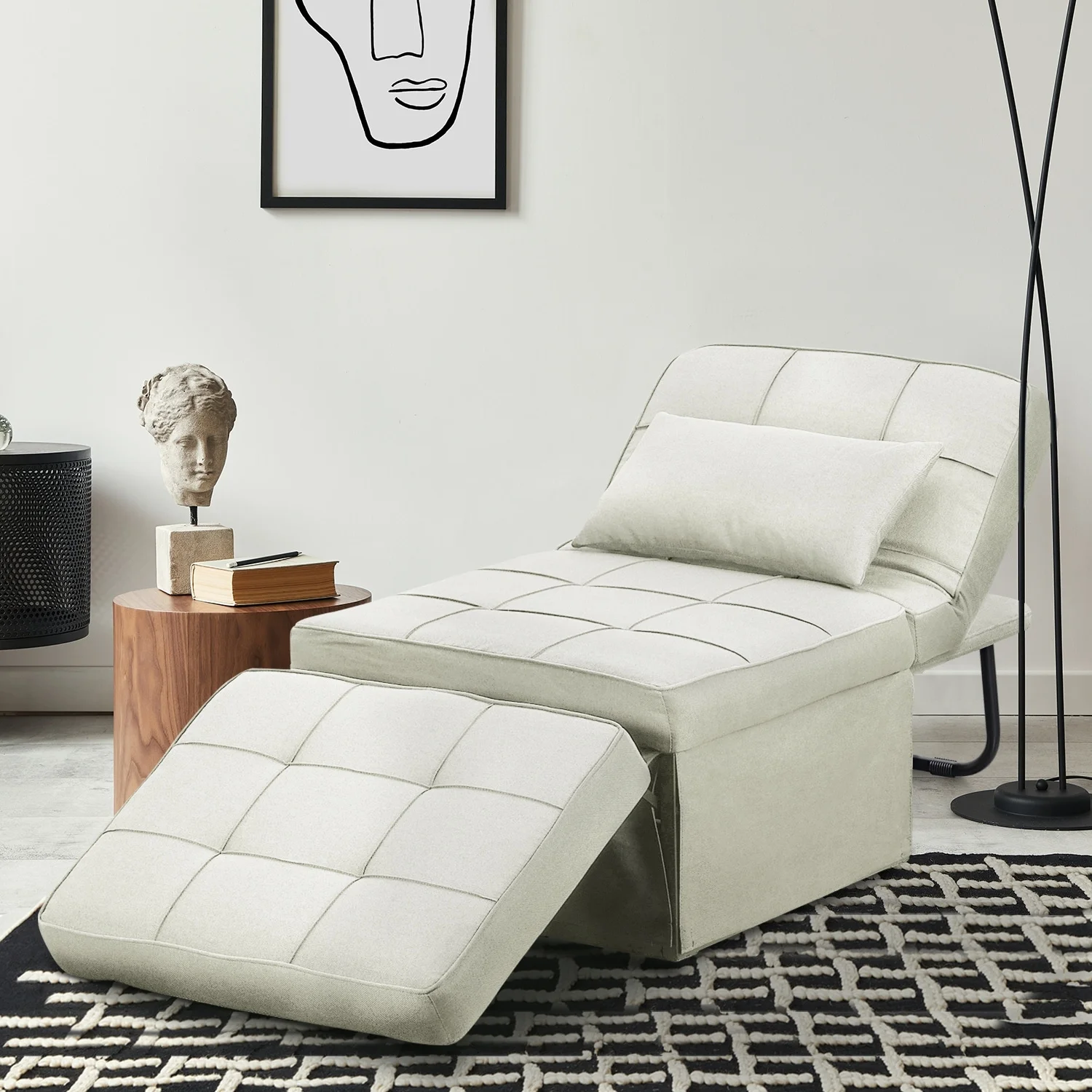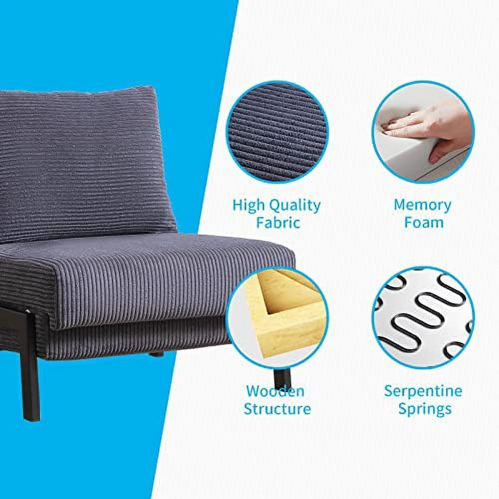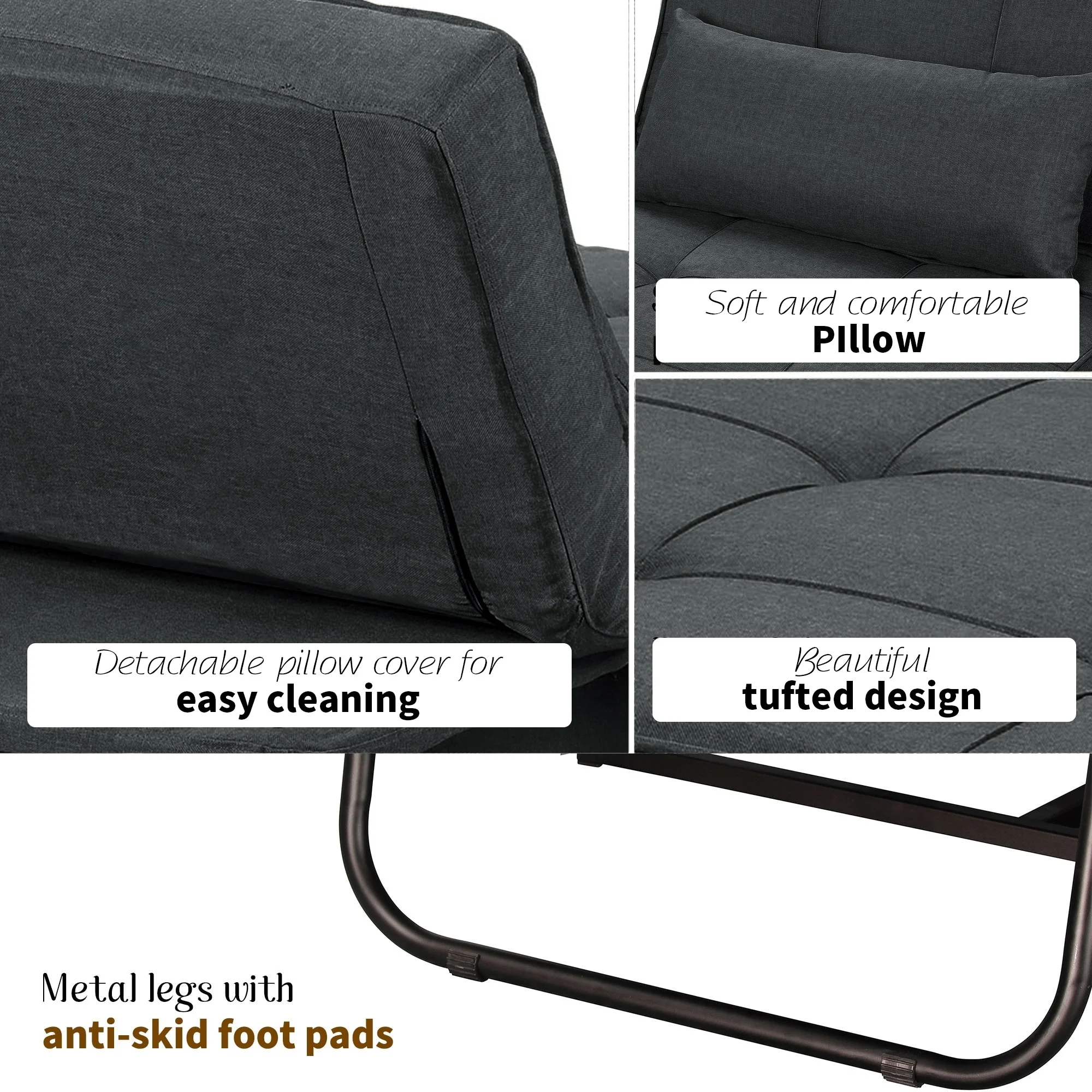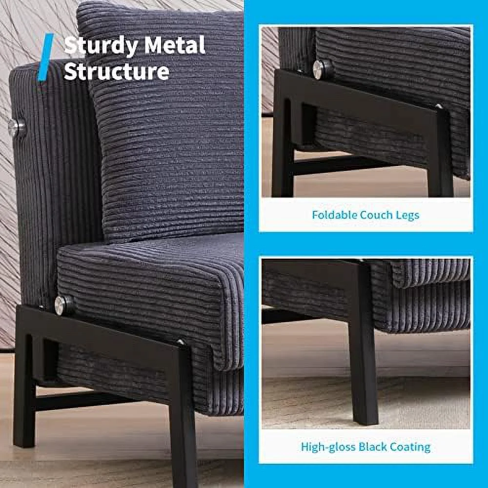 IPKIG Linen Fabric Convertible Sleeper Sofa Bed Futon Sofa Couch with Folding Recliner and Ottoman(Gray)