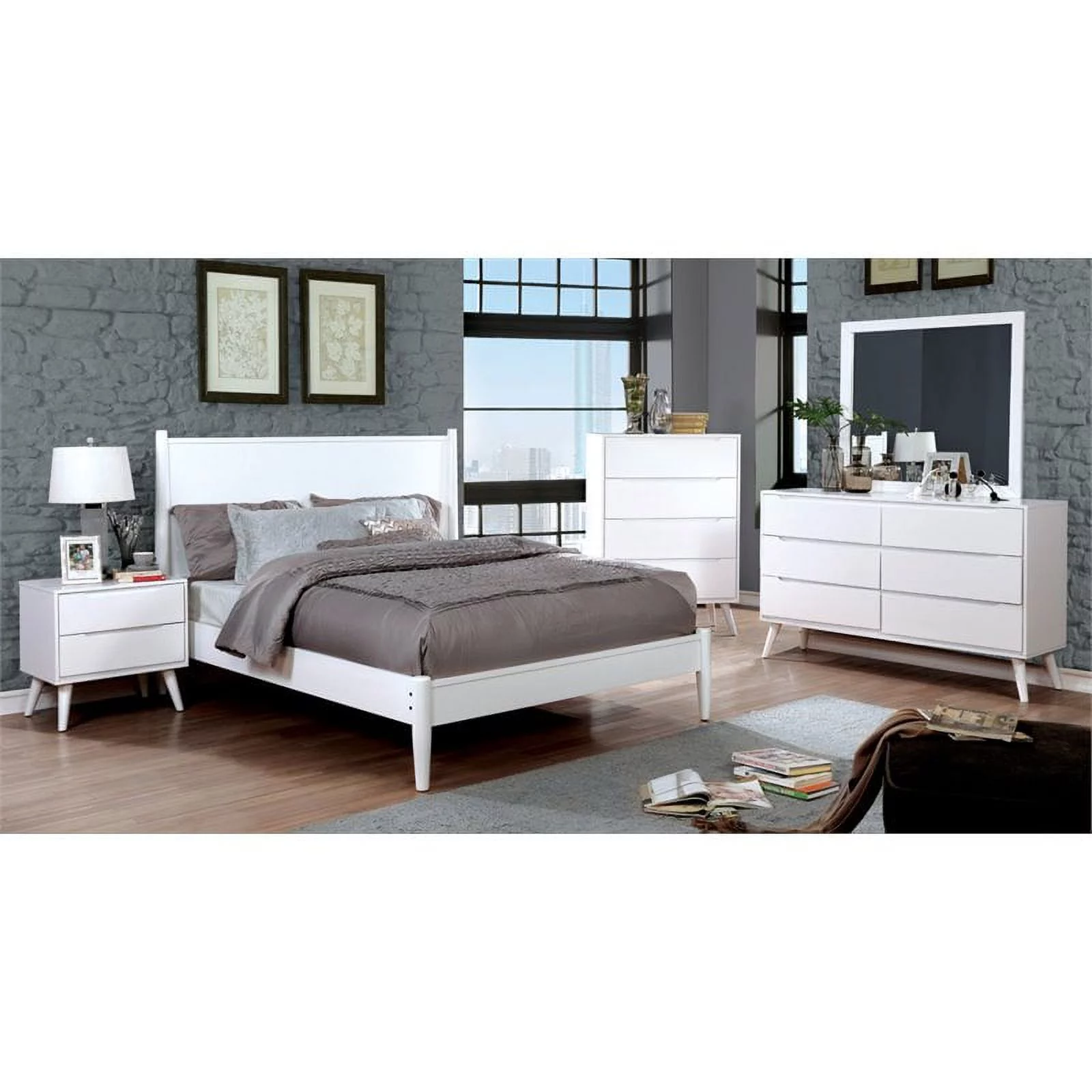 Furniture of America Adelie 3-Piece Mid-Century Modern Full Bed Set