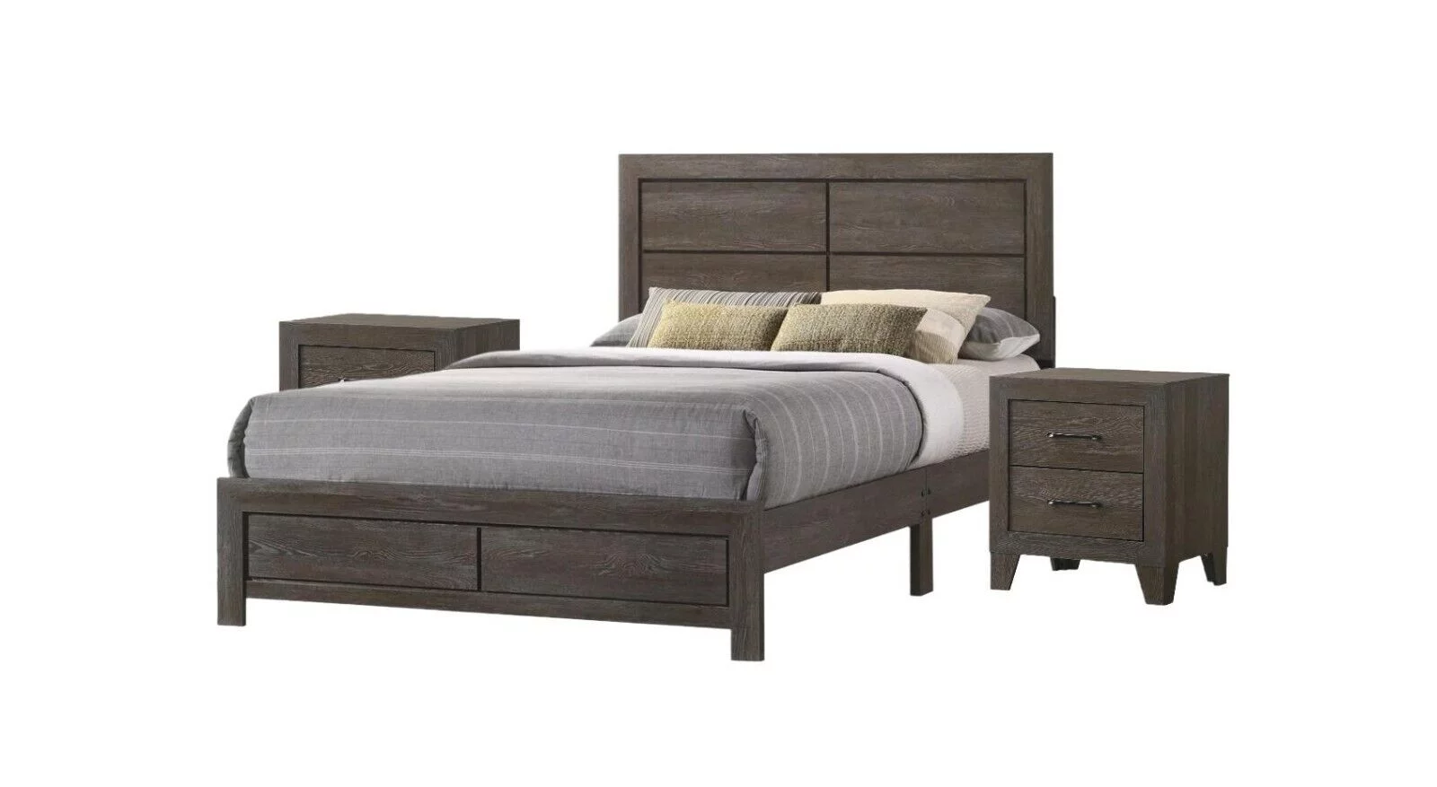 Contemporary 3Pc Wooden Furniture Full Size Panel Bed and Nightstands Set Wood Brown Finish