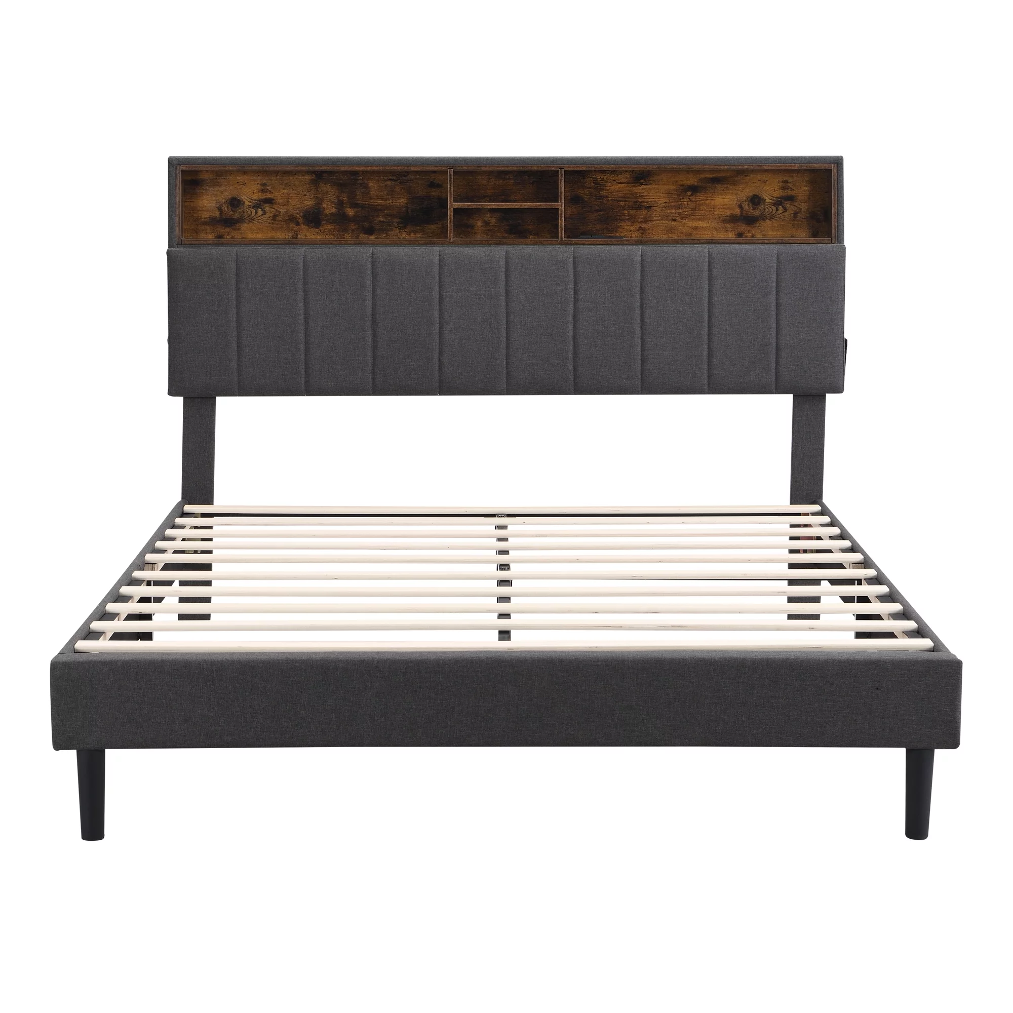 CoSoTower Queen Size Upholstered Platform Bed with Storage Headboard and USB Port, Linen Fabric Upholstered Bed, Gray