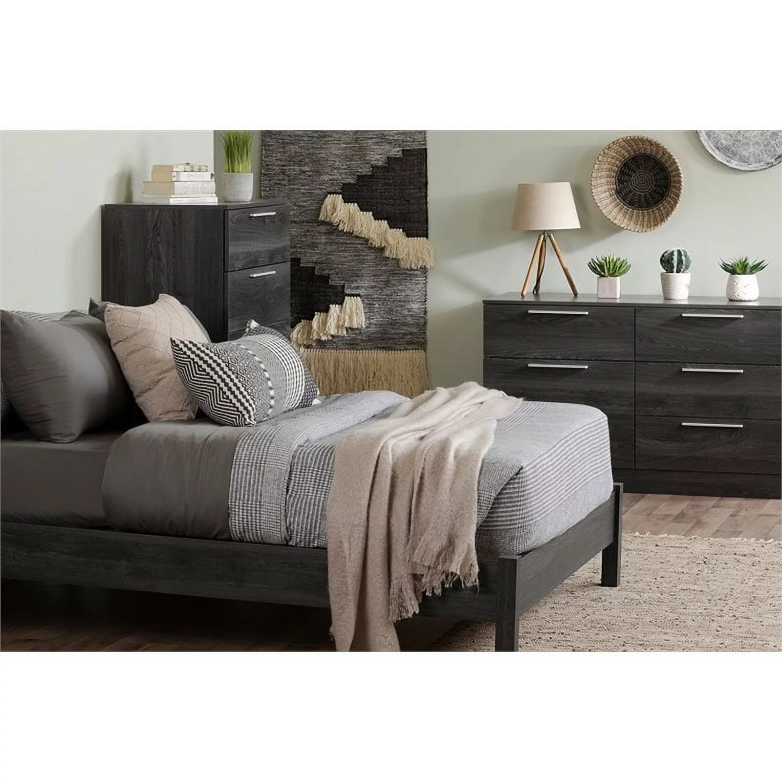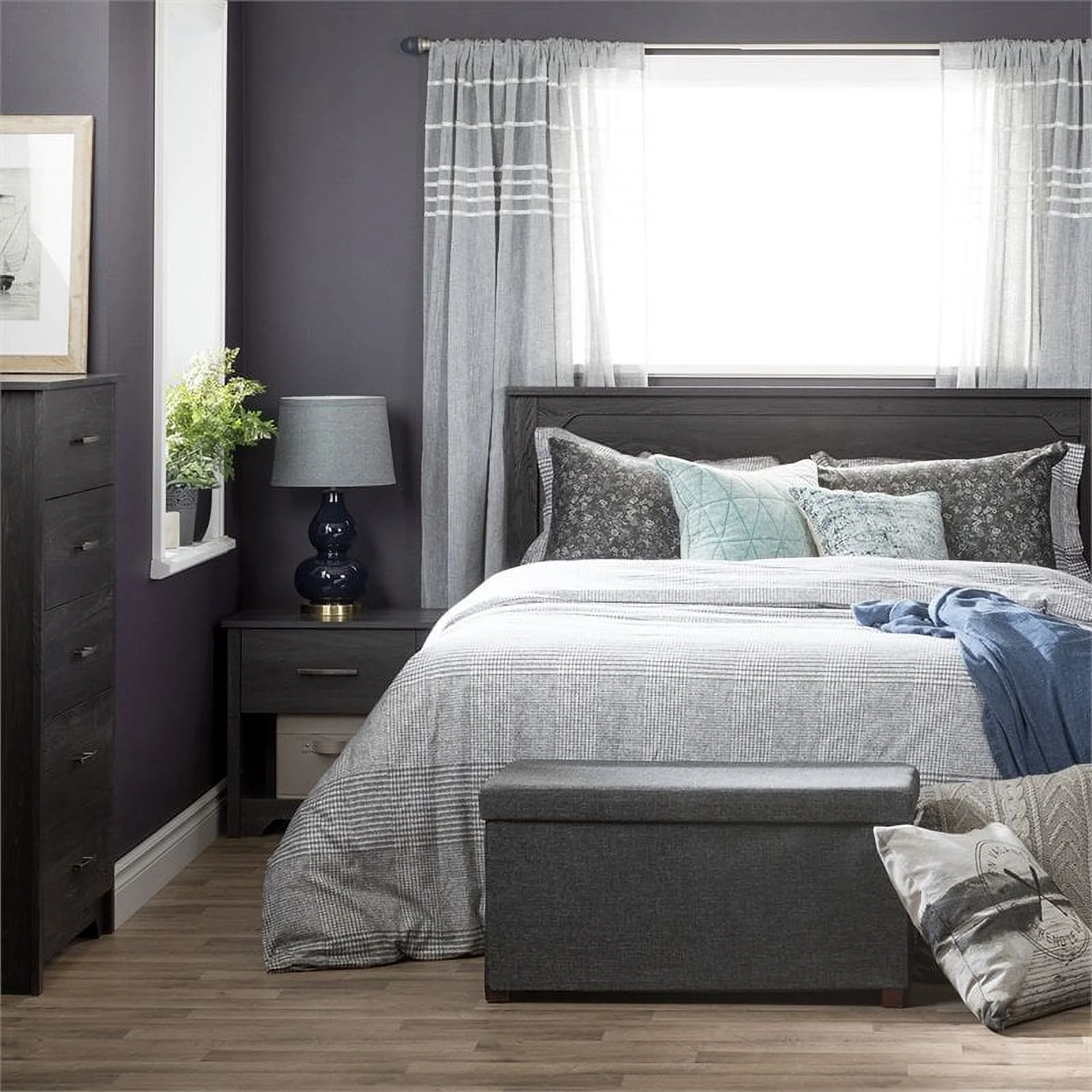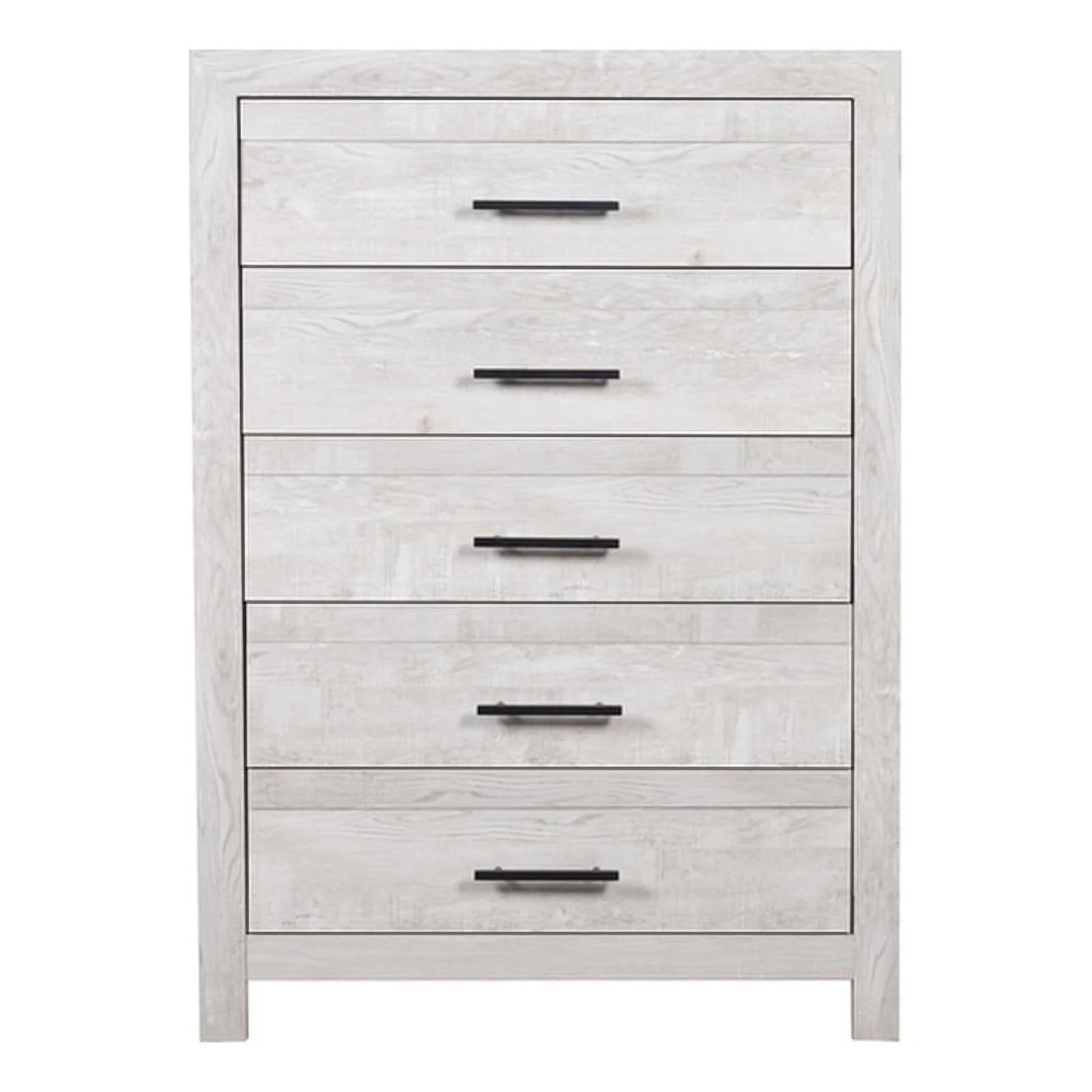 Pemberly Row Contemporary 5-Drawer Particleboard Wood Chest in Gray Oak