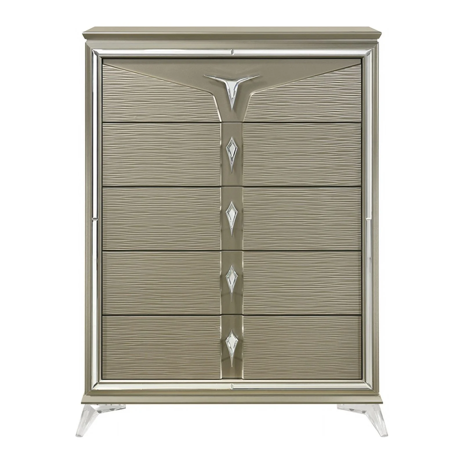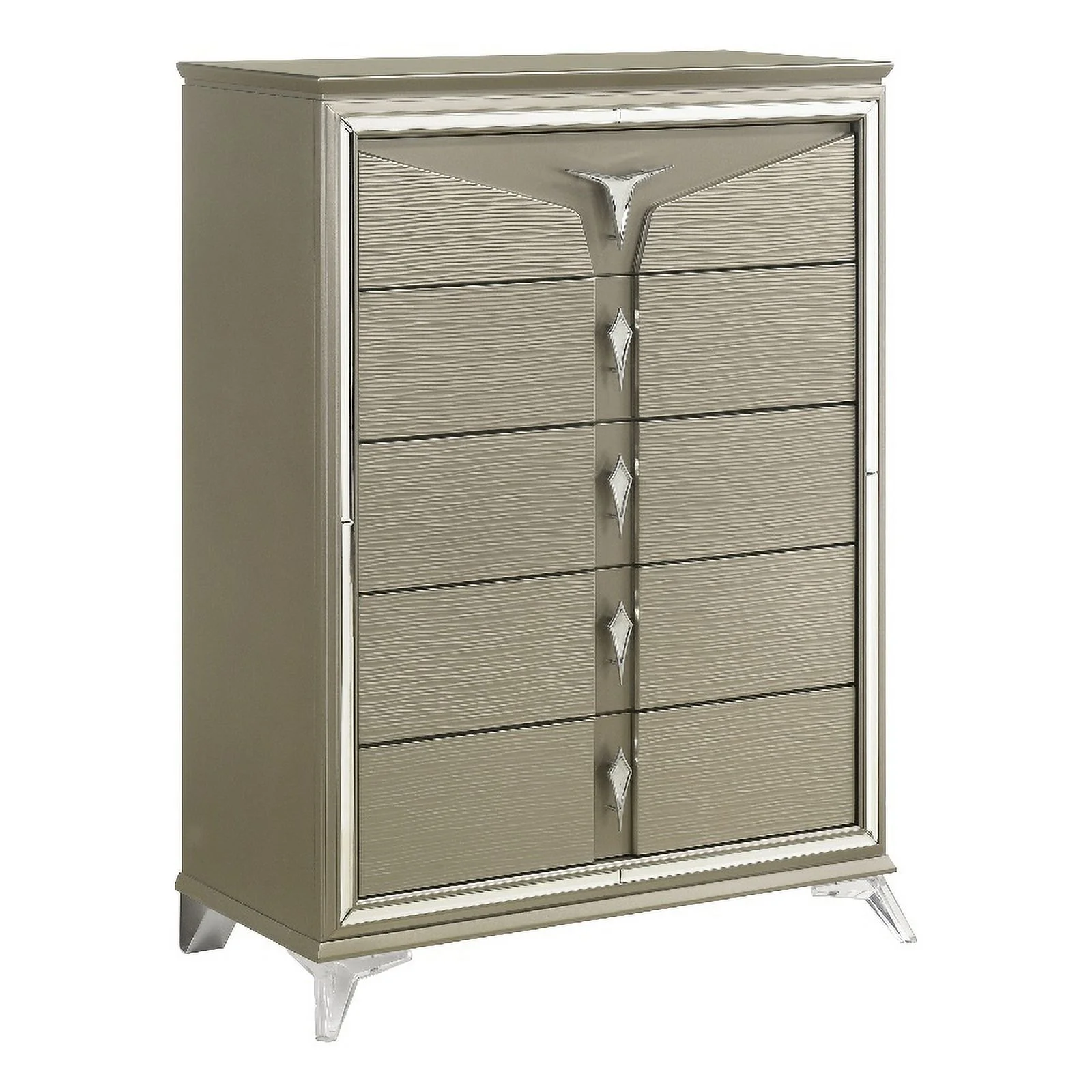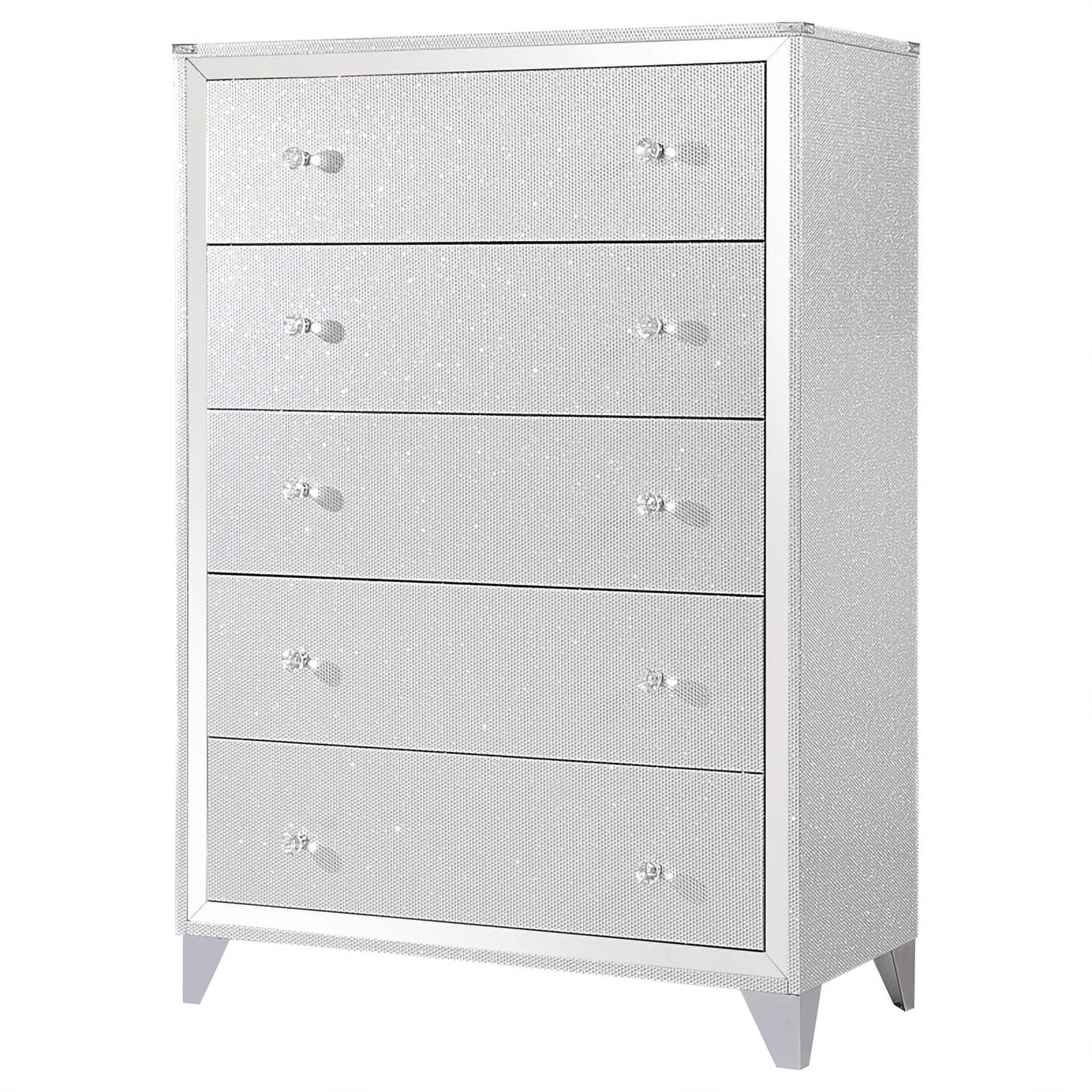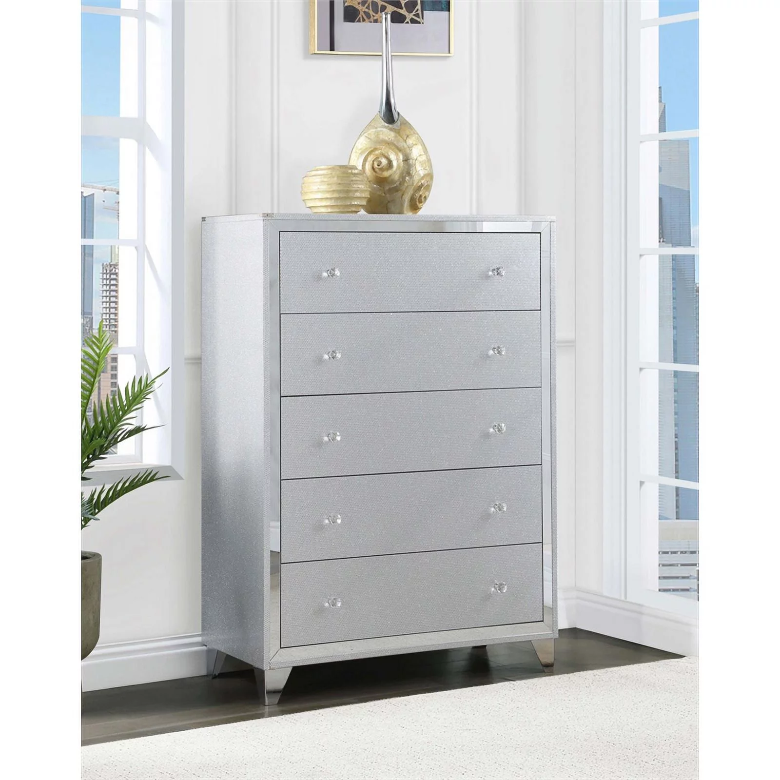 Pemberly Row Modern / Contemporary 5 Drawer Chest in Metallic Platinum