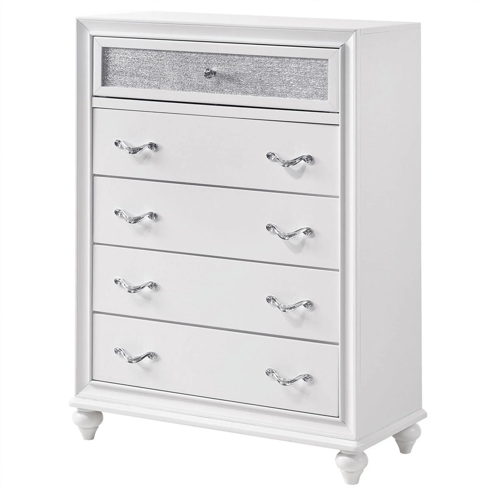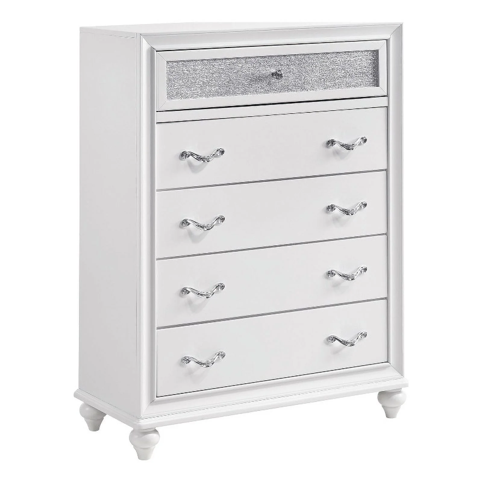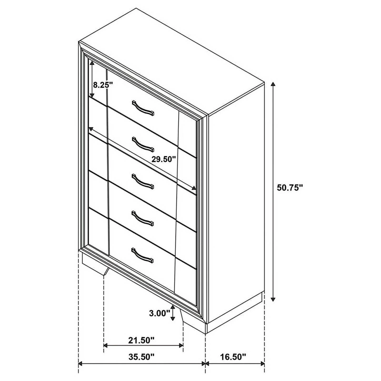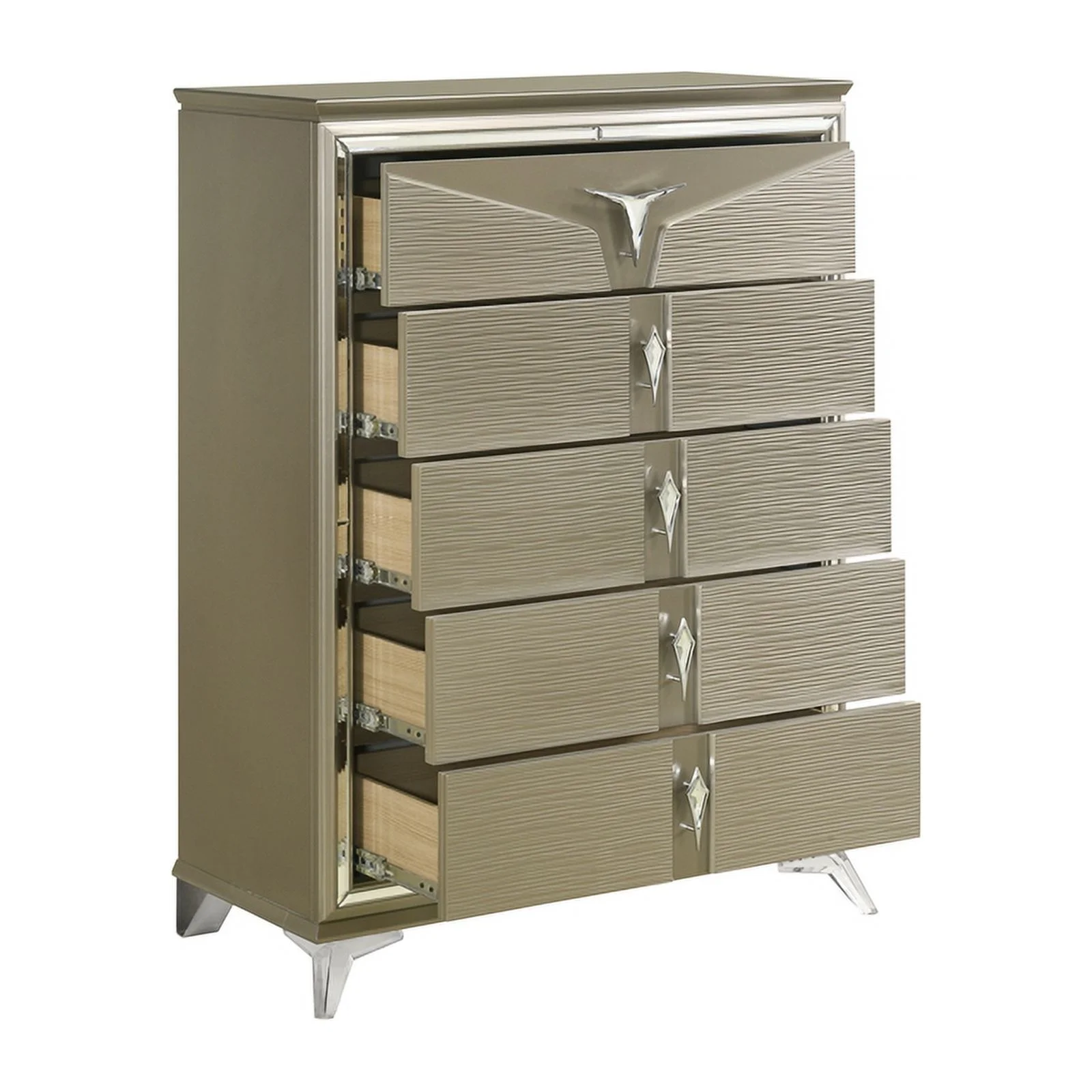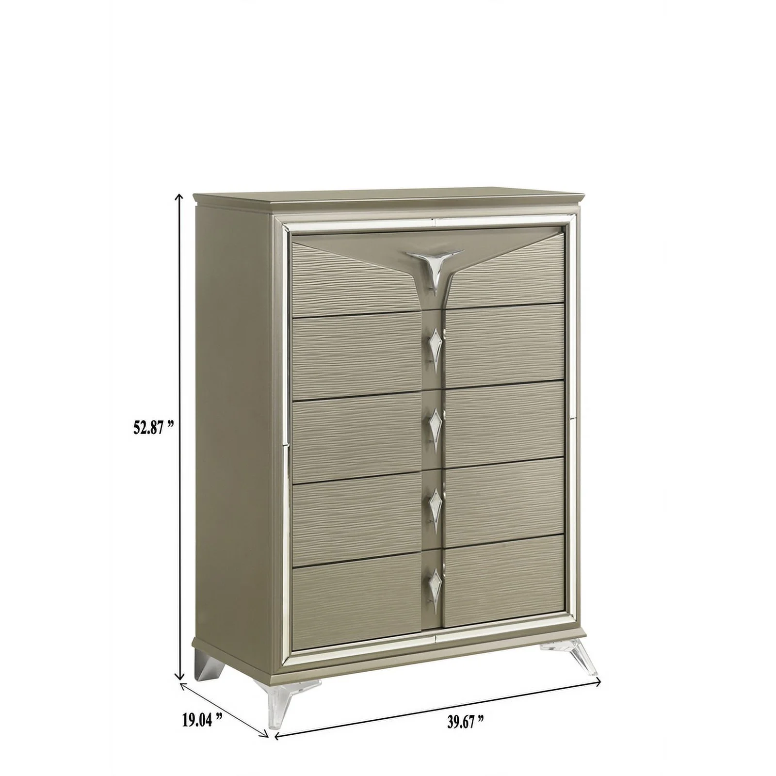 Pemberly Row Modern / Contemporary 5 Drawer Chest in Metallic Platinum