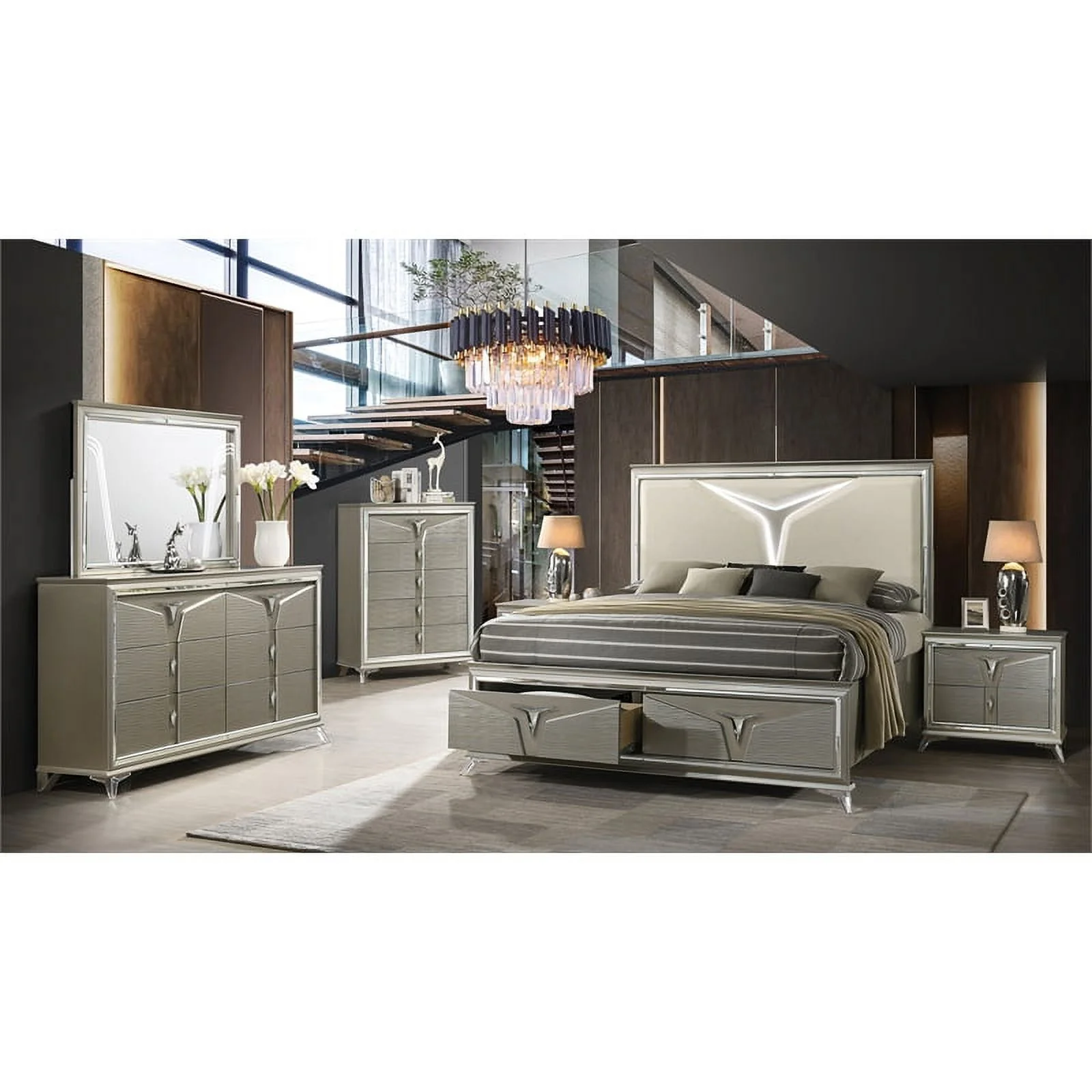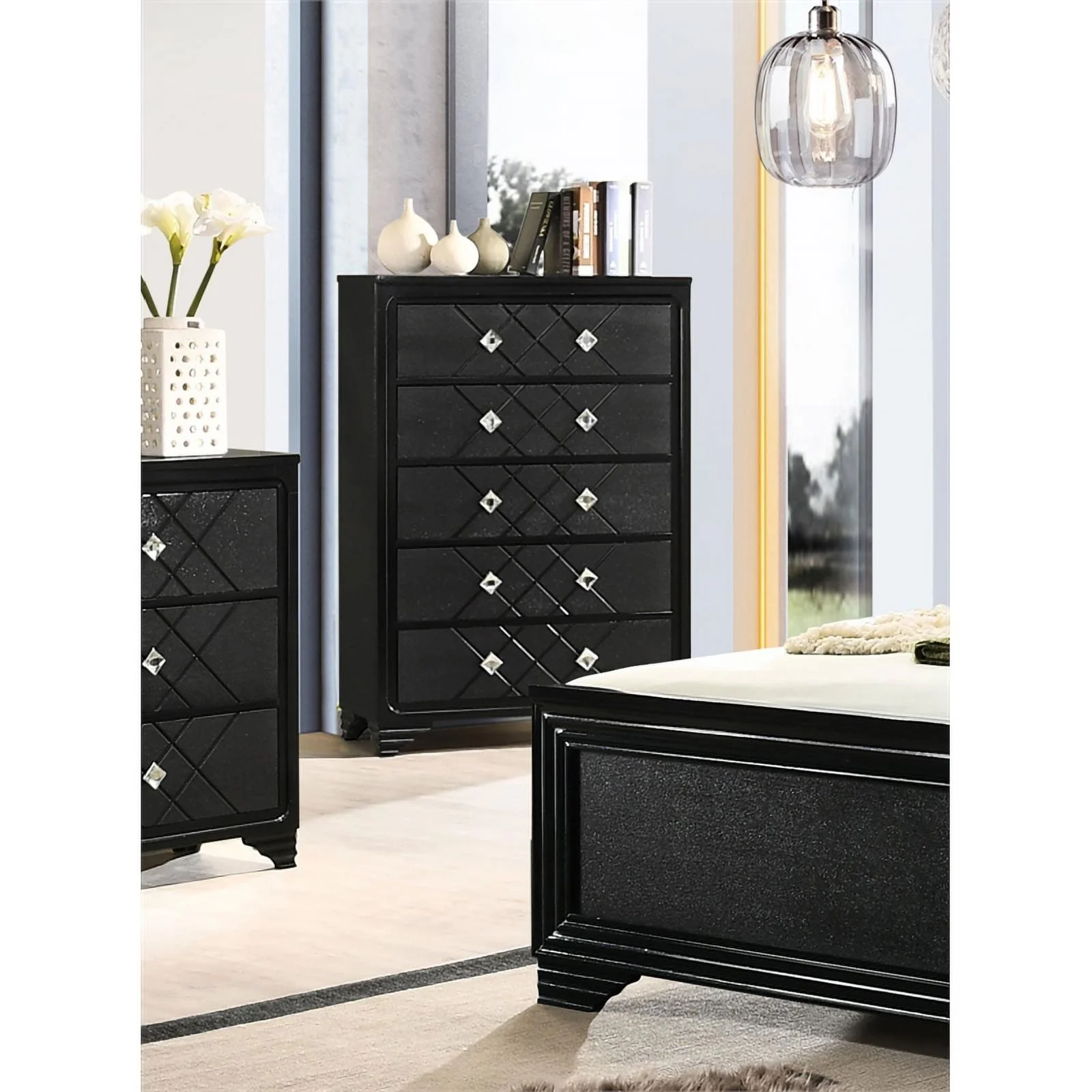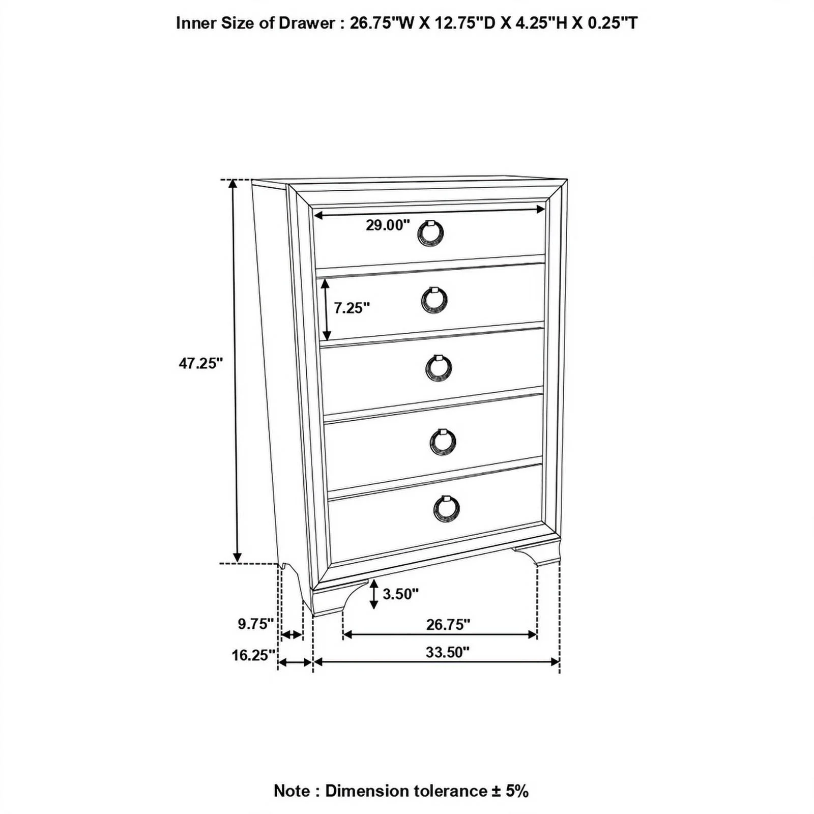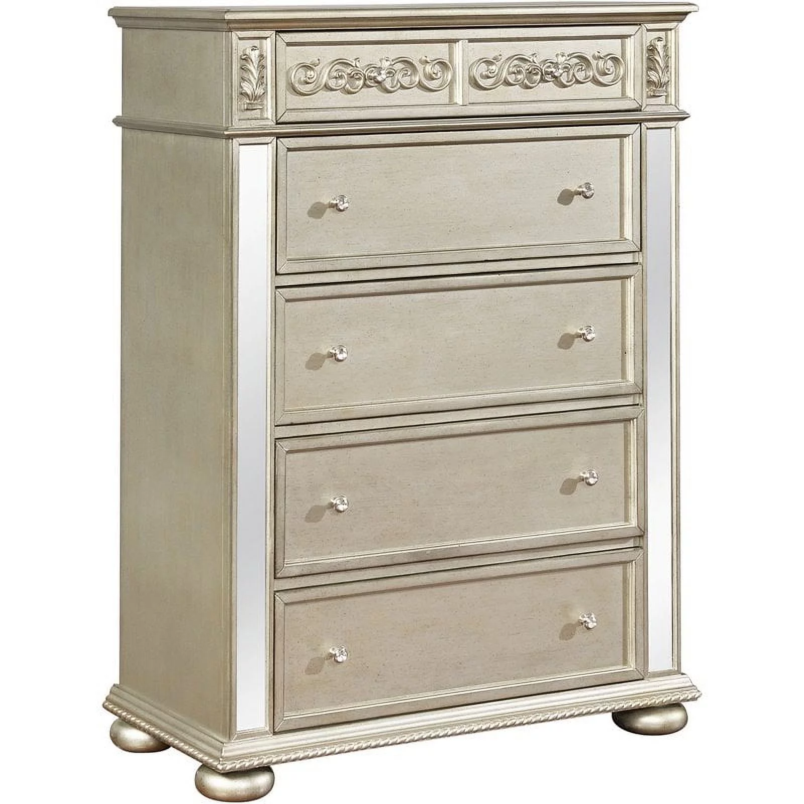 Pemberly Row Modern / Contemporary 5 Drawer Chest in Metallic Platinum
