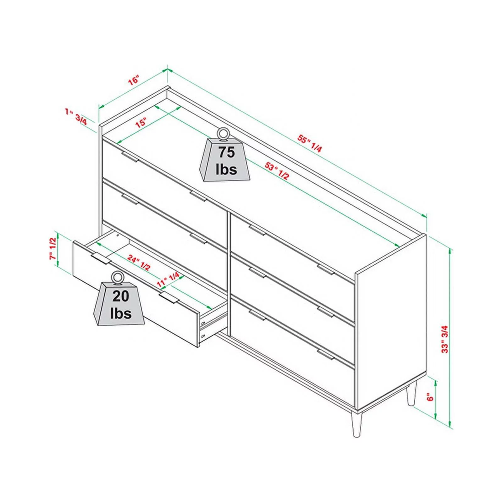 Pemberly Row Contemporary 6-drawer Farmhouse Wood Dresser Weathered Oak