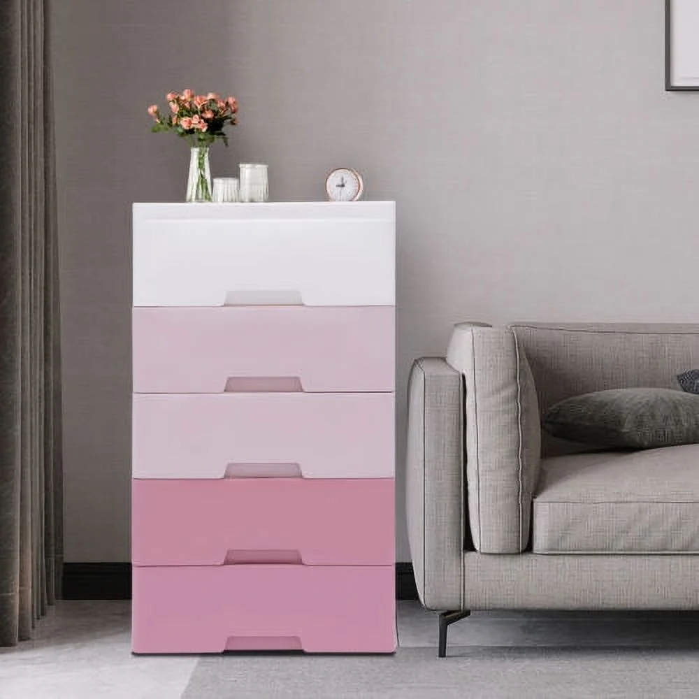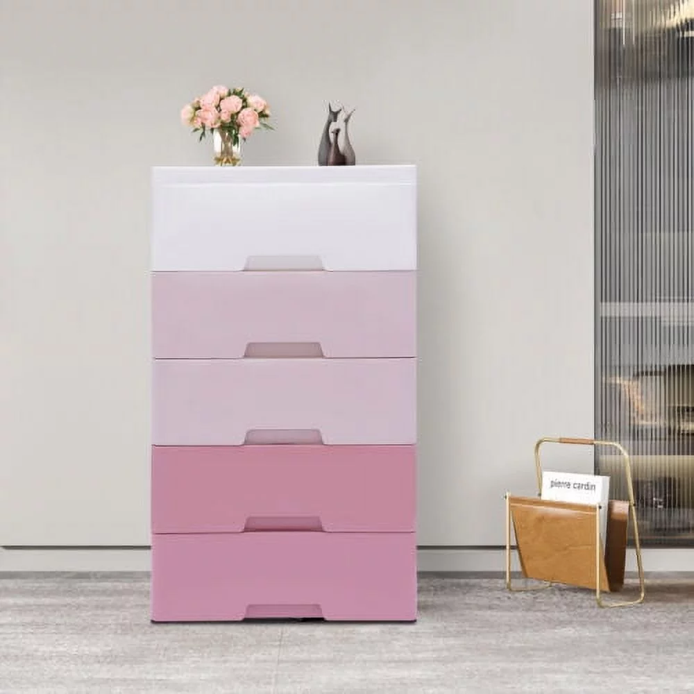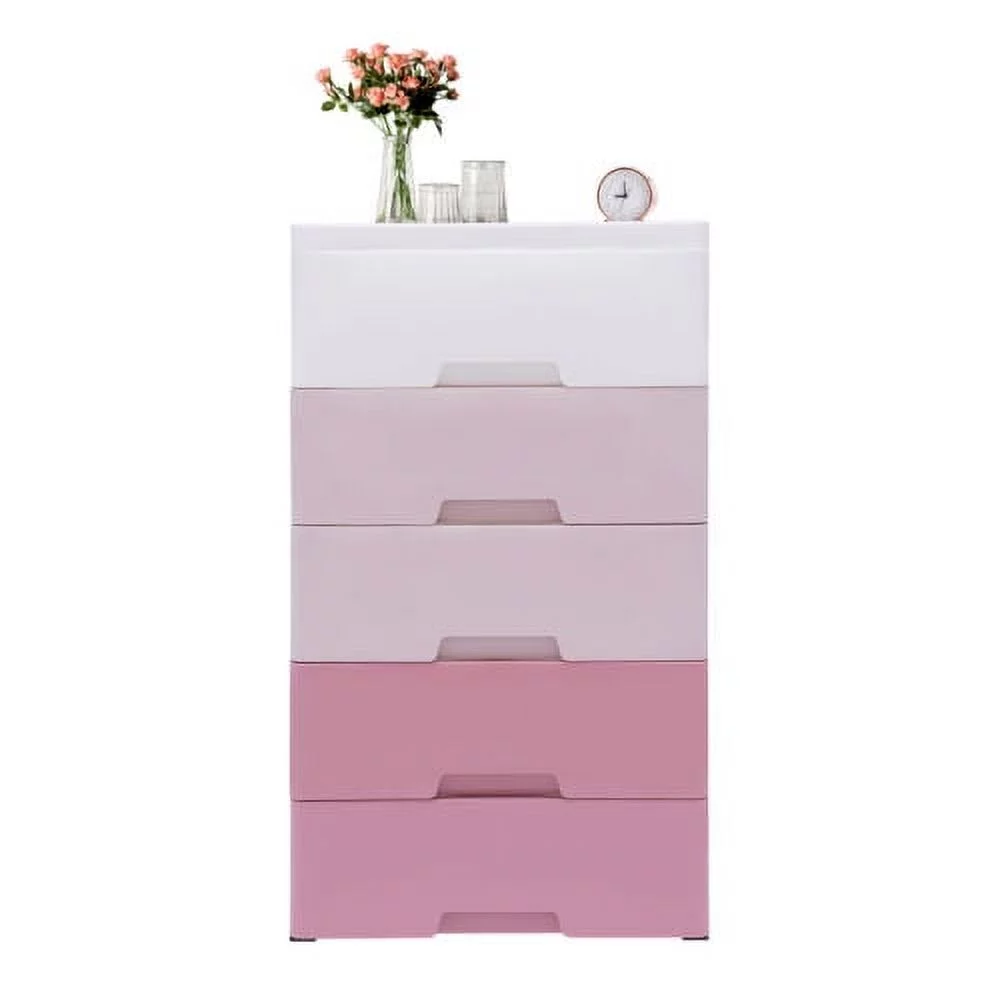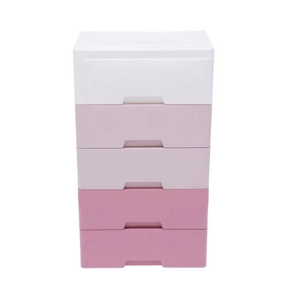 5-layer Home Storage Drawers Clothes Storage Tower PP Storage Dressers Pink