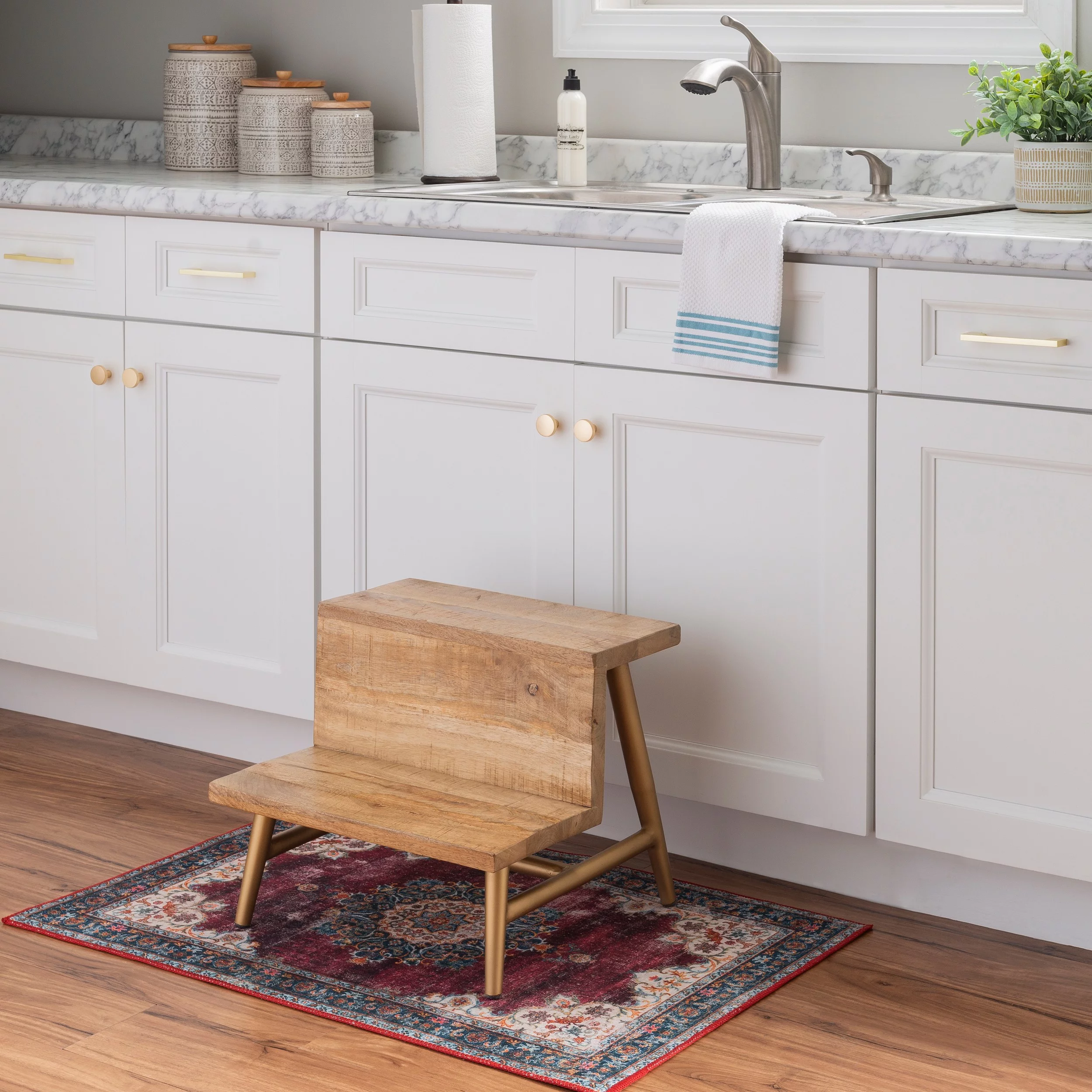 Kings Brand Furniture 2-Step Stool for Adults and Kids for Bedroom, Kitchen, Bathroom (Cherry)