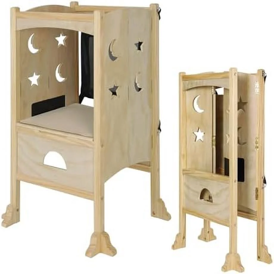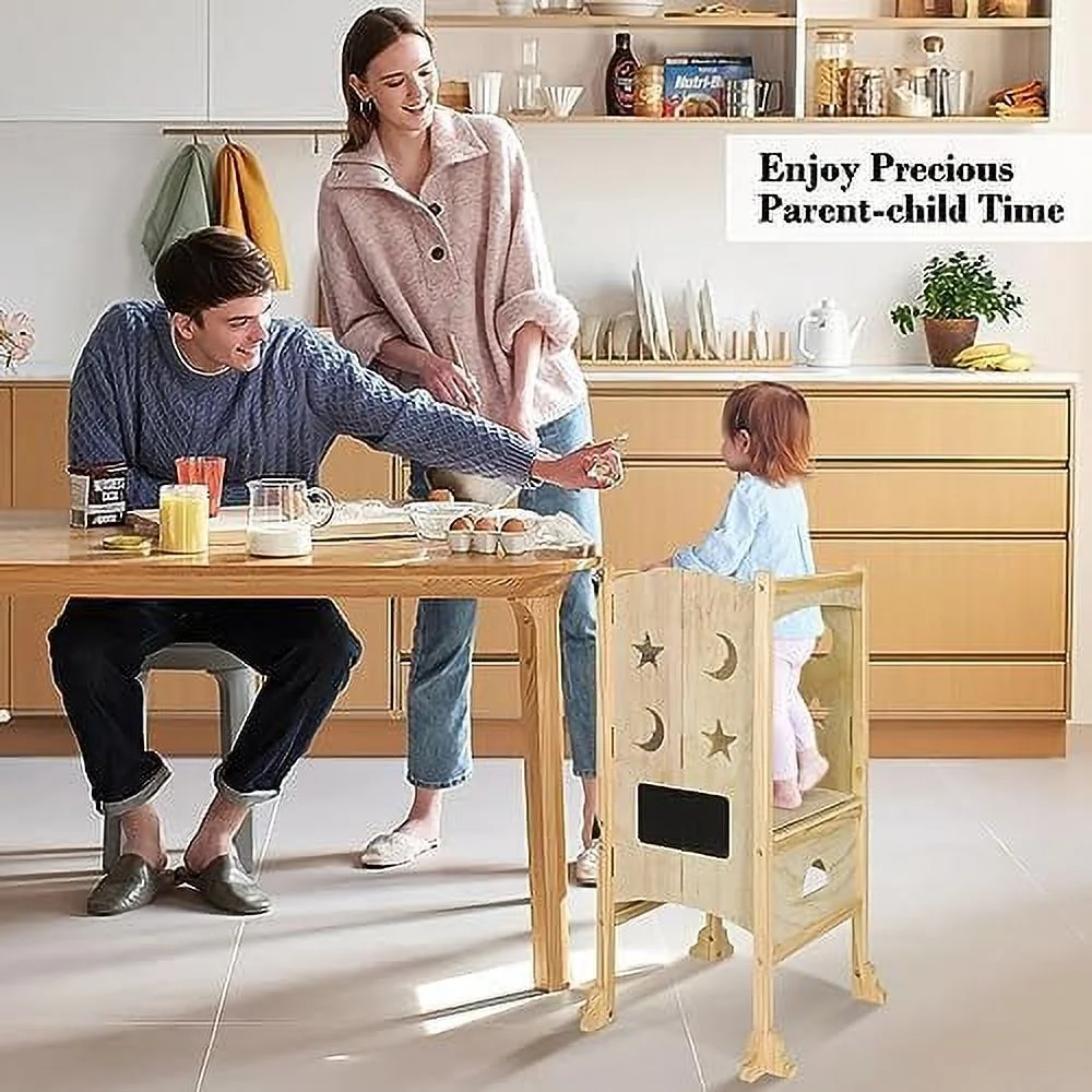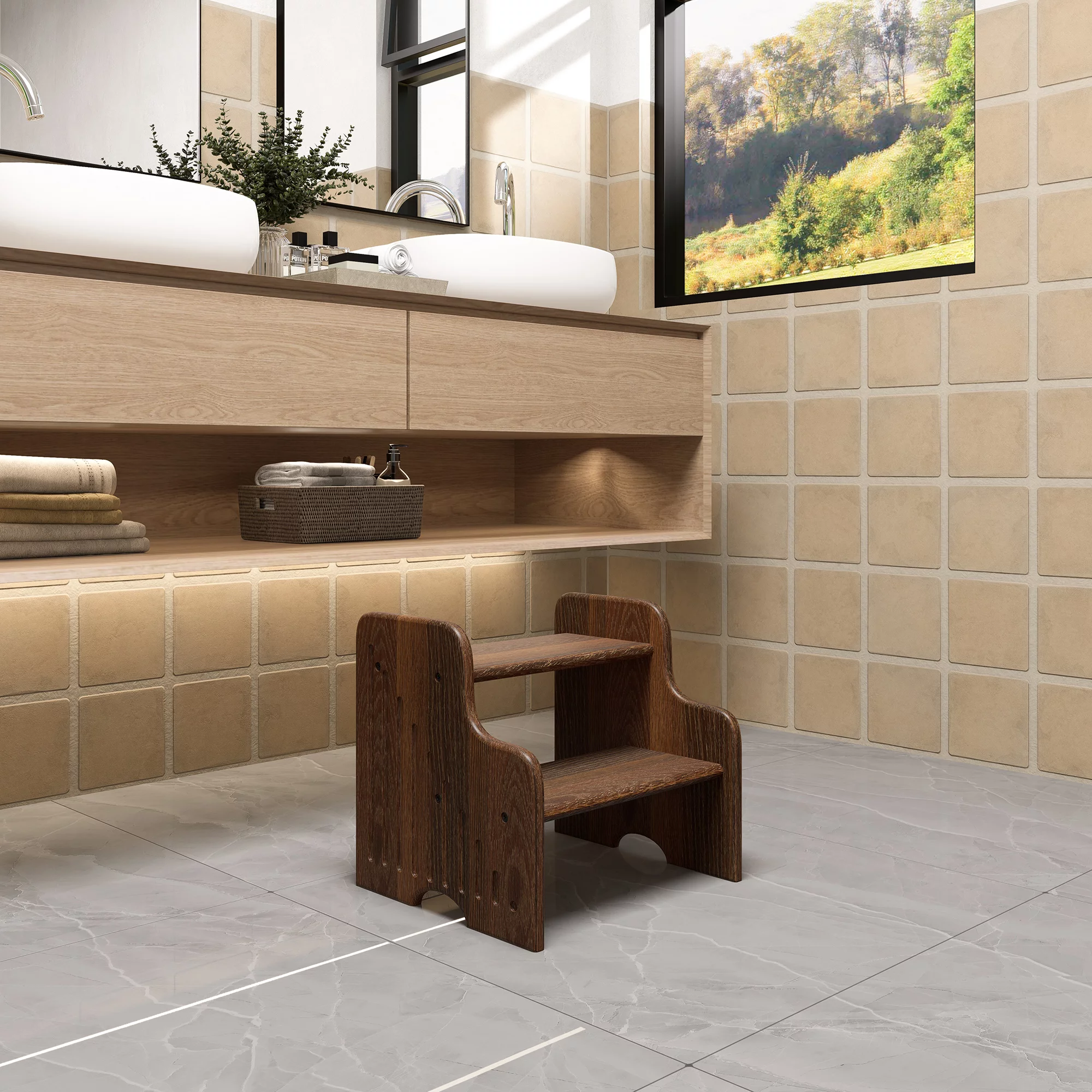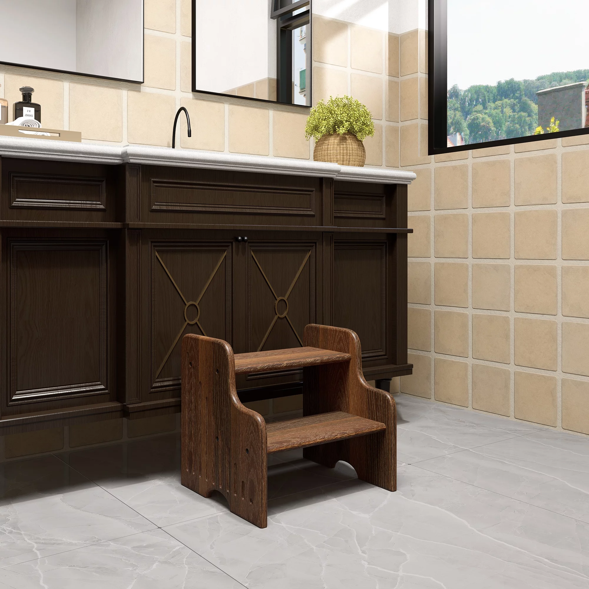 CONSDAN Hardwood Oak 2-Tier Step Stool, Kids Stool for Bathroom Kitchen Toilet, Natural Color, Chocolate Color