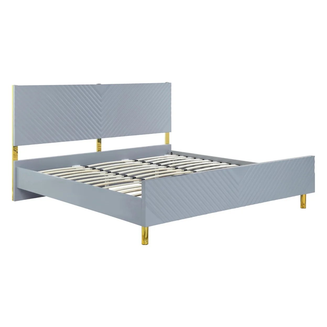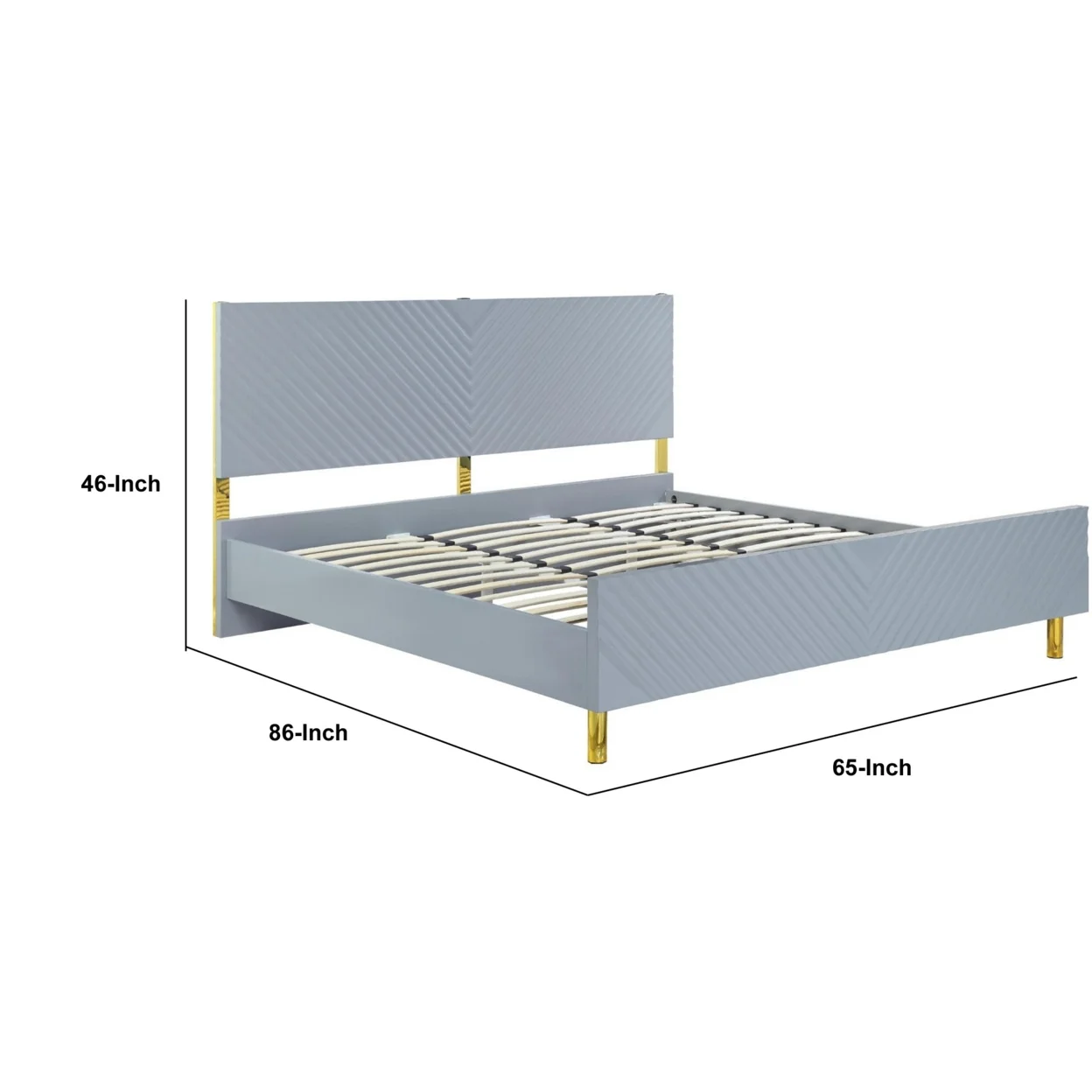 Tyra Modern Queen Bed, Panel Headboard, Textured Chevron, Slate Gray, Gold- Saltoro Sherpi
