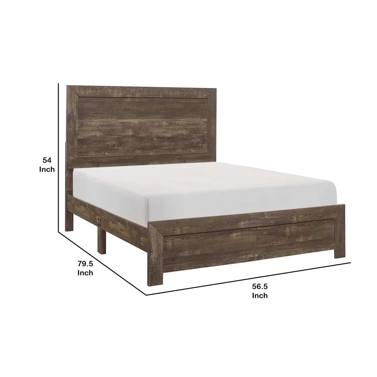 Rustic Panel Design Wooden Full Size Bed with Block Legs Support, Brown- Saltoro Sherpi