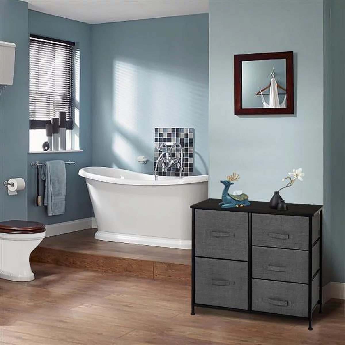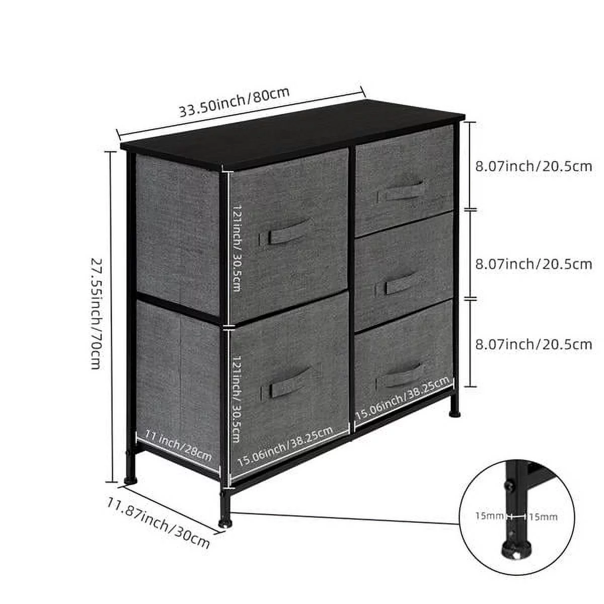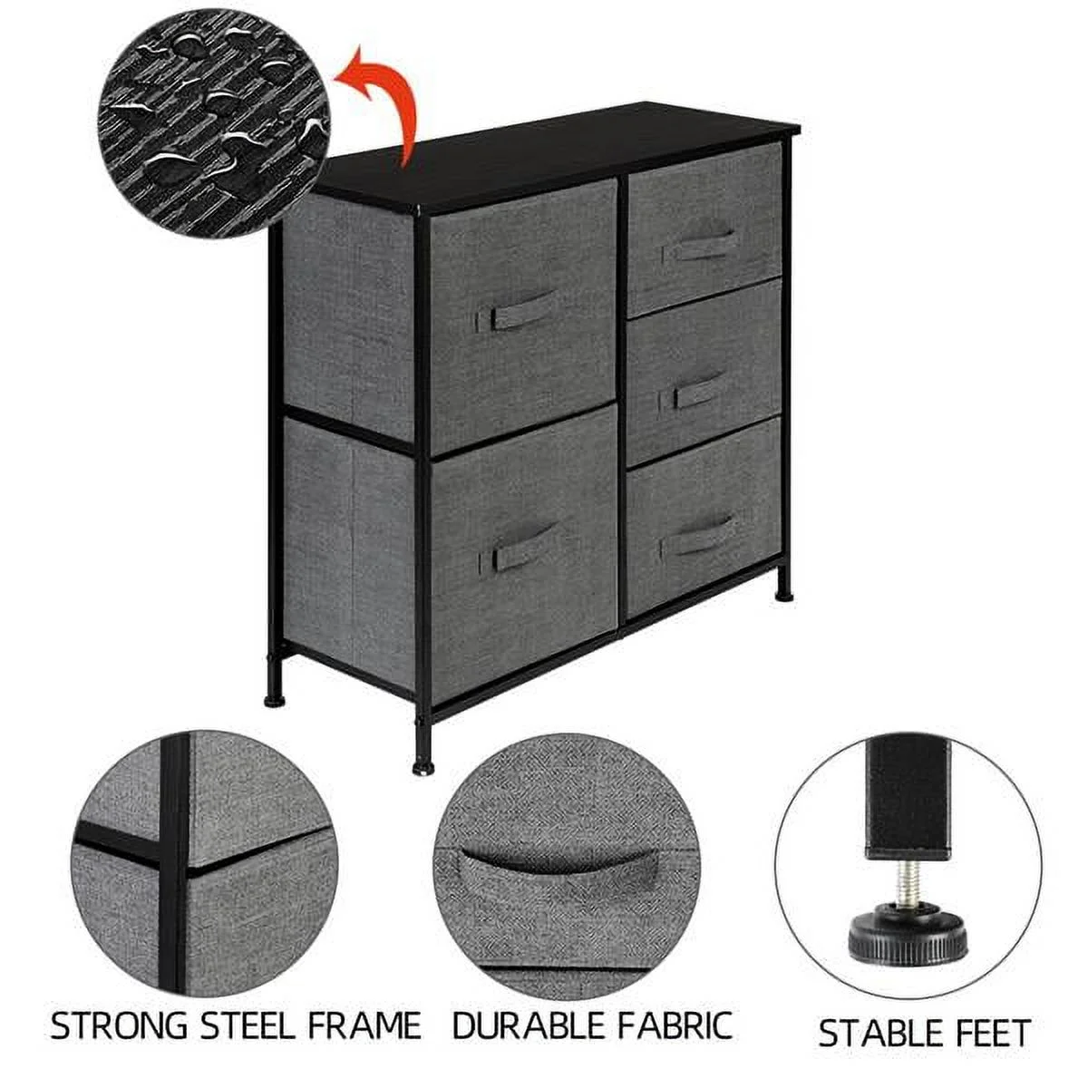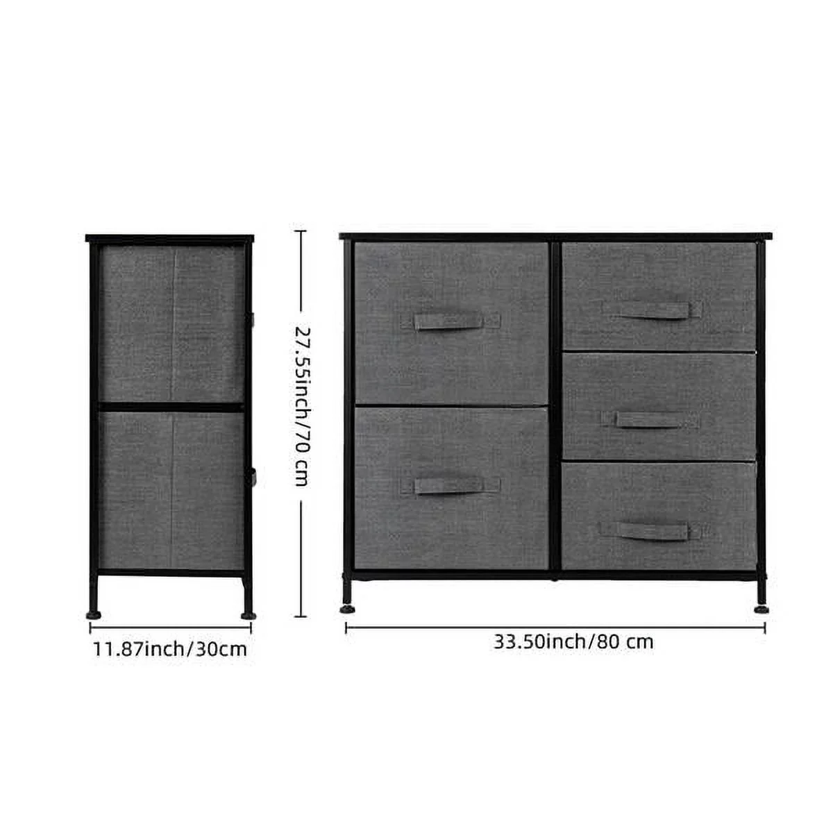 Wide Dresser Storage Tower - Sturdy Steel Frame, Wood Top, Easy Pull Fabric Bins - Organizer Unit Grey Grey
