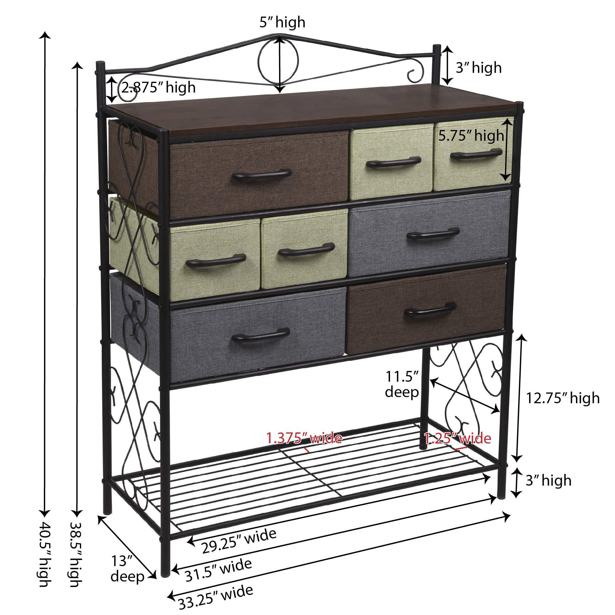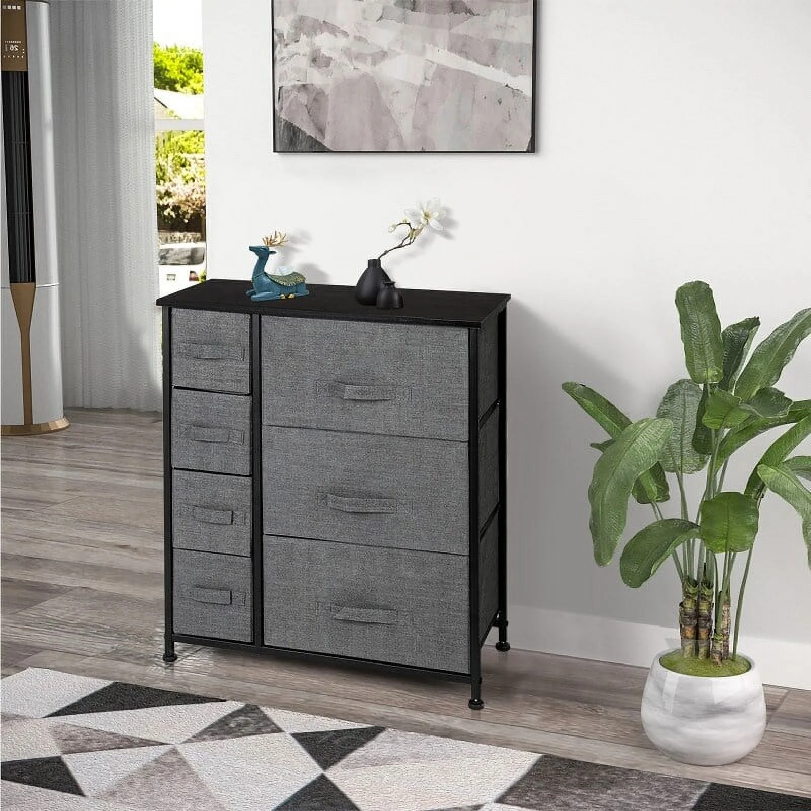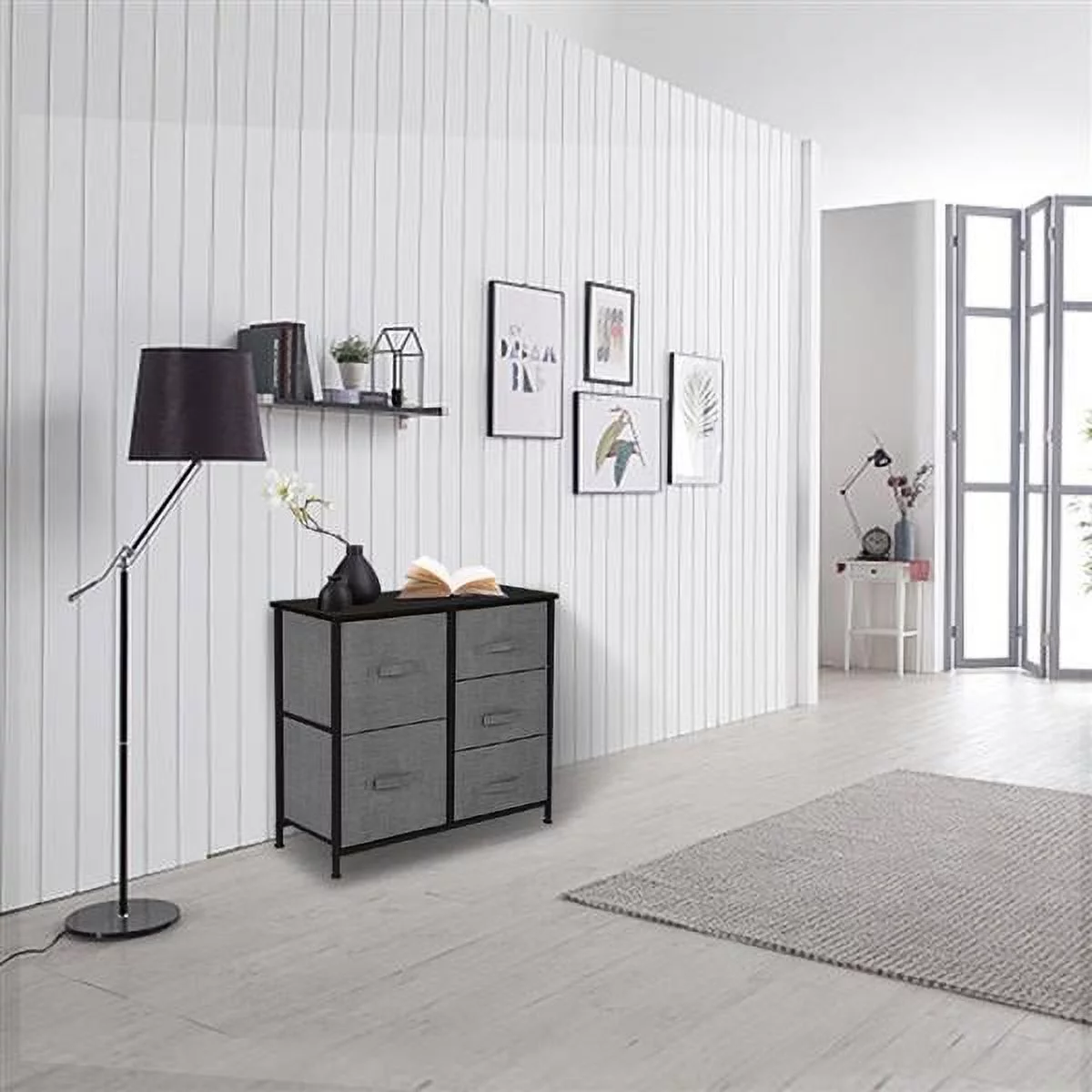 Wide Dresser Storage Tower - Sturdy Steel Frame, Wood Top, Easy Pull Fabric Bins - Organizer Unit Grey Grey
