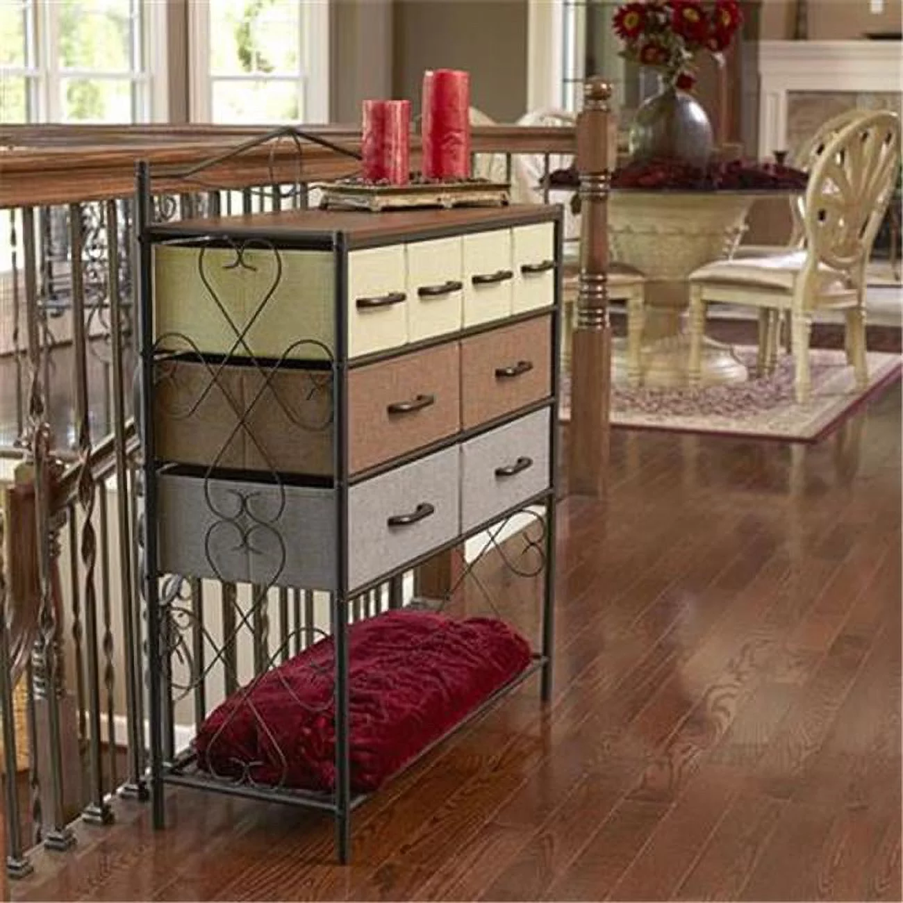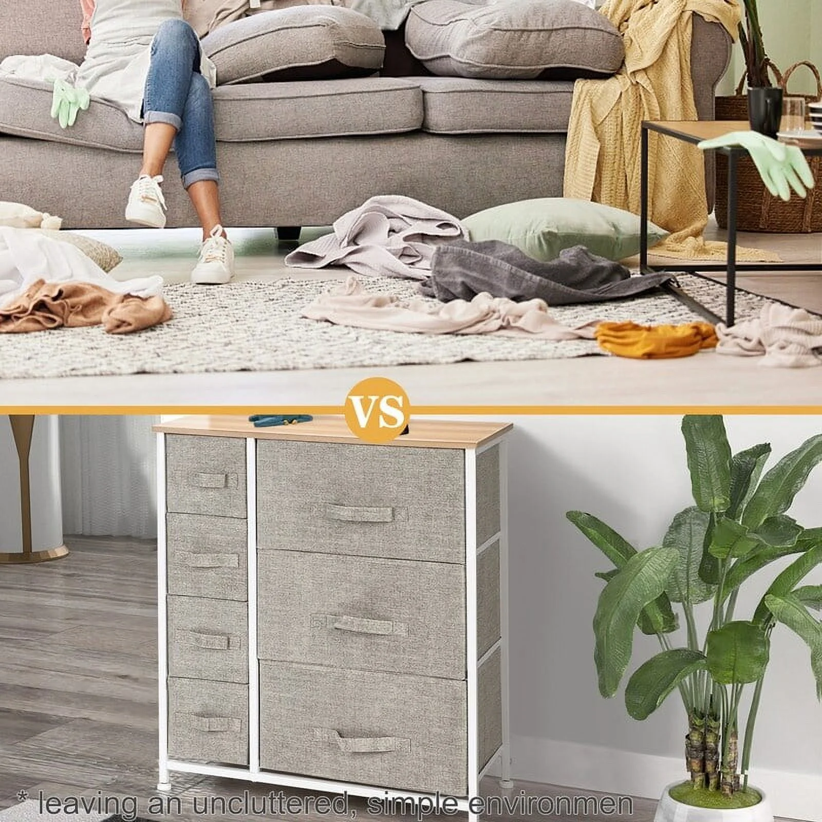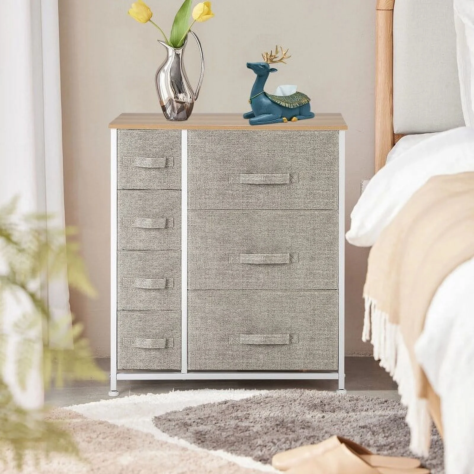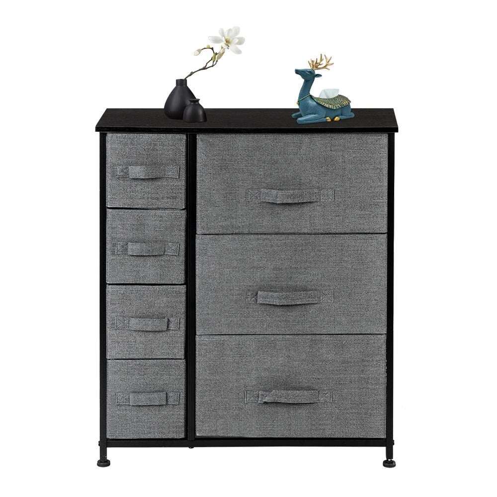 Wide Dresser Storage Tower - Sturdy Steel Frame, Wood Top, Easy Pull Fabric Bins - Organizer Unit Grey Grey