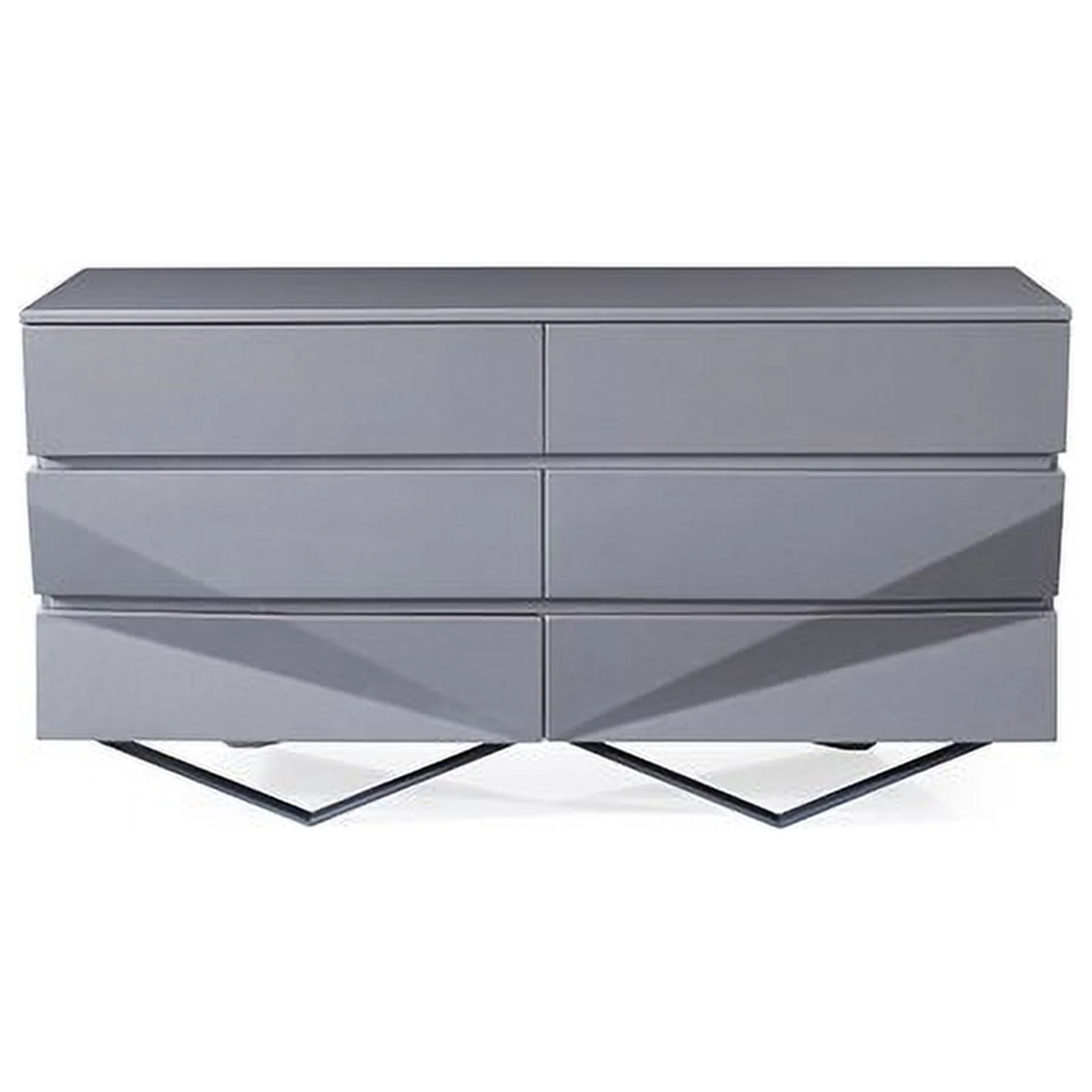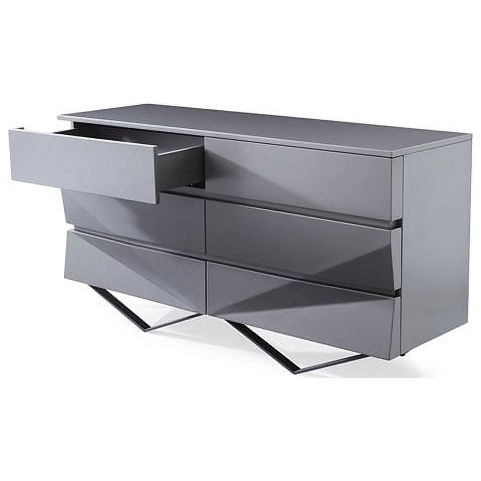 Modrest Duke 6-Drawer Modern MDF & Stainless Steel Dresser in Matte Gray/Black